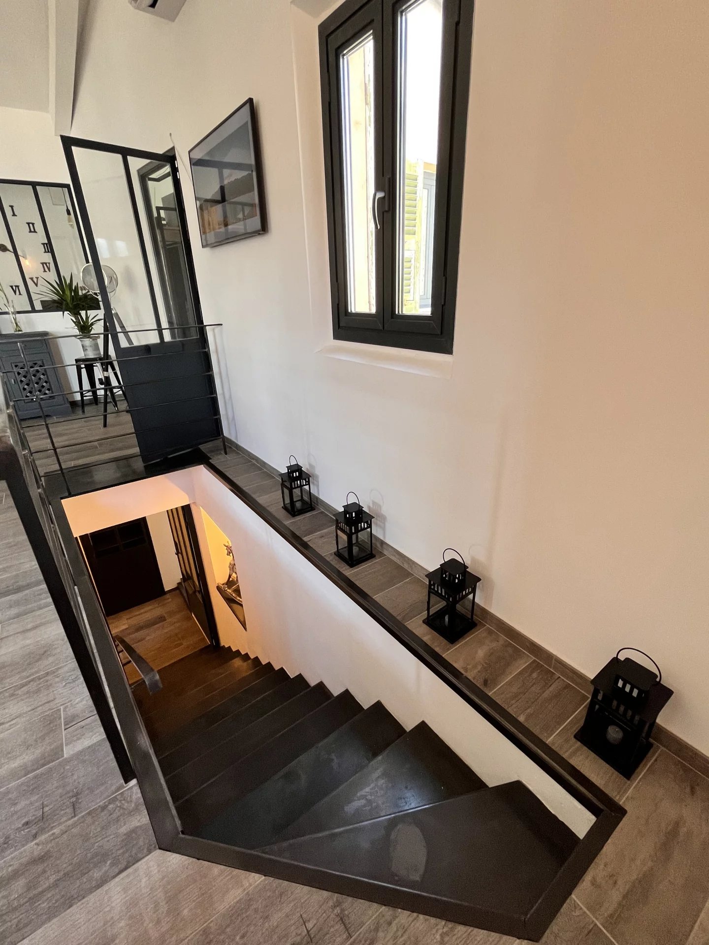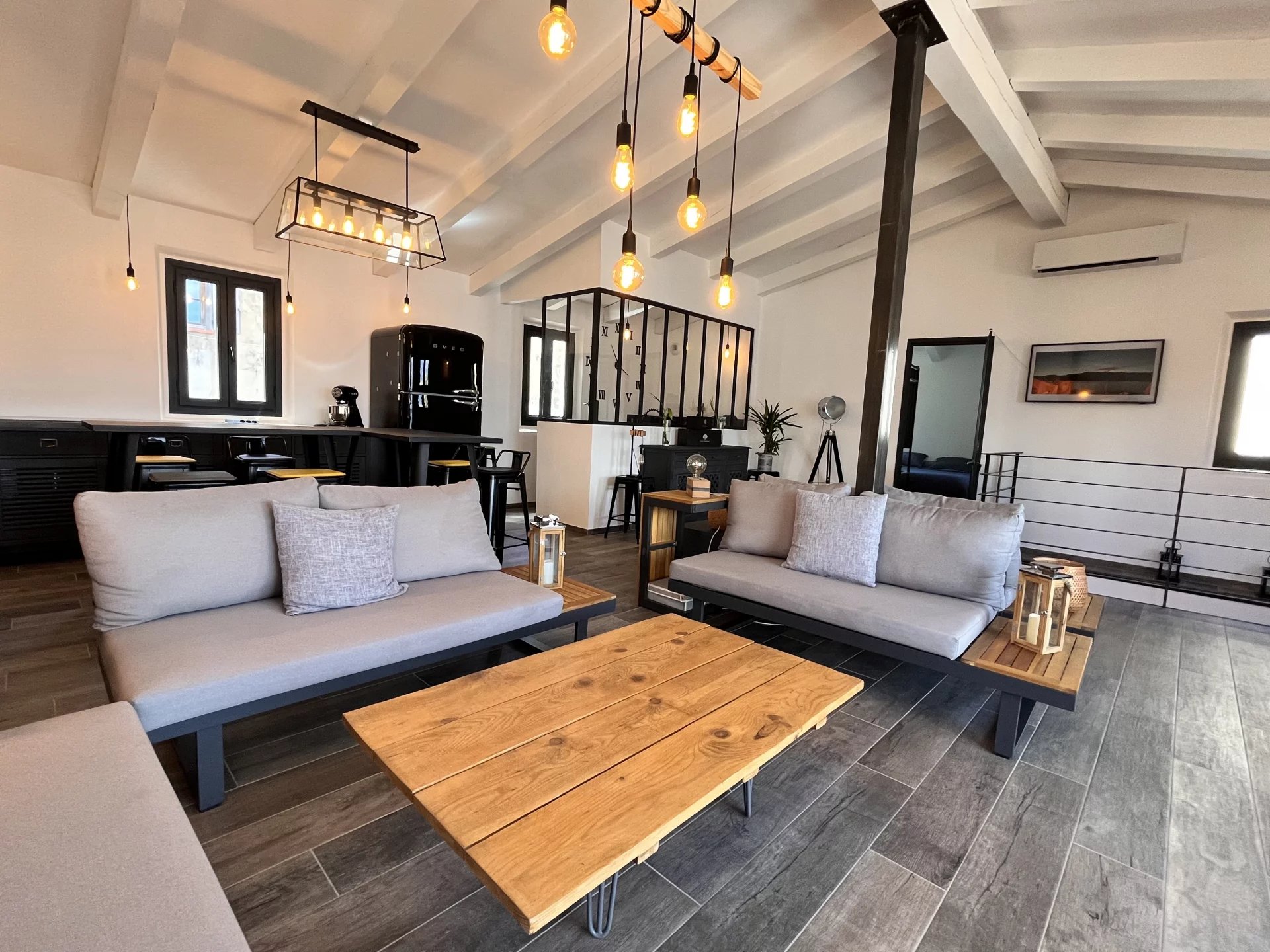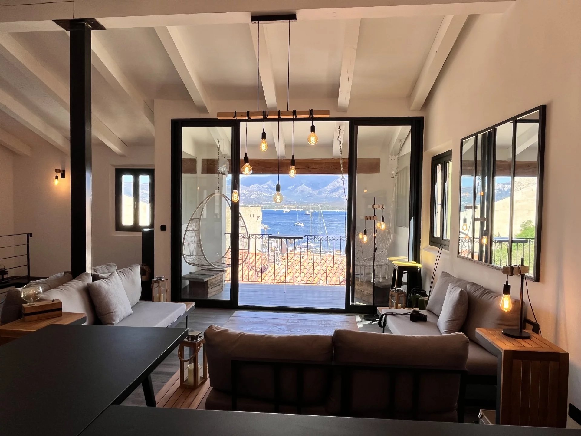 Au cœur du centre ville de Calvi, face au port et à la citadelle, à 5 minutes de la plage, superbe duplex aux derniers étage d’un immeuble historique. Il se compose ainsi: Escalier indépendant depuis la rue, double récéption cathédrale avec 3,5m de HSP au faîtage, terrasse exposée sud-est avec vue exceptionnelle, cuisine ouverte, trois chambres avec chacune une salle d’eau d’eau attentante avec WC. Contact Villaret immobilier 01 42 78 17 78.