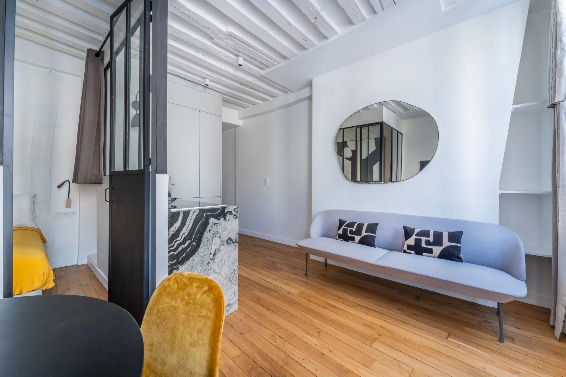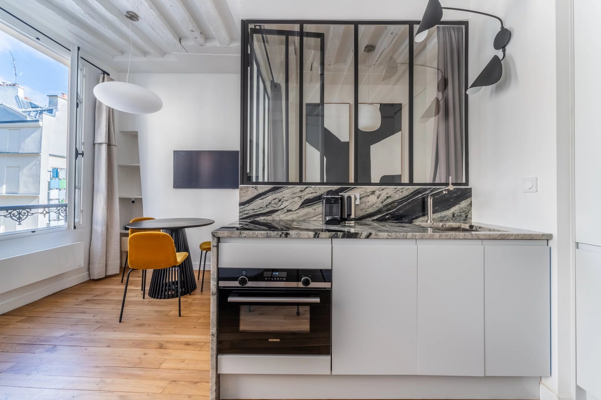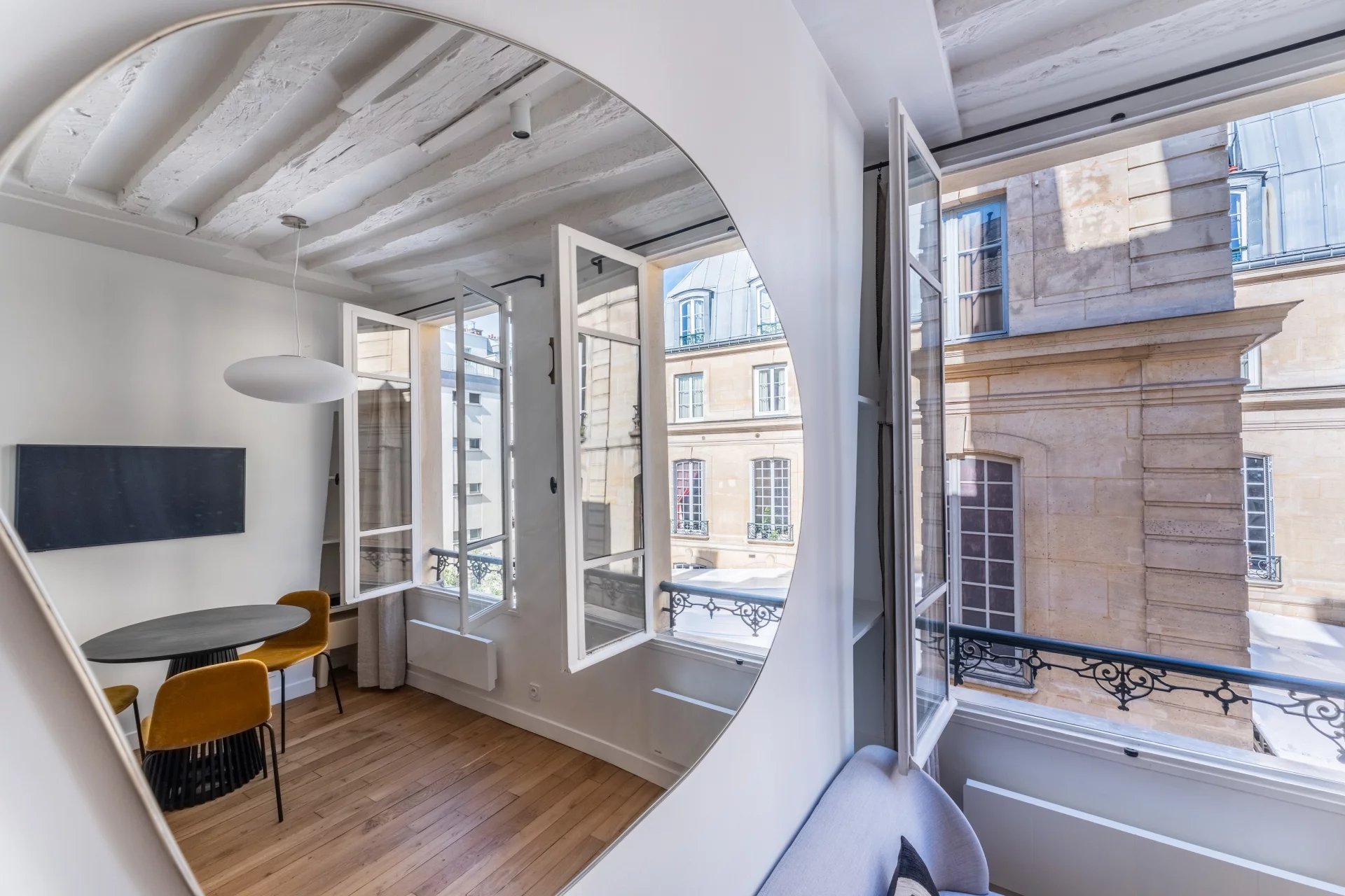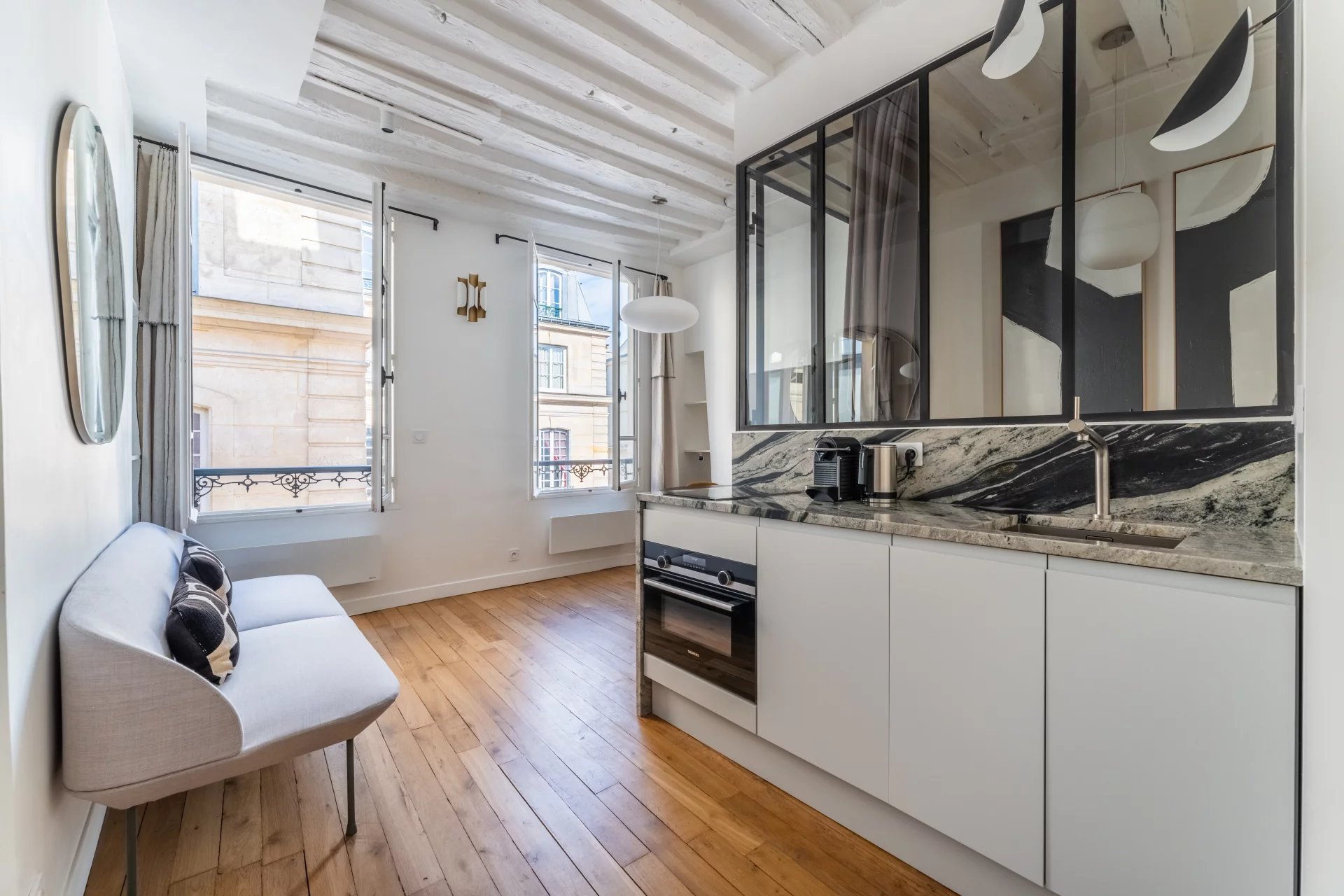 Au coeur du quartier Montorgueil, nous vous proposons ce très bel appartement de 35m2, au 3ème étage sans ascenseur d'un petit immeuble ancien. Il se compose d'une entrée, d'un salon avec cuisine ouverte, d'un bureau puis d'une chambre sur cour avec salle de douche attenante. Appartement entièrement rénové avec des matériaux de qualité, idéalement situé et bénéficiant d'une jolie vue.