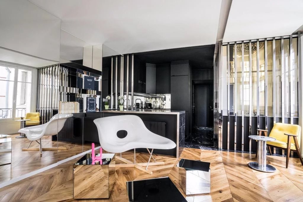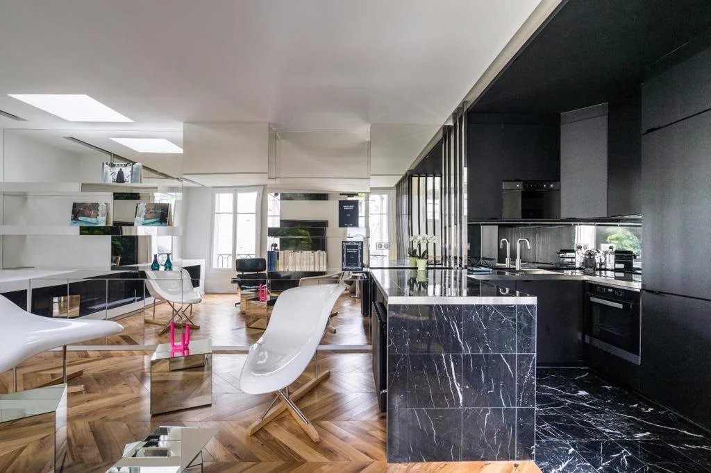 Adresse iconique pour ce ravissant appartement au 4ème et dernier étage du bâtiment sur cour. D'une surface de 52m2, dont 48m2 carrez, il se compose d'une entrée, d'une vaste pièce principale avec cuisine ouverte, d'une chambre avec de nombreux rangements, d'une salle de douche attenante et d'un wc séparé. Lieu unique, profitant d'un calme absolu et d'une jolie vue dégagée sur les toits. Une grande cave complète ce bien.