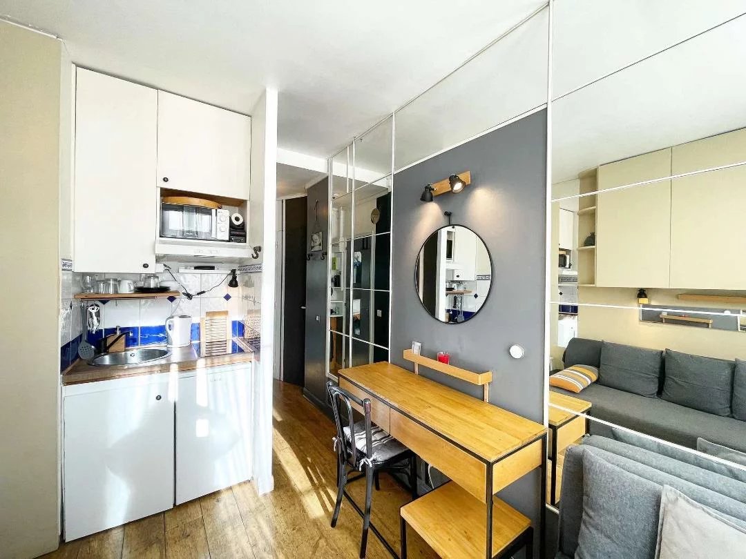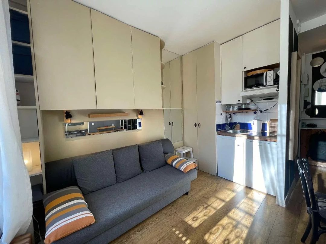 A proximité du métro des Gobelins, dans une rue calme, ravissant studio parfaitement aménagé. Au 6ème étage avec ascenseur d'un bel immeuble de 1930, avec service de gardiennage, et parfaitement entretenu; nous vous proposons ce studio de 13,02m2, comprenant une pièce à vivre avec espace salon, et coin cuisine, profitant d'une agréable vue dégagée sur cour, exposé Sud-Est. Viennent ensuite une salle de douche avec toilettes de type sanibroyeur, et espace pour la machine à laver.