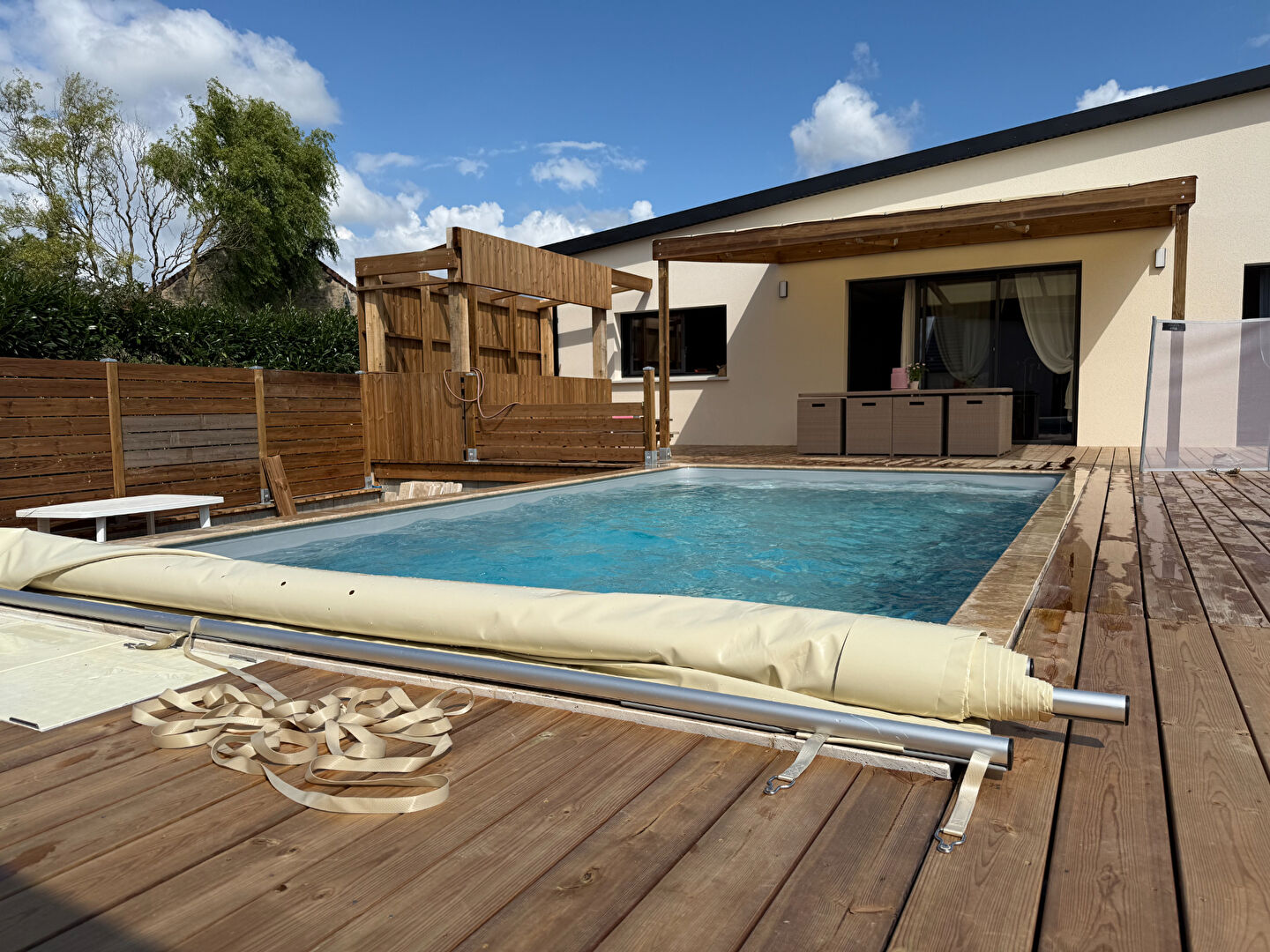 "Vivre l'exception au quotidien " Dans un environnement paisible et recherché, derrière ses lignes élégantes et contemporaines, cette maison d'architece de plain-pied dévoile des volumes généreux, une luminosité rare et un confort absolu. Dès l'entrée, le ton est donné : un hall baigné de lumière, avec vestiaire intégré, ouvre la voie à une pièce de vie somptueuse, véritable coeur de la maison. L'espace, fluide et raffiné, offre une perspective imprenable sur la piscine chauffée , et se prolonge naturellement vers une vaste terrasse ensoleillée. Imaginez vos soirées d'été ici, bercées par le chant des cigales et sublimées par une cuisine d'été parfaitement intégrée. La cuisine, entièrement aménagée et équipée, allie design et fonctionnalité. C'est le lieu rêvé pour recevoir, partager, créer. Côté nuit, quatre chambres confortables, dont une sublime suite parentale avec dressing sur-mesure et salle d'eau privative, vous assurent intimité et bien-être. Une seconde salle de bains ainsi que des WC indépendants viennent compléter l'ensemble, avec élégance et discrétion. Deux garages, l'un attenant, l'autre indépendant ? offrent des options de stationnement ou d'aménagement supplémentaires, selon vos envies. A l'extérieur, le terrain paysager invite à la détente et à la convivialité : piscine chauffée, terrasse accueillante, terrain de pétanque, et espace cuisine d'été composent un écrin de sérénité, parfait pour profiter pleinement de chaque saison. Emplacement de choix, prestations haut de gamme, volumes harmonieux : cette propriété est bien plus qu'une maison, c'est une expérience de vie unique, à découvrir sans tarder. Consultez les risques liés à ce bien sur le site officiel : www.georisques.gouv.fr Un bien rare, une opportunité précieuse. Contactez-nous pour une visite privée et laissez-vous séduire. (3.49 % honoraires TTC à la charge de l'acquéreur.)
