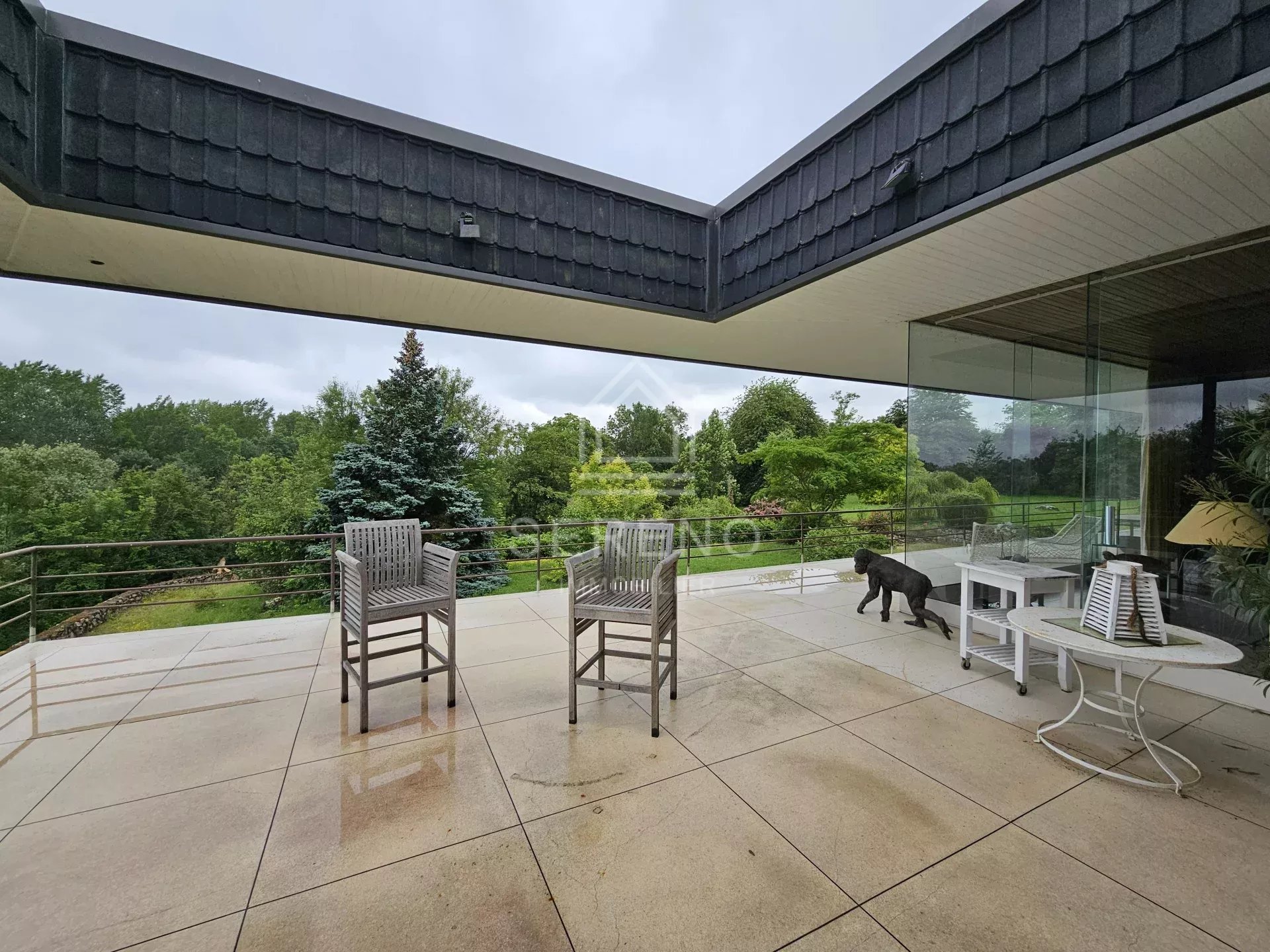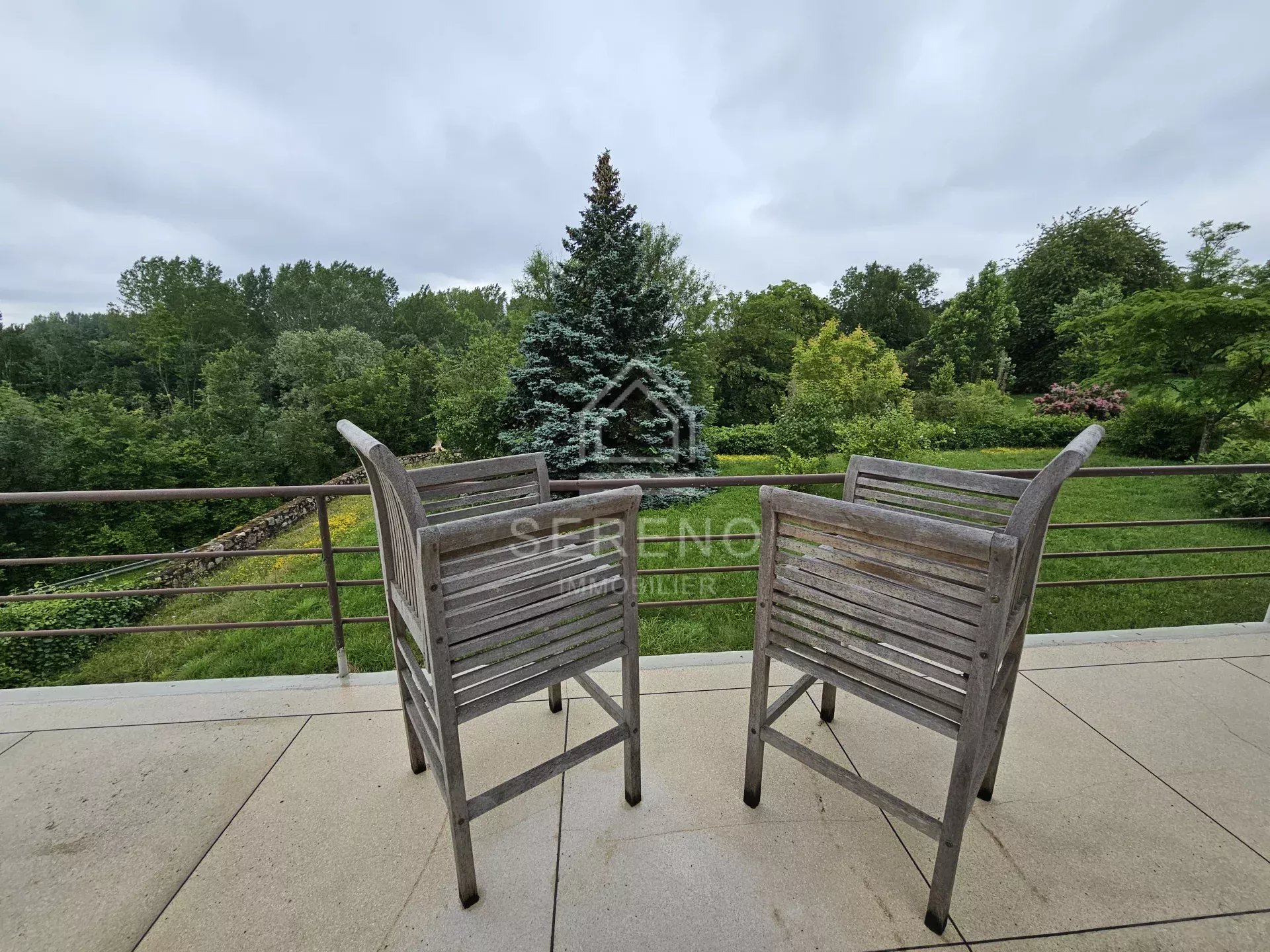51260 MARCILLY SUR SEINE SERENO vous propose dans la Marne à 122 Kms de PARIS, 45 kms de TROYES, 34 Kms de PROVINS, 22 Kms de NOGENT SUR SEINE, 4.7 kms de ROMILLY SUR SEINE (14.500 habitants, gare SNCF TER, PARIS EST en 01 H 09), Une villa d'architecte d'inspiration californienne de 400 m² habitables sur un parc arboré d'arbres séculaires de 1.2 HA en site protégé, piscinable, padel ou Tennis, sans vis à vis, avec un point de vue exceptionnel, nichée en haut d'une colline dominant le fleuve SEINE et la rivière AUBE, vastes terrasses exposées plein sud, composée d'un premier niveau, très grande réception de 100 m², vaste couloir de distribution 50 m², cuisine équipée 25 m² + arrière cuisine 8 m², 3 chambres de 25,20 et 18 m² (possibilité d'en créer 3 autres) avec dans chacune salle d'eau ou salle de bains, toilettes, dressings, d'un rez de jardin, très garnde réception de 130 m² avec bar, kichnette (salle de jeux billard), en sous sol : cave à vins, local technique, buanderie, tableaux electriques, grand local, en extérieur, volière, chalet-atelier avec électricité, puits avec pompe immergée, grand garage à bâteaux 10 X 4. Chauffage avec pompe à chaleur, double vitrage (anti-effraction), volets roulants électriques, tout à l'égout, VMC dans toute la maison, excellents diags. Le gros oeuvre est en parfait état : la construction des fondations, l'assainissement du bâtiment, la construction des soubassements, l'élévation des murs et la réalisation de la toiture (toiture chaude en ossature métalique). Il est à noter que la propriété est habitée toute l'année. Propriété exceptionnelle : son emplacement sans aucun vis à vis, aucune nuisance sonore, son architecture comptenporaine et sa proximité de ROMILY SUR SEINE, 14.500 habitants, toutes les commodités du qutidien et transport. Idéal pour une grande famille avec activité mixte famille et professionnelle) ou pour l'exploitation commerciale du secteur de l'évenementiel (réceptions, meetings, mariages etc) Prix du bien avec honoraires d'agence TTC inclus à la charge du vendeur : 695.000 euros. Information d'affichage énergétique : DPE 218 indice D et GES 23 indice D Montant estimé des dépenses annuelles d'énergie pour un usage standard : chauffage 4257 TTC, eau chaude 546 TTC, Abonnements 262 TTc Consommation d'énergie pour les usages recensés : 5065 TTC. La présente annonce a été rédigée sous la responsabilité éditoriale de M. Guy LAHOURDE, agent commercial, mandataire indépendant en immobilier (RSAC) du tribunal de commerce de CRETEIL sous le numéro 431990571, titulaire de la carte de collaborateur pour le compte de la société SERENO.
