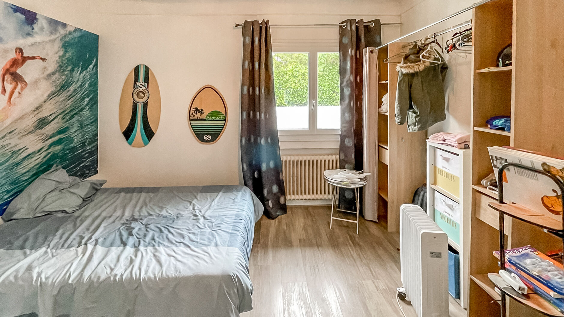 Deux chambres, dont une grande avec salle d'eau privative.