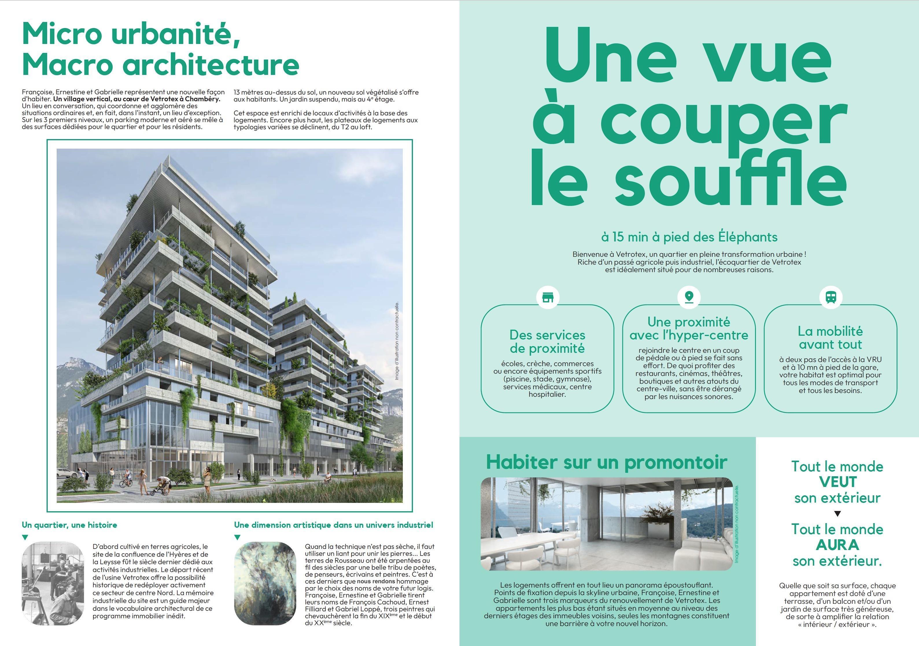Les logements offrent en tout lieu un panorama époustouflant. Points de fixation depuis la skyline urbaine. Françoise, Ernestine et Gabrielle sont trois marqueurs ou renouvellement de Vetrotex. Les appartements les plus bas étant situés en moyenne au niveau des derniers étages des immeubles voisins, seules les montagnes constituent une barrière à votre nouvel horizon.