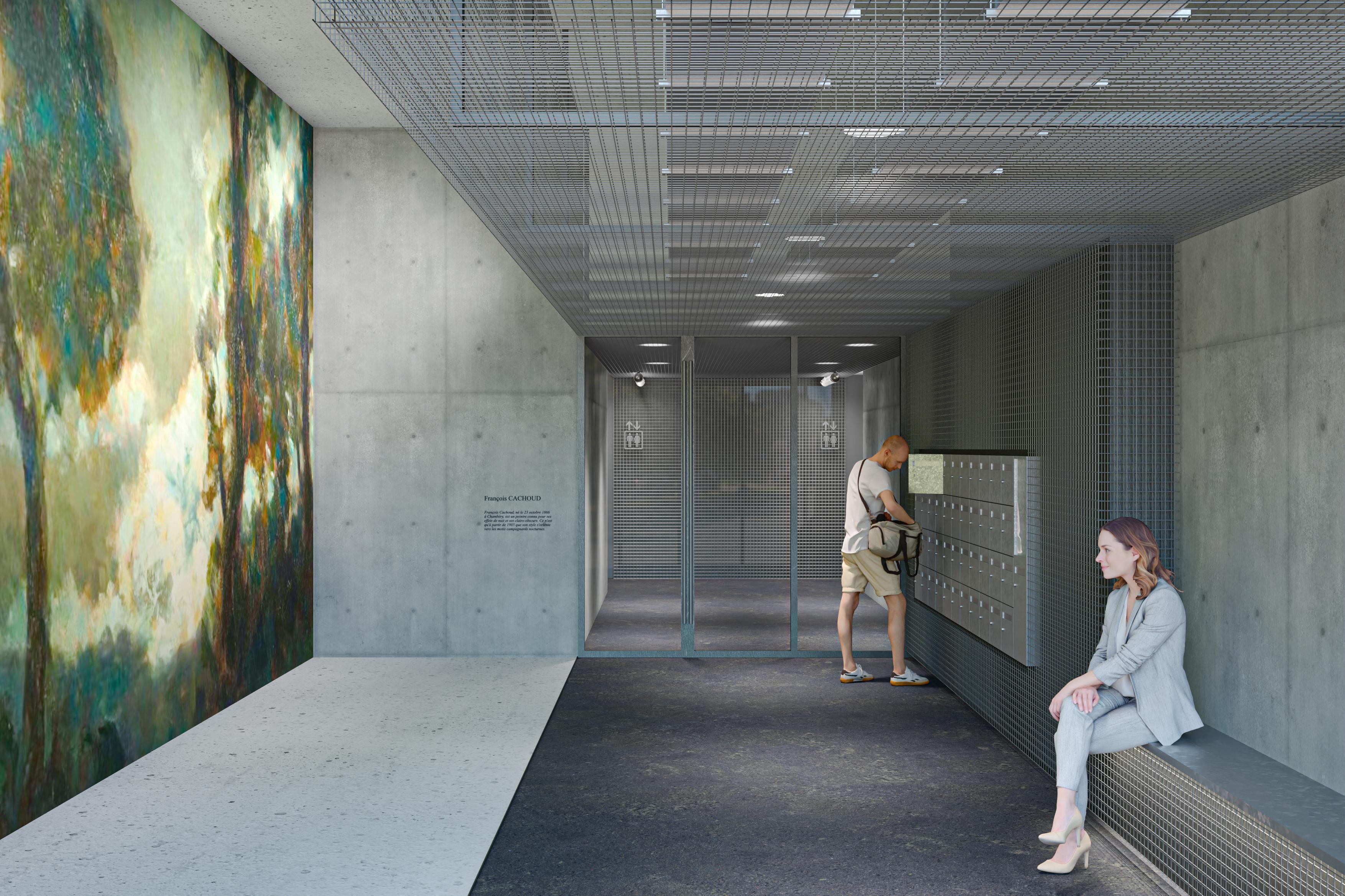 Françoise, Ernestine et Gabrielle représentent une nouvelle façon d'habiter. Un village vertical, au coeur de Vetrotex à Chambéry. Un lieu en conversation, qui coordonne et agglomère des situations ordinaires et, en fait, dans l'instant, un lieu d'exception. Sur les 3 premiers niveaux, un parking moderne et aéré se mêle à des surfaces dédiées pour le quartier et pour les résidents.