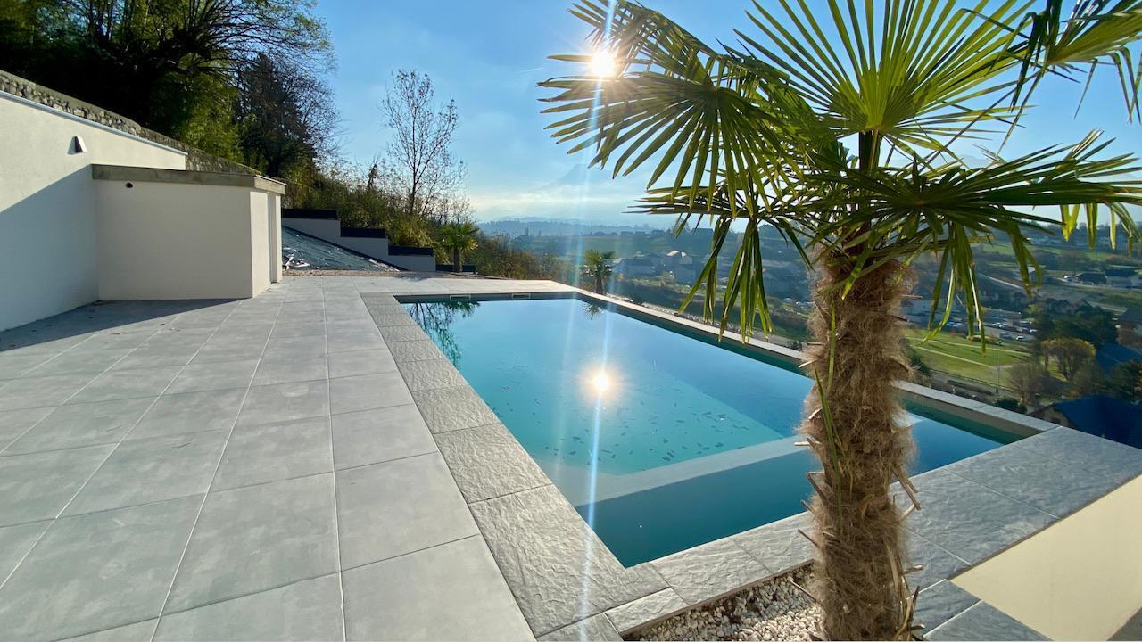 En extérieur, vous pourrez profiter d'un immense parking goudronné, d'une grande terrasse carrelée pour la piscine avec son coin douche, d'un terrain de jeux en contre-bas des restanques, ainsi que d'éclairages multiples des murs, du sol et des arbres. Les prestations de grande qualité incluent des menuiseries aluminium anodisé, des volets roulants centralisés, un vidéophone, un carrelage grand format, un chauffage par pompe à chaleur, etc.