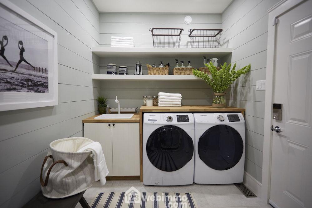 Une pièce précieuse dans ce type de logement : un espace dédié au linge, pratique et fonctionnel.
