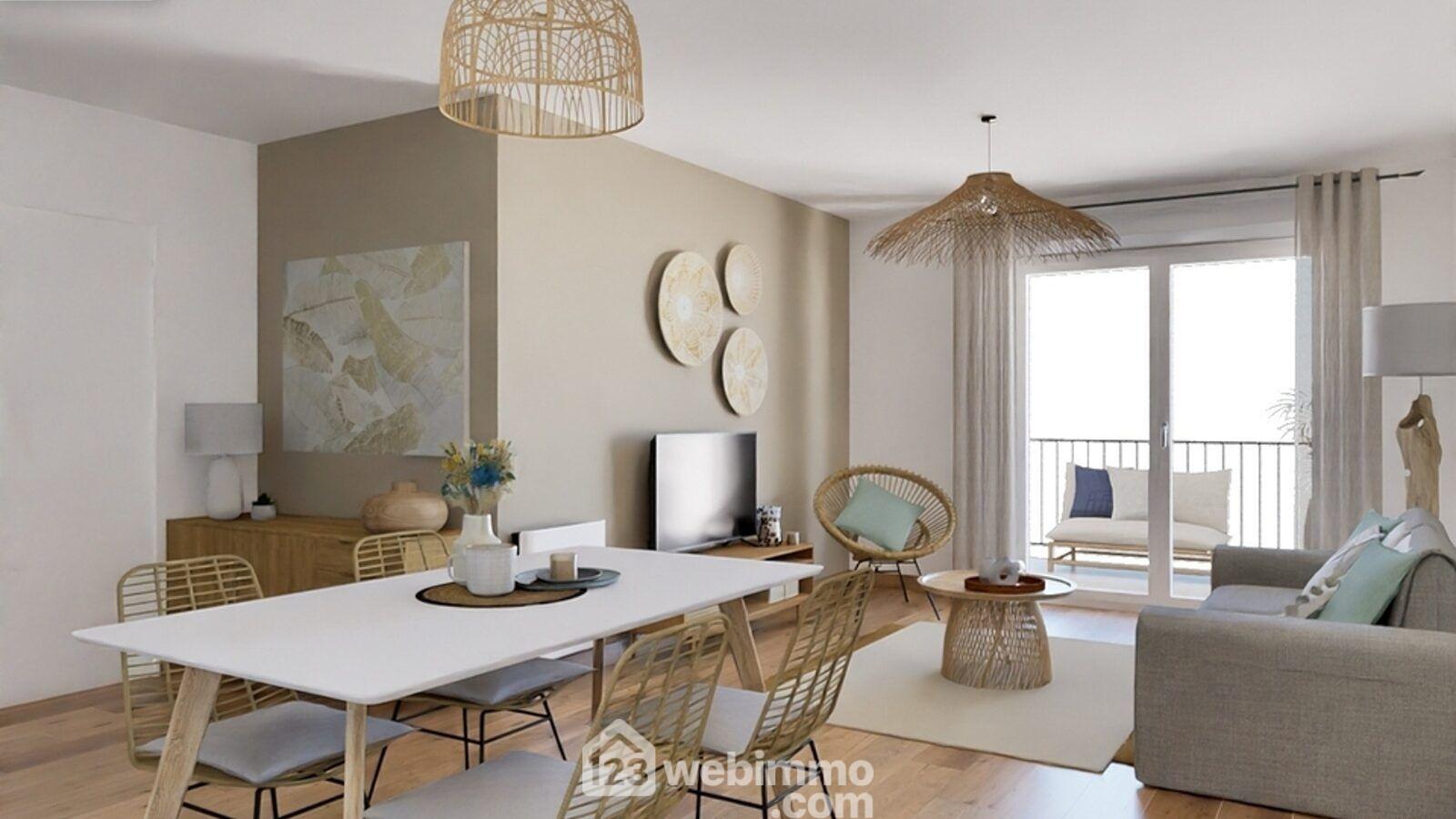 Appartement T3 de 60 m² comprenant un séjour-cuisine de 29 m² avec accès sur balcon. Deux chambres et une salle d'eau.