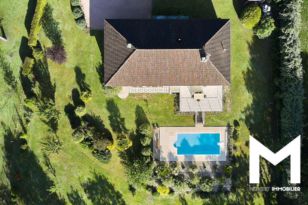 Vendu Montet Immobilier TRÉLISSAC - Magnifique maison située dans un secteur calme et privilégié à deux pas du centre commercial La Feuilleraie - La maison bénéficie d'un parfait état d'entretien et se compose d'une vaste entrée avec rangements qui dessert un salon/salle à manger avec poêle à granulés, une cuisine américaine entièrement équipée donnant sur une belle terrasse qui surplombe le jardin et sa piscine. Côté nuit 4 chambres avec placards intégrés et vu sur piscine,