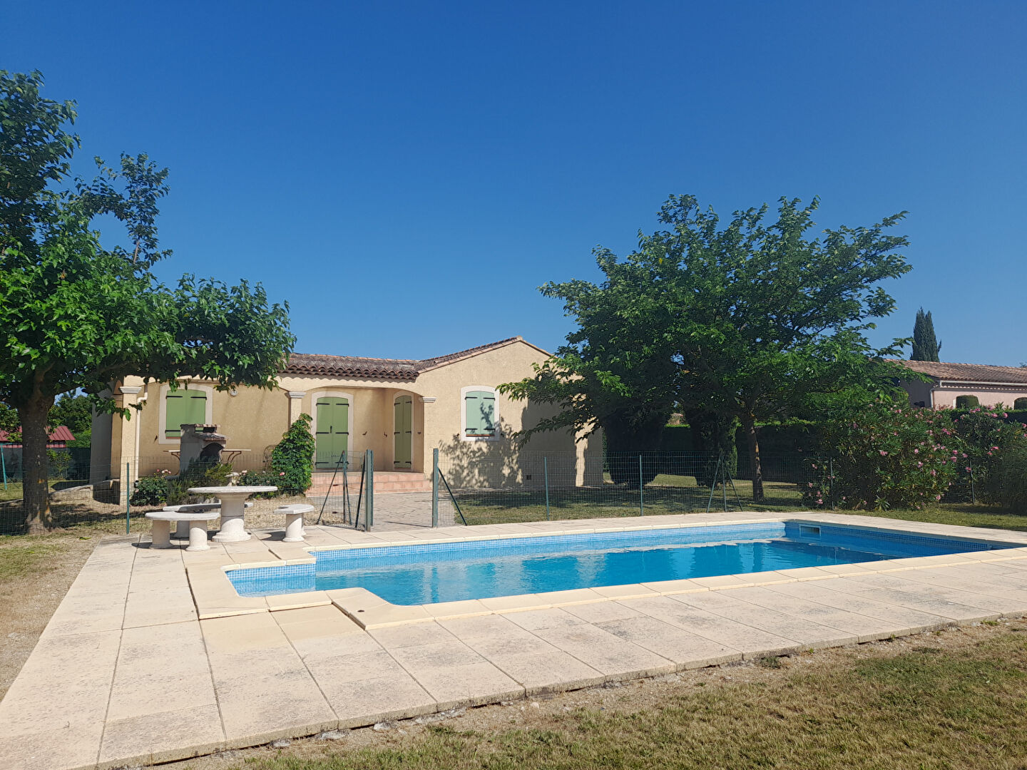 En exclusivité : L'Agence Grossi vous présente cette spacieuse maison de plain-pied située dans un quartier prisé et calme de la commune de Régusse. Avec ses 132 m2 de surface habitable sur un terrain clôturé de 1516m2 avec piscine, cette maison offre un cadre de vie idéal pour une grande famille, pour une résidence secondaire ou comme investissement locatif saisonnier. Caractéristiques de la maison : - Cuisine américaine avec accès sur la grande terrasse couverte face à la piscine. - Double salon salle à manger de 45m2 : pièce de vie lumineuse et spacieuse avec cheminée à insert et porte-fenêtre ouvrant sur la terrasse couverte. - L'espace nuit se compose de 5 chambres de 10 à 14m2 équipées d'une salle de douche avec lavabo dont 2 avec une salle de bain avec baignoire, douche lavabo et toilettes. - Le couloir dessert des placards de rangement ainsi qu'un deuxième WC indépendant. Cette maison offre de beaux volumes et les chambres sont équipées de placards de rangement. L'extérieur : - Un parking pouvant recevoir 5 voitures - Un jardin planté d'oliviers entièrement clôturé - Une spacieuse piscine carrelée 4,5x9 - Un espace barbecue - Un abri-jardin - Assainissement : tout à l'égout Les points positifs : - Portail automatique commun avec une autre maison, fenêtres en double vitrage ,volets neufs aluminium . Maison sur vide-sanitaire. Proximité du village. Cadre serein dans quartier résidentiel prisé du village. Régusse offre un cadre de vie naturel exceptionnel entre mer et montagne où règne une douceur de vivre. Non loin des Gorges du Verdon et du Lac de Ste Croix : cet ancien village templier bâti sur un piton rocheux est célèbre pour ses moulins à vent. De nombreuses balades et activités à découvrir. Pour en savoir plus sur ce bien ou pour organiser une visite : contactez Isabelle Burlet au 04 94 700 666 en indiquant la référence de l'annonce : IS2741