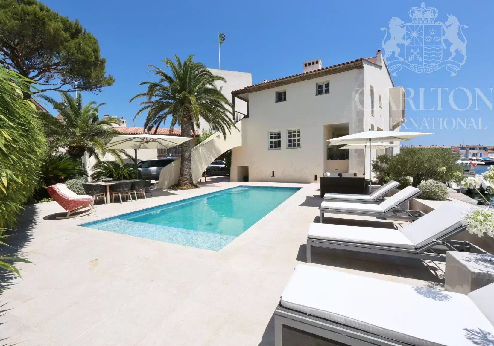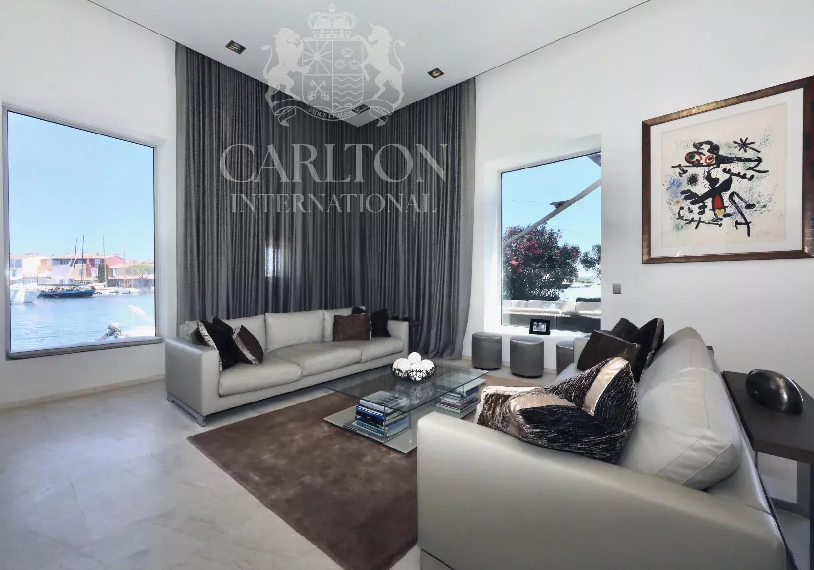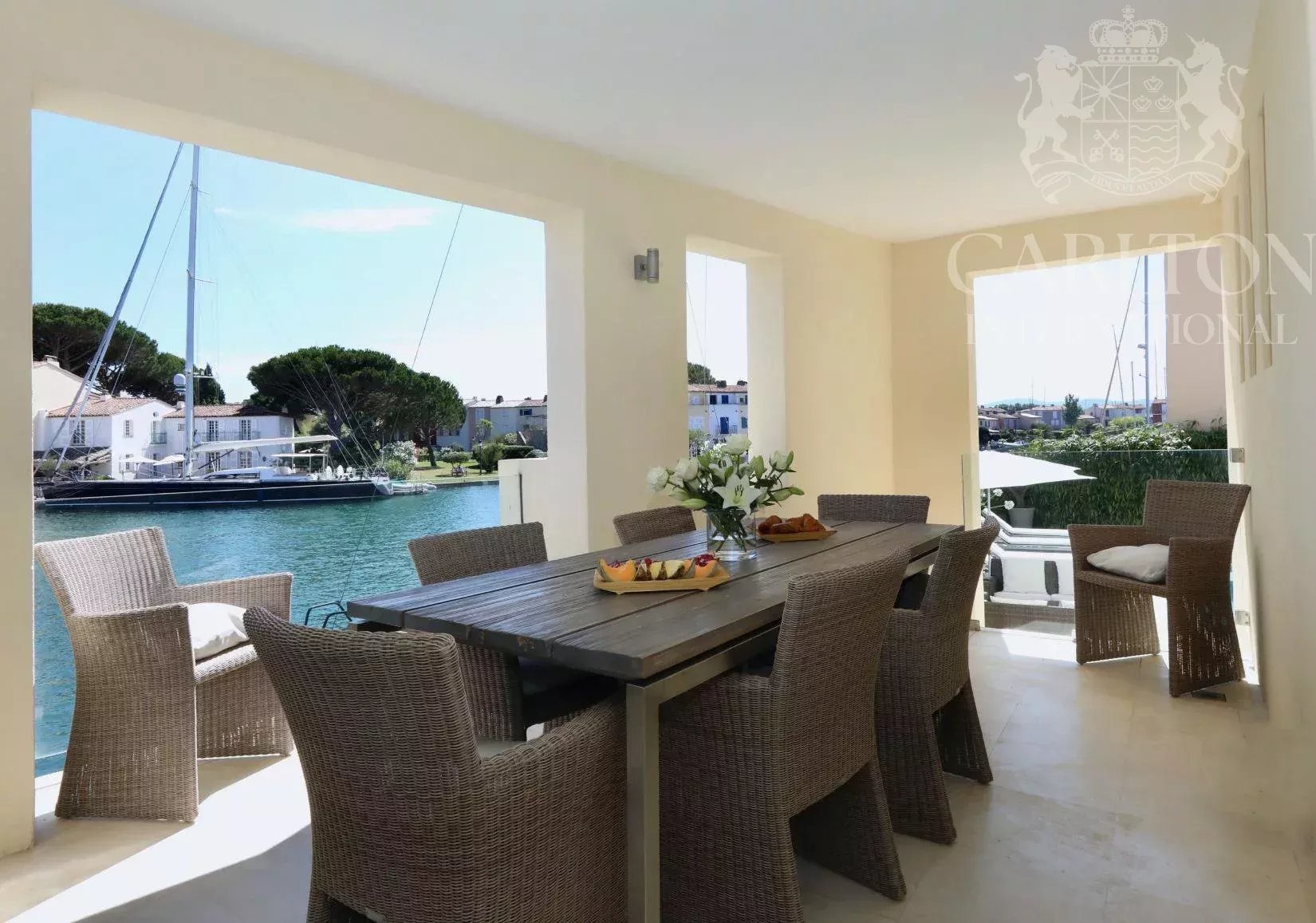 Un chef-d'œuvre exceptionnel au bord de l'eau conçu par François Spoerry - Créateur de Port Grimaud, la "Venise française". Avec une vue inégalée sur la baie de Saint-Tropez, cette extraordinaire propriété représente une rare opportunité de posséder un joyau architectural de François Spoerry, le visionnaire à l'origine de Port Grimaud, célèbre pour être surnommée la "Venise française". Construit en 1969 comme résidence personnelle de Spoerry, ce domaine offre une sécurité inégalée, un design intemporel et un cadre spectaculaire. Un emplacement unique au bord de l'eau Nichée au cœur de Port Grimaud, cette propriété bénéficie d'une situation exceptionnelle au bout d'une impasse privée, entourée d'eau sur trois côtés. Avec plus de 100 mètres d'amarrage privé - l'un des plus grands de la Côte d'Azur - et un accès direct à la mer, cette maison offre un sentiment inégalé de tranquillité et d'exclusivité. Le domaine s'étend sur environ 600 m² d'espace habitable, conçu avec soin pour s'adapter à son cadre idyllique. Depuis son emplacement privilégié, vous pouvez accéder sans effort au port animé de Saint-Tropez, à seulement 15 minutes en bateau, ou aux plages immaculées de Pampelonne et au-delà. Un design exceptionnel La résidence est une extraordinaire fusion entre l'élégance du charme provençal et l'ingéniosité de l'architecture. L'utilisation magistrale de la lumière, de l'espace et des plafonds voûtés par François Spoerry est évidente partout, créant une maison qui semble à la fois expansive et intime. La propriété est composée de : Villa principale : six chambres avec salle de bains, toutes avec une vue imprenable sur l'eau. Les espaces de vie sont définis par de grandes hauteurs de plafond - jusqu'à 4,28 m dans le salon principal et 3,93 m dans les chambres voûtées - et comprennent des salles de réception à double hauteur, une bibliothèque et une élégante salle à manger tropézienne. Logement des invités : Un appartement d'invités à deux chambres offrant intimité et confort. Appartement du gardien : Un logement séparé pour le personnel ou les invités supplémentaires. Caractéristiques exceptionnelles * Un garage à bateaux couvert avec accès direct à la salle de cinéma de la maison - une caractéristique unique conçue pour célébrer le style de vie maritime. * Deux piscines extérieures, l'une située à côté de l'espace de vie avec vue sur les eaux tranquilles, et l'autre discrètement cachée pour une intimité absolue. * Des places de port privées s'étendant sur des centaines de mètres carrés, dont l'une des plus longues de Port Grimaud (50 m), parfaite pour accueillir un hors-bord ou une annexe. * Un garage fermé pour les voitures, qui permet de stocker en toute sécurité les véhicules et le matériel de plaisance. * Des jardins paysagers qui s'harmonisent avec l'environnement naturel, créant une oasis de beauté et de sérénité. Le luxe au service de la commodité Port Grimaud est une communauté fermée et sécurisée, surveillée 24 heures sur 24 et 7 jours sur 7, ce qui garantit la tranquillité d'esprit des résidents. Cette propriété exceptionnelle incarne la quintessence de la vie de luxe, alliant une architecture brillante, une intimité inégalée et un lien extraordinaire avec la mer. Si vous souhaitez discuter en toute confidentialité de cette propriété qui capture l'essence de l'élégance de la Côte d'Azur, veuillez me contacter au numéro ci-dessous.