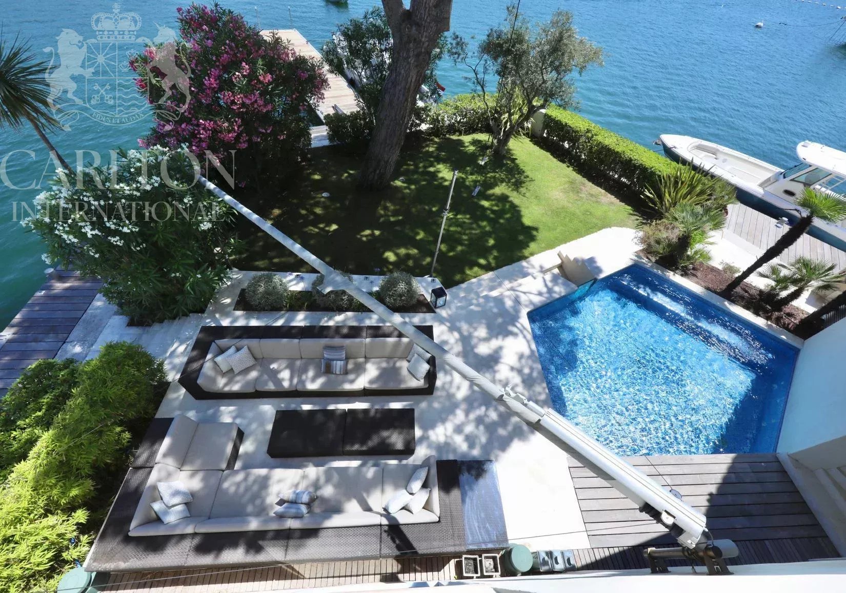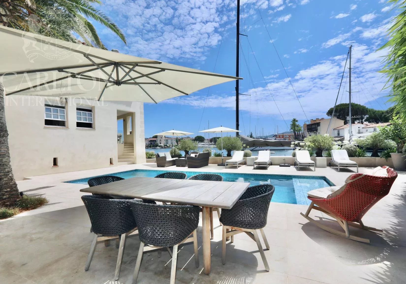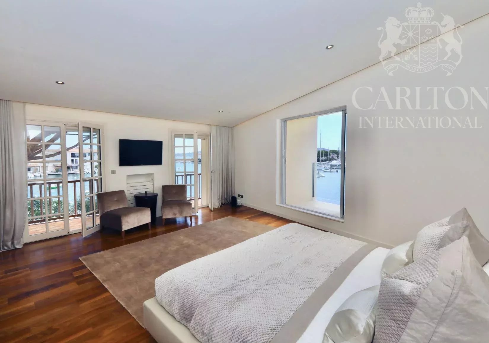 Un chef-d'œuvre exceptionnel au bord de l'eau conçu par François Spoerry - Créateur de Port Grimaud, la "Venise française". Avec une vue inégalée sur la baie de Saint-Tropez, cette extraordinaire propriété représente une rare opportunité de posséder un joyau architectural de François Spoerry, le visionnaire à l'origine de Port Grimaud, célèbre pour être surnommée la "Venise française". Construit en 1969 comme résidence personnelle de Spoerry, ce domaine offre une sécurité inégalée, un design intemporel et un cadre spectaculaire. Un emplacement unique au bord de l'eau Nichée au cœur de Port Grimaud, cette propriété bénéficie d'une situation exceptionnelle au bout d'une impasse privée, entourée d'eau sur trois côtés. Avec plus de 100 mètres d'amarrage privé - l'un des plus grands de la Côte d'Azur - et un accès direct à la mer, cette maison offre un sentiment inégalé de tranquillité et d'exclusivité. Le domaine s'étend sur environ 600 m² d'espace habitable, conçu avec soin pour s'adapter à son cadre idyllique. Depuis son emplacement privilégié, vous pouvez accéder sans effort au port animé de Saint-Tropez, à seulement 15 minutes en bateau, ou aux plages immaculées de Pampelonne et au-delà. Un design exceptionnel La résidence est une extraordinaire fusion entre l'élégance du charme provençal et l'ingéniosité de l'architecture. L'utilisation magistrale de la lumière, de l'espace et des plafonds voûtés par François Spoerry est évidente partout, créant une maison qui semble à la fois expansive et intime. La propriété est composée de : Villa principale : six chambres avec salle de bains, toutes avec une vue imprenable sur l'eau. Les espaces de vie sont définis par de grandes hauteurs de plafond - jusqu'à 4,28 m dans le salon principal et 3,93 m dans les chambres voûtées - et comprennent des salles de réception à double hauteur, une bibliothèque et une élégante salle à manger tropézienne. Logement des invités : Un appartement d'invités à deux chambres offrant intimité et confort. Appartement du gardien : Un logement séparé pour le personnel ou les invités supplémentaires. Caractéristiques exceptionnelles * Un garage à bateaux couvert avec accès direct à la salle de cinéma de la maison - une caractéristique unique conçue pour célébrer le style de vie maritime. * Deux piscines extérieures, l'une située à côté de l'espace de vie avec vue sur les eaux tranquilles, et l'autre discrètement cachée pour une intimité absolue. * Des places de port privées s'étendant sur des centaines de mètres carrés, dont l'une des plus longues de Port Grimaud (50 m), parfaite pour accueillir un hors-bord ou une annexe. * Un garage fermé pour les voitures, qui permet de stocker en toute sécurité les véhicules et le matériel de plaisance. * Des jardins paysagers qui s'harmonisent avec l'environnement naturel, créant une oasis de beauté et de sérénité. Le luxe au service de la commodité Port Grimaud est une communauté fermée et sécurisée, surveillée 24 heures sur 24 et 7 jours sur 7, ce qui garantit la tranquillité d'esprit des résidents. Cette propriété exceptionnelle incarne la quintessence de la vie de luxe, alliant une architecture brillante, une intimité inégalée et un lien extraordinaire avec la mer. Si vous souhaitez discuter en toute confidentialité de cette propriété qui capture l'essence de l'élégance de la Côte d'Azur, veuillez me contacter au numéro ci-dessous.