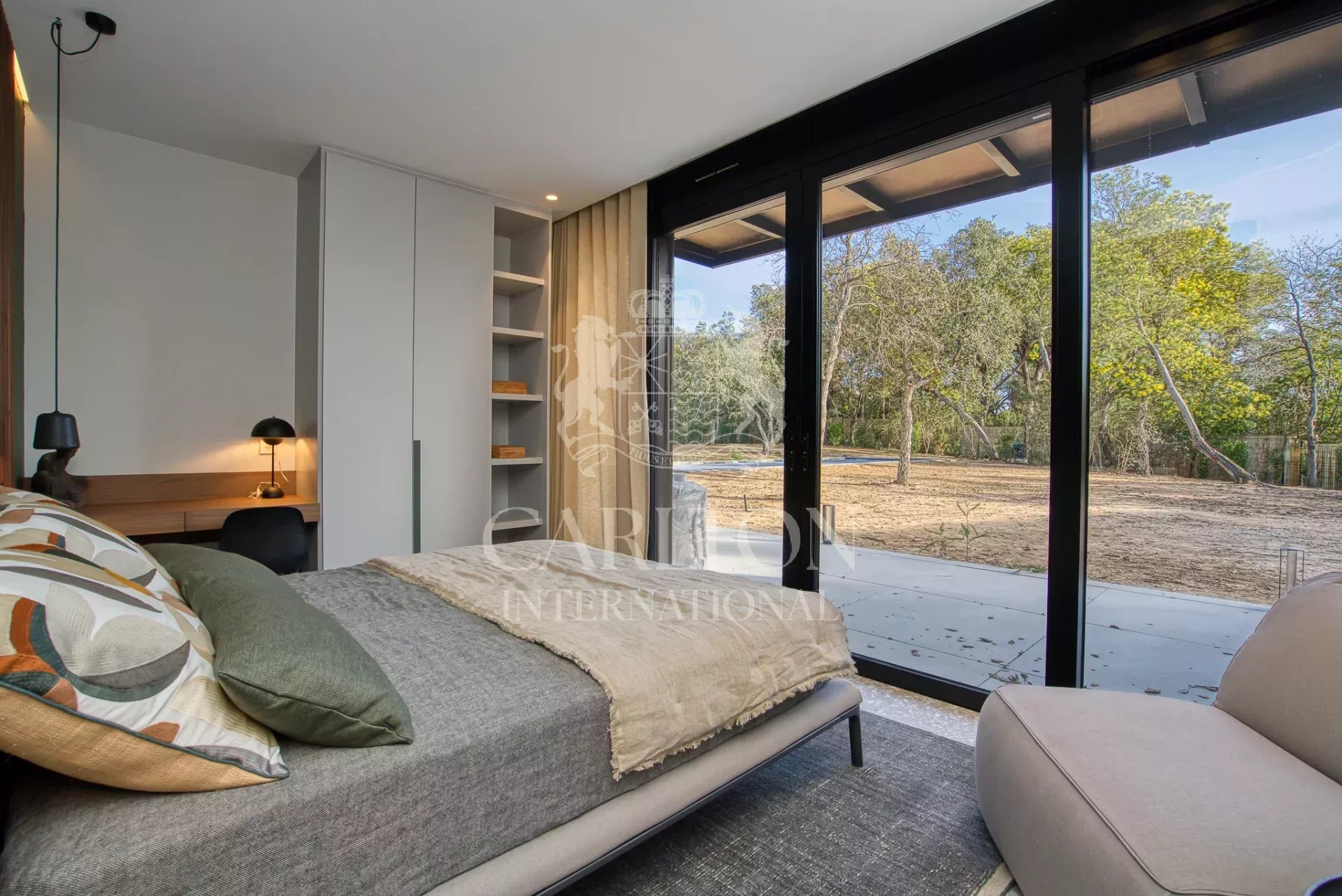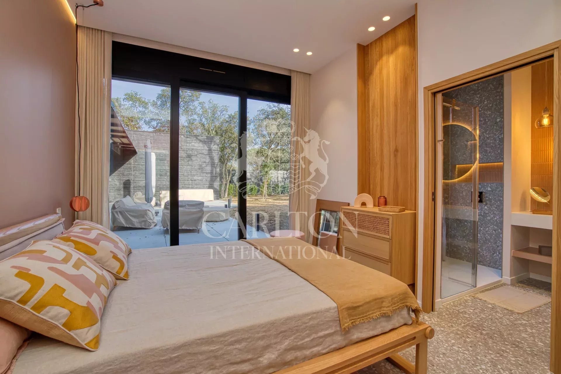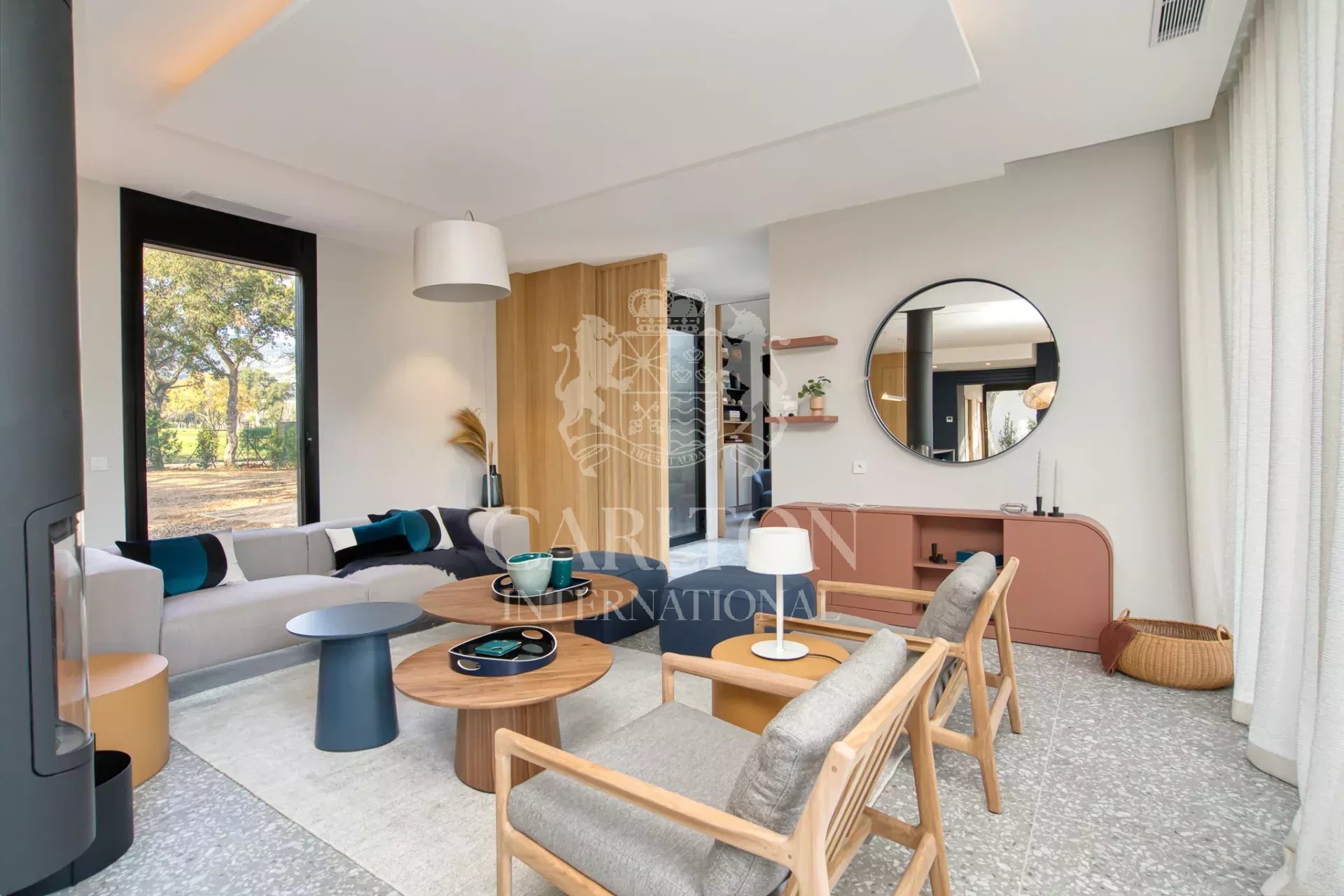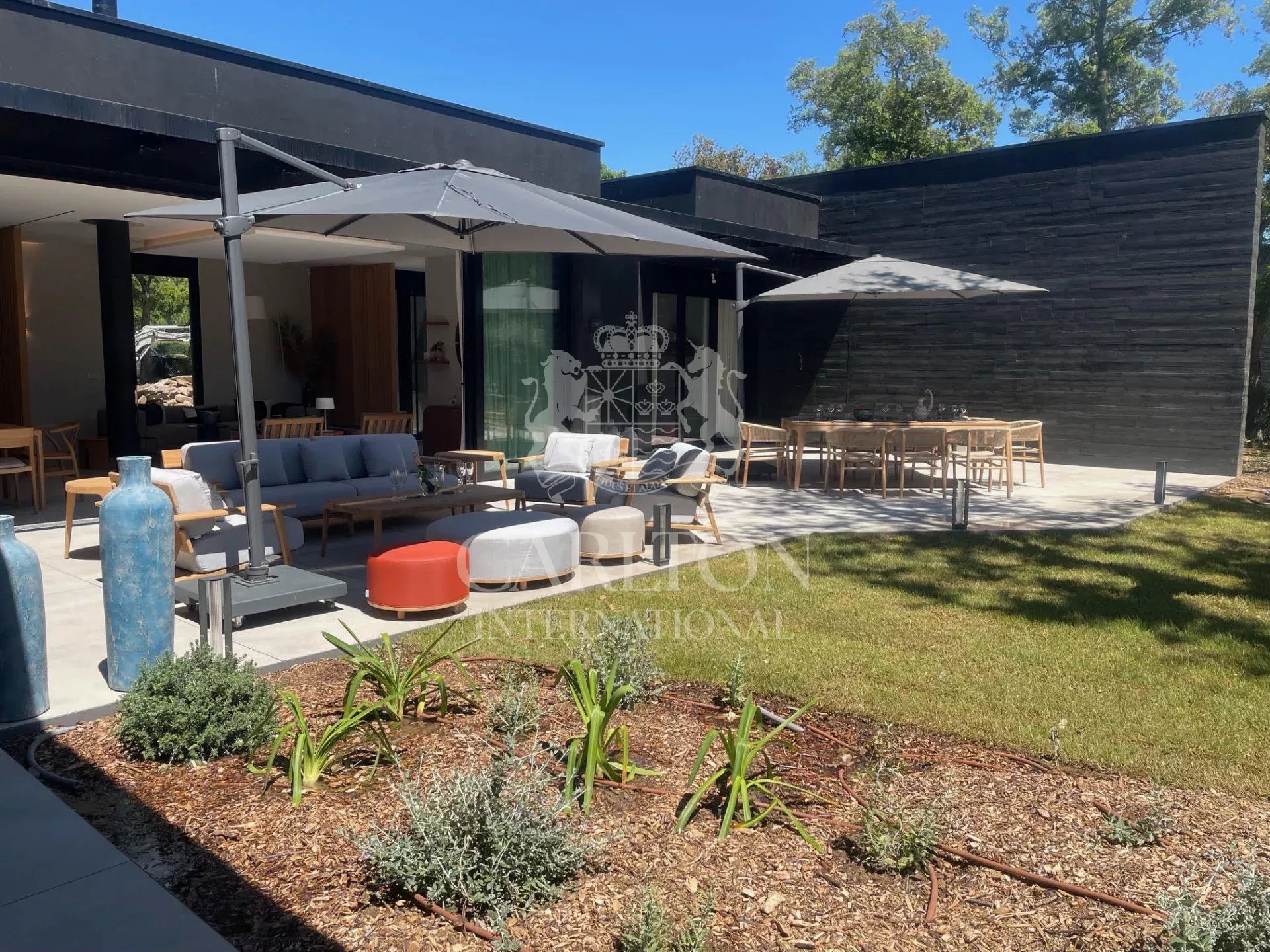 Cette villa de 225 m² avec cinq chambres et salles d'eau ensuite en excellent (neuf) état, décorée avec finesse, est implantée sur env. 3.000 m² de terrain plat et se compose comme suit : Le rez-de-chaussée :hall d'entrée, séjour/salle à manger avec de grandes baies coulissantes, une cheminée suspendue, une belle cuisine ouverte entièrement équipée avec deux lave-vaisselles, deux réfrigérateurs, un four, un micro-ondes, plaques vitrocéramique entre autres, donnant sur des grandes terrasses qui disposent d'une cuisine d'été complète prolongée par le jardin avec sa piscine (chauffable). En outre, un salon télé avec grand écran, trois chambres et trois salles d'eau ensuite. A l'étage : une chambre principale avec sa salle de douche ensuite et une grande terrasse avec vue sur le jardin, la piscine et les collines environnantes, une petite vue mer. Une chambre supplémentaire avec sa salle de douche ensuite. Un portail électrique avec télécommande, un garage double avec chargeur de voiture électrique, des volets électriques avec commande centralisée. À quelques pas du club house du golf et de la plage. Réf. LGF03