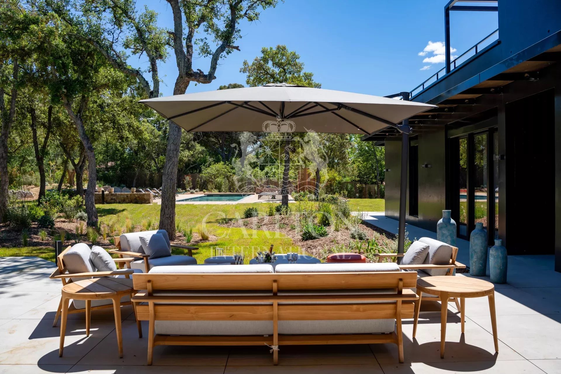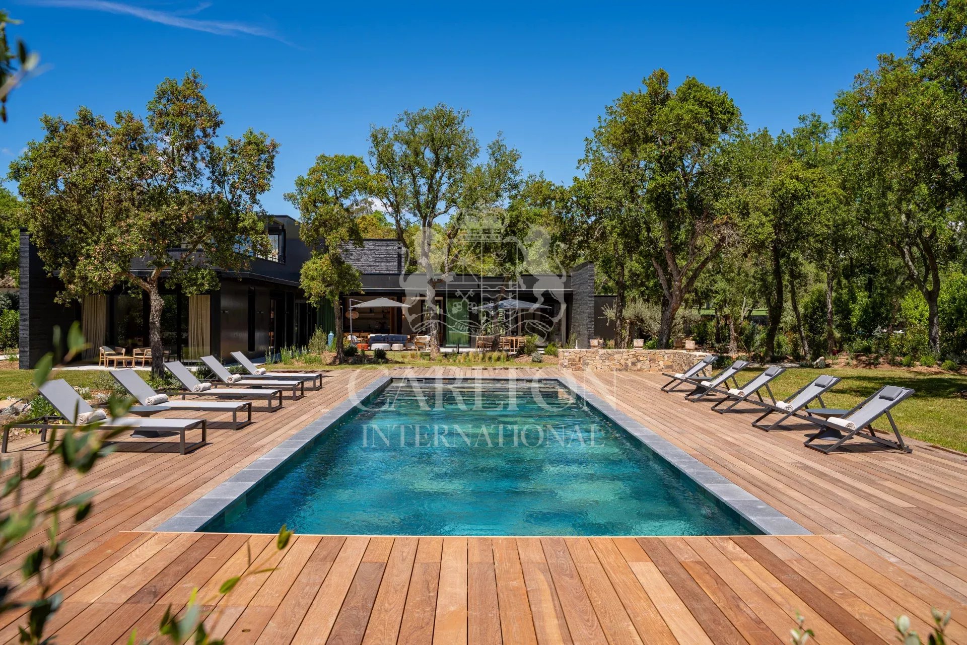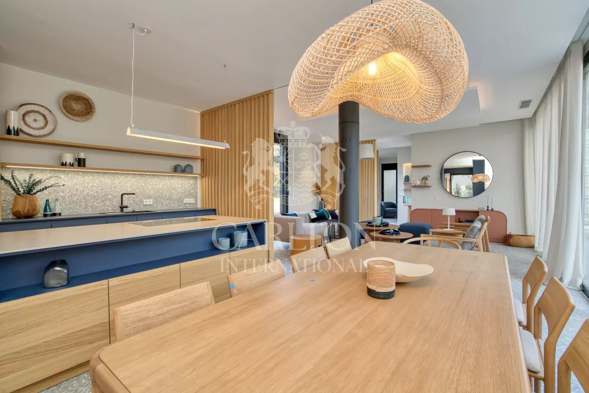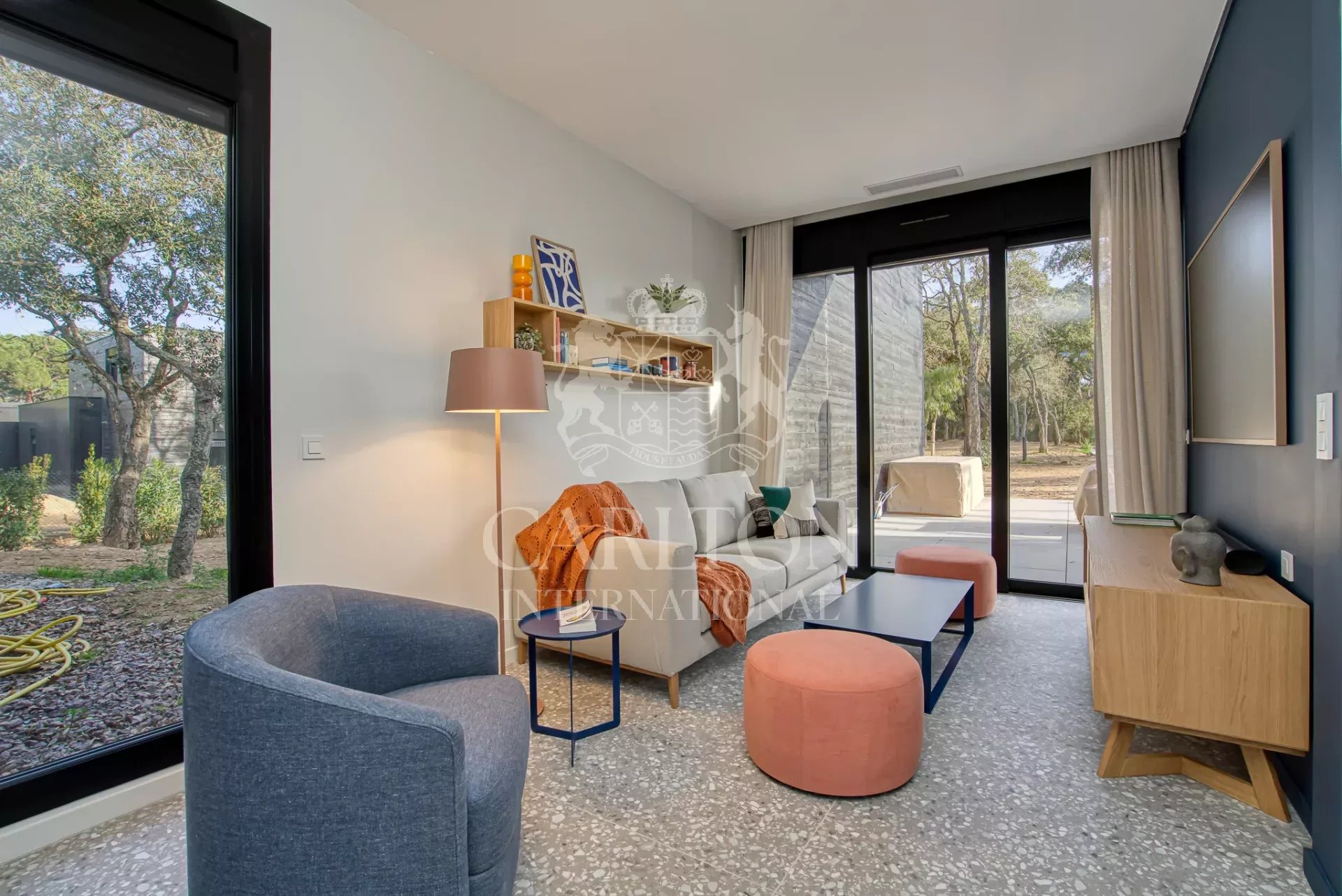 Cette villa de 225 m² avec cinq chambres et salles d'eau ensuite en excellent (neuf) état, décorée avec finesse, est implantée sur env. 3.000 m² de terrain plat et se compose comme suit : Le rez-de-chaussée :hall d'entrée, séjour/salle à manger avec de grandes baies coulissantes, une cheminée suspendue, une belle cuisine ouverte entièrement équipée avec deux lave-vaisselles, deux réfrigérateurs, un four, un micro-ondes, plaques vitrocéramique entre autres, donnant sur des grandes terrasses qui disposent d'une cuisine d'été complète prolongée par le jardin avec sa piscine (chauffable). En outre, un salon télé avec grand écran, trois chambres et trois salles d'eau ensuite. A l'étage : une chambre principale avec sa salle de douche ensuite et une grande terrasse avec vue sur le jardin, la piscine et les collines environnantes, une petite vue mer. Une chambre supplémentaire avec sa salle de douche ensuite. Un portail électrique avec télécommande, un garage double avec chargeur de voiture électrique, des volets électriques avec commande centralisée. À quelques pas du club house du golf et de la plage. Réf. LGF03