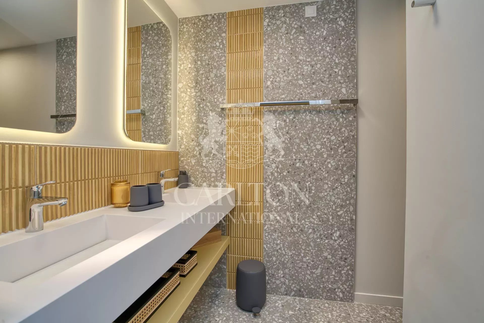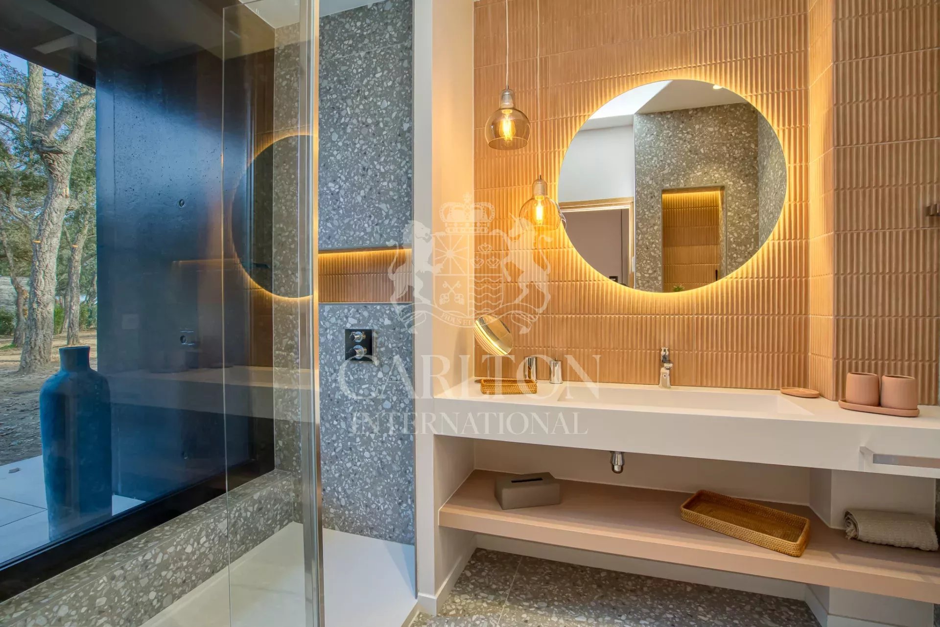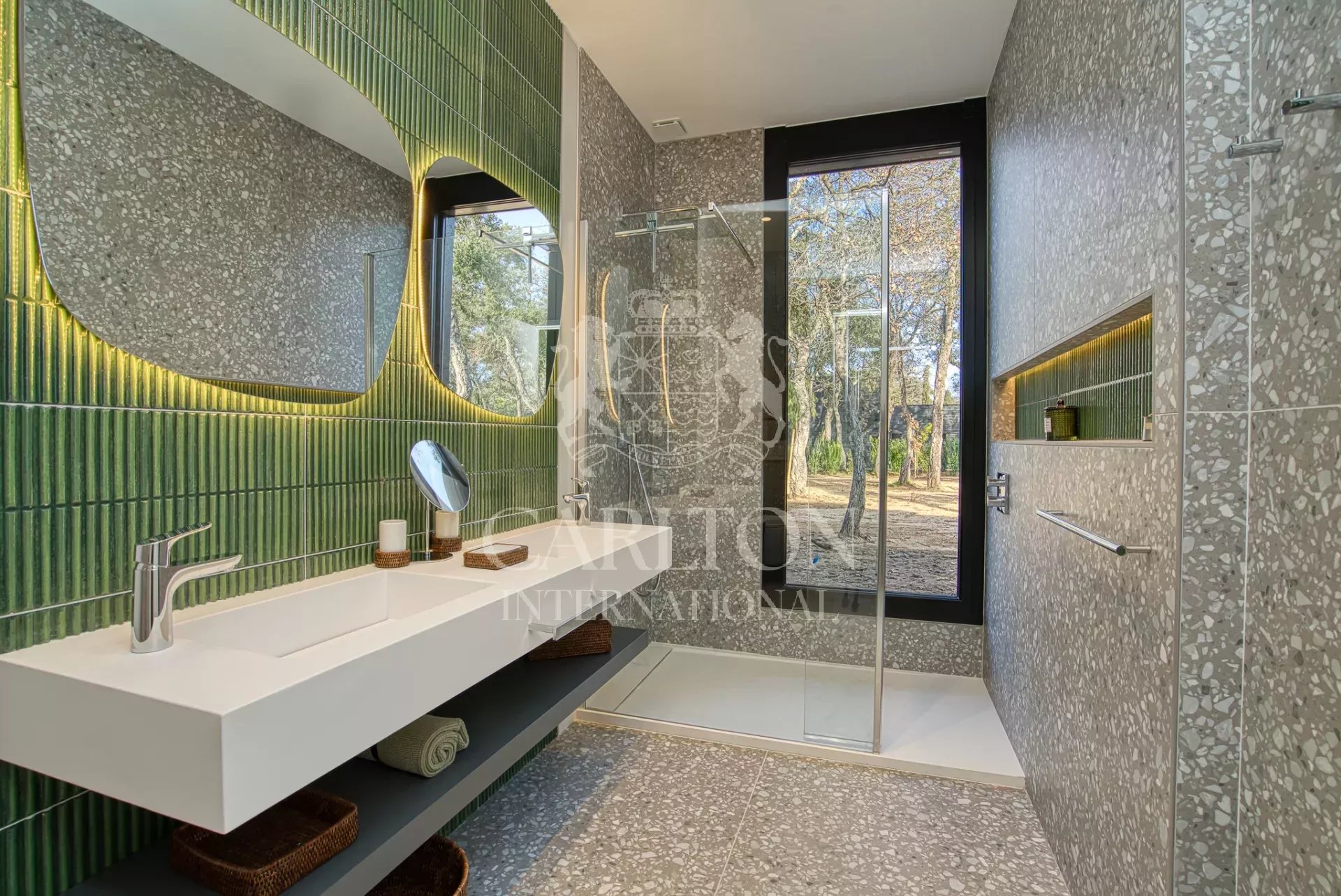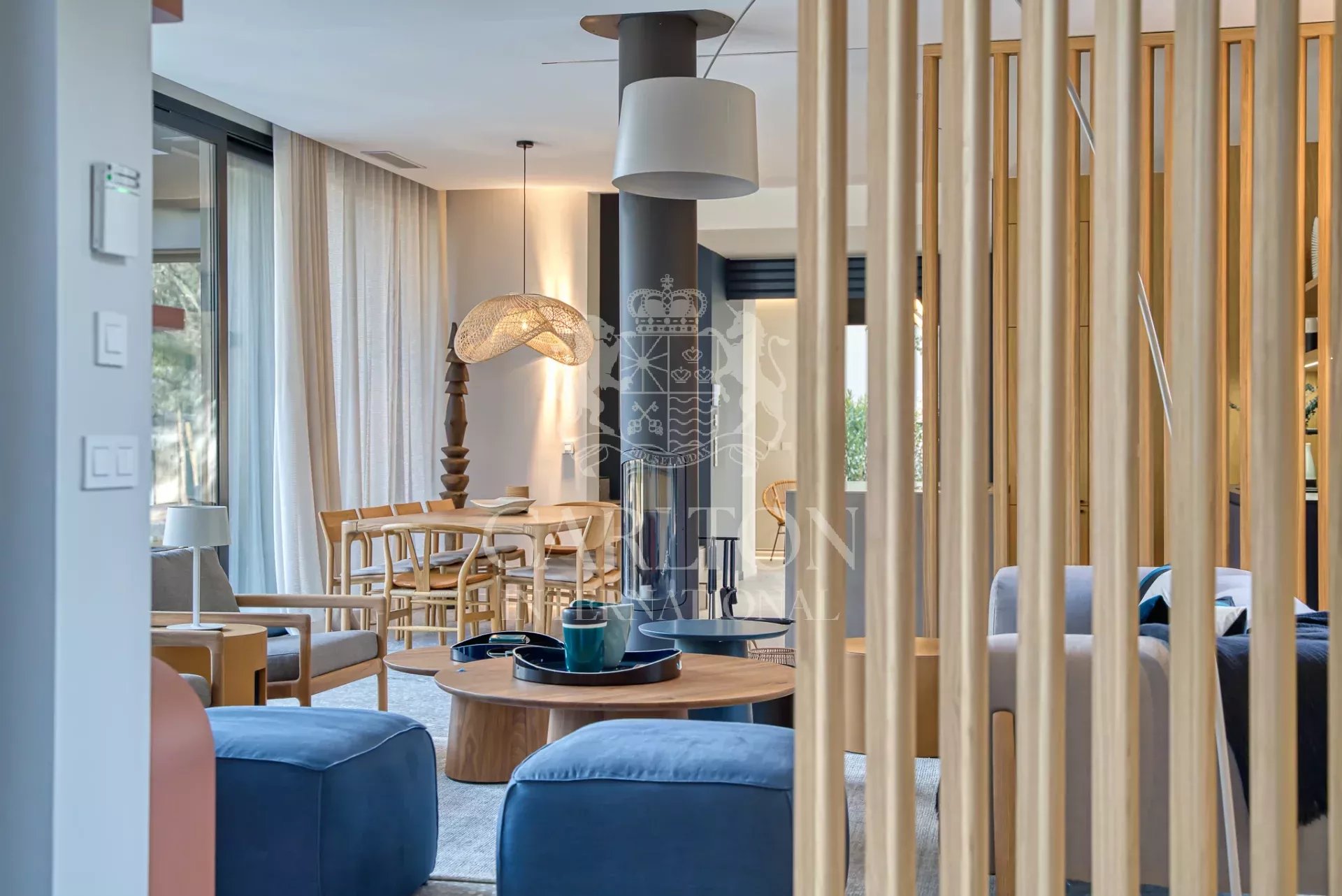 Cette villa de 225 m² avec cinq chambres et salles d'eau ensuite en excellent (neuf) état, décorée avec finesse, est implantée sur env. 3.000 m² de terrain plat et se compose comme suit : Le rez-de-chaussée :hall d'entrée, séjour/salle à manger avec de grandes baies coulissantes, une cheminée suspendue, une belle cuisine ouverte entièrement équipée avec deux lave-vaisselles, deux réfrigérateurs, un four, un micro-ondes, plaques vitrocéramique entre autres, donnant sur des grandes terrasses qui disposent d'une cuisine d'été complète prolongée par le jardin avec sa piscine (chauffable). En outre, un salon télé avec grand écran, trois chambres et trois salles d'eau ensuite. A l'étage : une chambre principale avec sa salle de douche ensuite et une grande terrasse avec vue sur le jardin, la piscine et les collines environnantes, une petite vue mer. Une chambre supplémentaire avec sa salle de douche ensuite. Un portail électrique avec télécommande, un garage double avec chargeur de voiture électrique, des volets électriques avec commande centralisée. À quelques pas du club house du golf et de la plage. Réf. LGF03