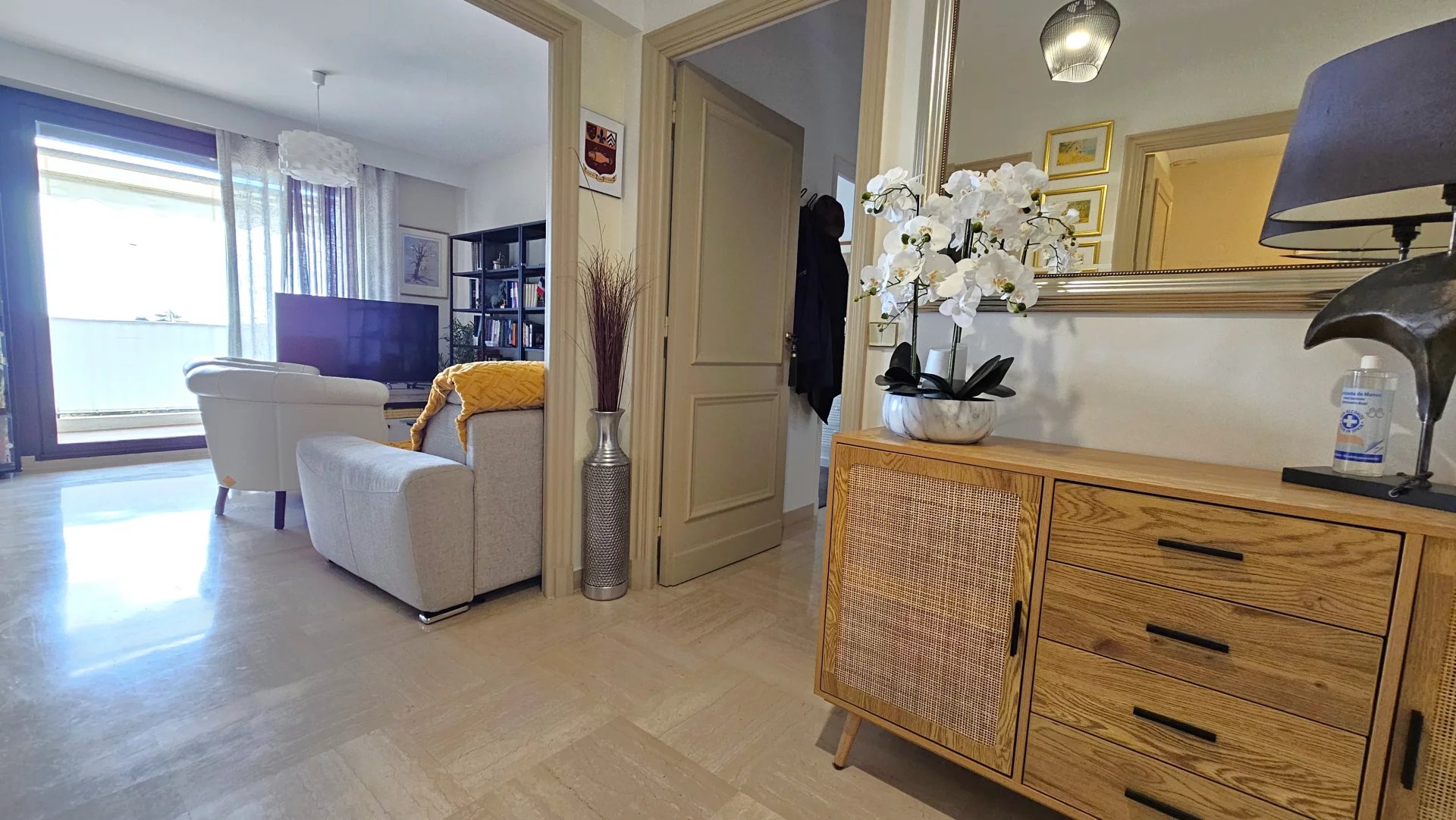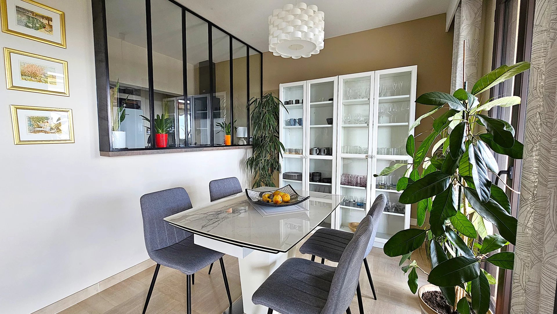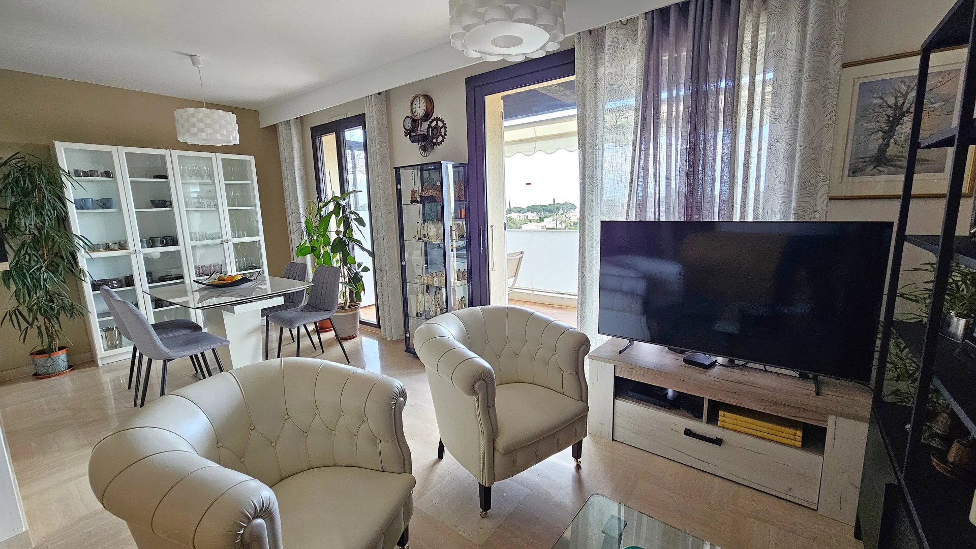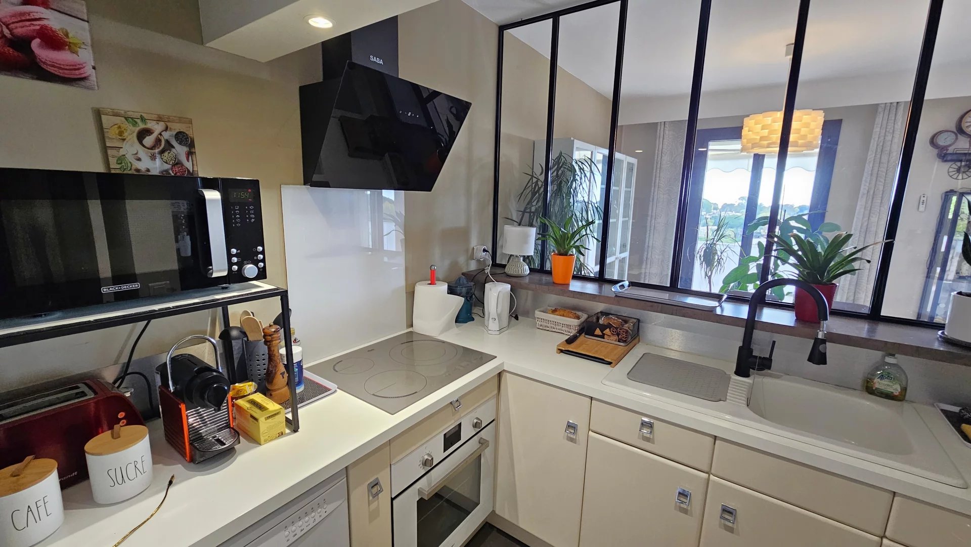 VENDU PAR L'AGENCE Très belle vue en position dominante sur le Domaine et la mer. Idéalement situé, au calme, dans un hameau recherché proche village, appartement 3 pièces traversant de 63 m², (grand 2 pièces transformé), situé en dernier étage. Après quelques marches (demi étage), vous accédez à une première terrasse de 10 m² menant à l'entrée. L'appartement offre un séjour lumineux ainsi qu'une chambre de 12 m², tous deux ouverts sur une magnifique terrasse de 19 m² exposée Sud Est, offrant une vue dégagée sur le Domaine et jusqu'à la mer. La cuisine est indépendante et entièrement équipée. Elle bénéficie d'une belle luminosité naturelle grâce à une verrière intérieure ouvrant sur le séjour, apportant à la fois clarté et convivialité. Une seconde chambre/bureau avec placards, une salle de bains/ buanderie, une salle d'eau et des toilettes invités complètent ce bien. Climatisation réversible, stores électriques neufs, ouvrants récents, chauffe eau neuf. Nombreuses places visiteurs. Idéalement situé entre Cannes et Nice (accès autoroutes en moins de 5 minutes), à proximité des plages et de toutes commodités, ce Domaine sécurisé s'étend sur 130 hectares de parc arboré sur lequel se répartissent 11 hameaux. Vous y trouverez un restaurant Club House, des courts de tennis, une piscine Olympique, des commerces et une école maternelle. Bien soumis au statut de la copropriété. Charges générales annuelles courantes : 3.600€/an soit 260€/mois. Nombre de lots: en cours. Procédures en cours : 0. Honoraires d'agence inclus de 5% à la charge de l'acquéreur. Les informations sur les risques auxquels ce bien est exposé sont disponibles sur le site Géorisques : georisques.gouv.fr.