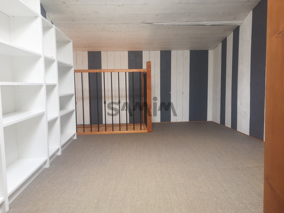 Au même étage se trouvent, une salle à manger et un salon doté d'un magnifique poêle à bois. Pour compléter ce niveau, vous aurez accès à une mezzanine aménageable en bureau ou en bibliothèque ainsi que d'une salle d'eau avec WC.