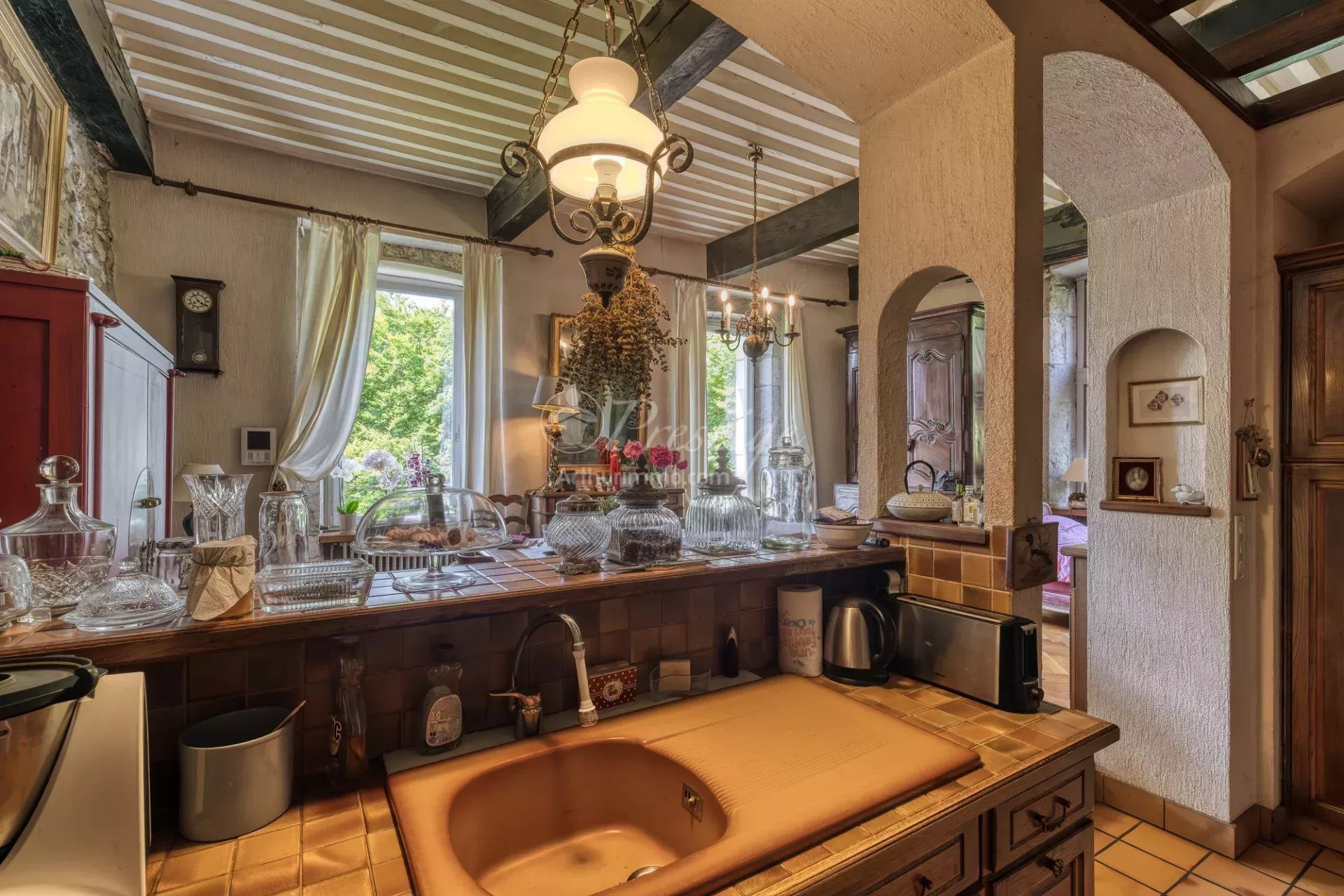 Cette maison forte chargée d'histoire nichée dans un écrin de verdure a traversé les siècles et ne demande qu'à être restaurée pour poursuivre son histoire. En surplomb de la vallée chambérienne, avec une vue dégagée, la famille d'Arvey fut la première propriétaire connue de la propriété, aux XIIe et XIIIe siècles. Seulement 10 familles différentes furent propriétaires de ce domaine, jusqu'à ce jour. Une fois passé au delà des grilles du château, une allée ombragée sous les platanes fera encore planer le suspens avant de pouvoir découvrir la propriété. Le parc de 1.3ha est aménagé autour d'un chemin qui vous permet de circuler autour de la bâtisse, desservant l'habitation, l'annexe de 150m², l'étang et la piscine, et les nombreux espaces extérieurs aménagés et ombragés. Chargée d'histoire, cette bâtisse nécessite une belle restauration pour continuer de traverser les siècles suivants. Seulement habitée sur 2 niveaux, les combles et la tour n'ont pas été restaurés jusqu'alors. Cette demeure, parmi les plus anciennes du village, ne laissera pas indifférents les amoureux des lieux enchanteurs aux notes historiques. La bâtisse principale accueille à ce jour 2 habitations. L'annexe de 150m², à l'arrière du domaine, permet de stationner des véhicules et le stockage du matériel nécessaire à l'entretien du parc. Au RDC, 250m² sont disponibles, dont seulement 150m² rénovés en un appartement indépendant. En montant les 31 marches pour accéder au 2ème étage, un palier accueille une chapelle, dont les vestiges sont toujours en place. Le 2ème étage est composé d'un plus grand appartement de 190m², avec un espace de 60m² complémentaire qui n'a pas été rénové. Les combles aux 3ème et 4ème niveaux permettraient de bénéficier d'une surface supplémentaire de plus de 300m². A ce jour, la bâtisse est une copropriété de 2 lots d'habitation. Non classé monument historique mais protégé par le PLUi en vigueur, seule la restauration de la bâtisse est autorisée, et la création de nouveaux logements est possible au sein de l'existant. Le parc est en zone non constructible. Une restauration complète du bien est à envisager. Plus de détails et d'information sur demande.