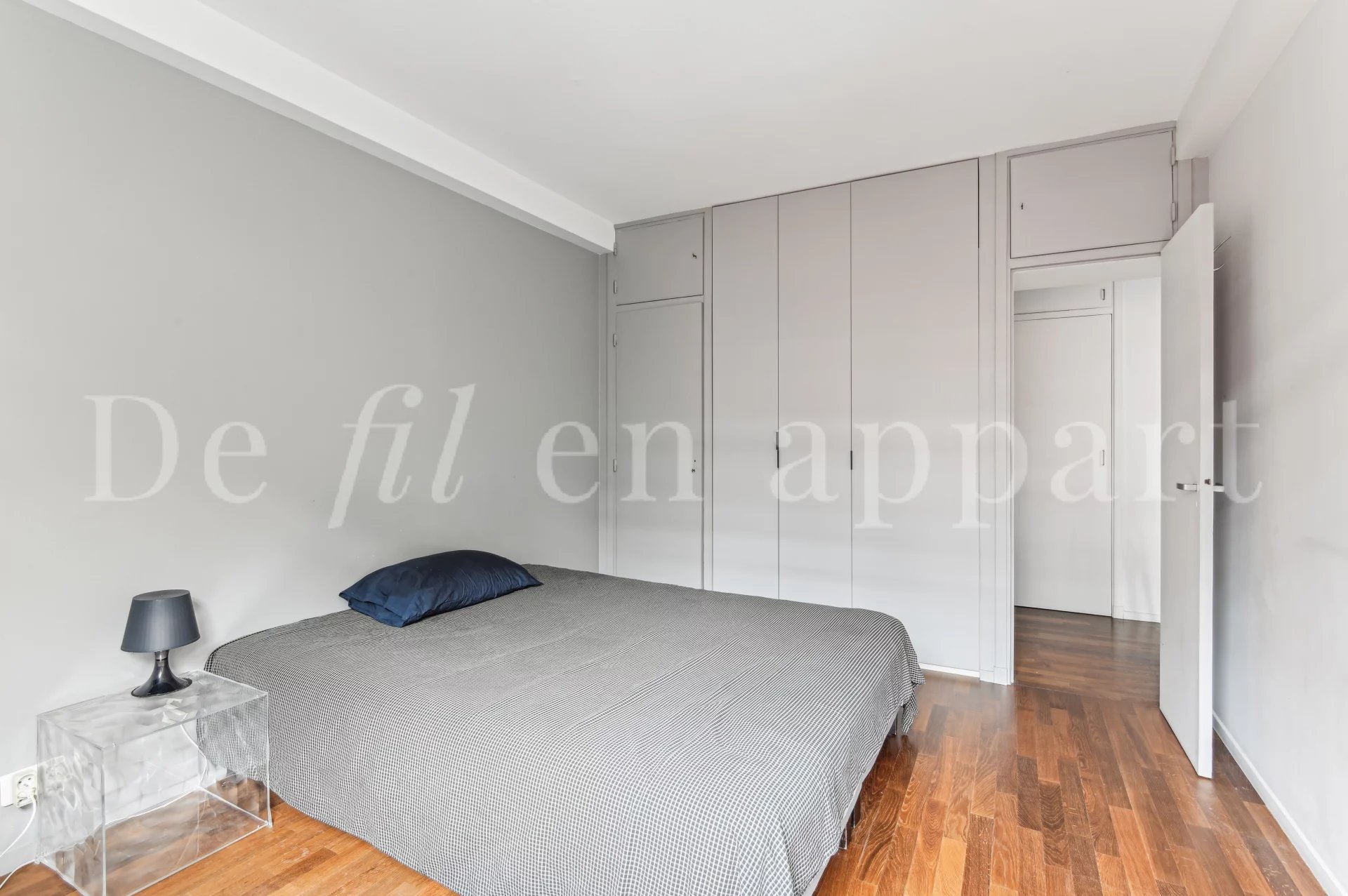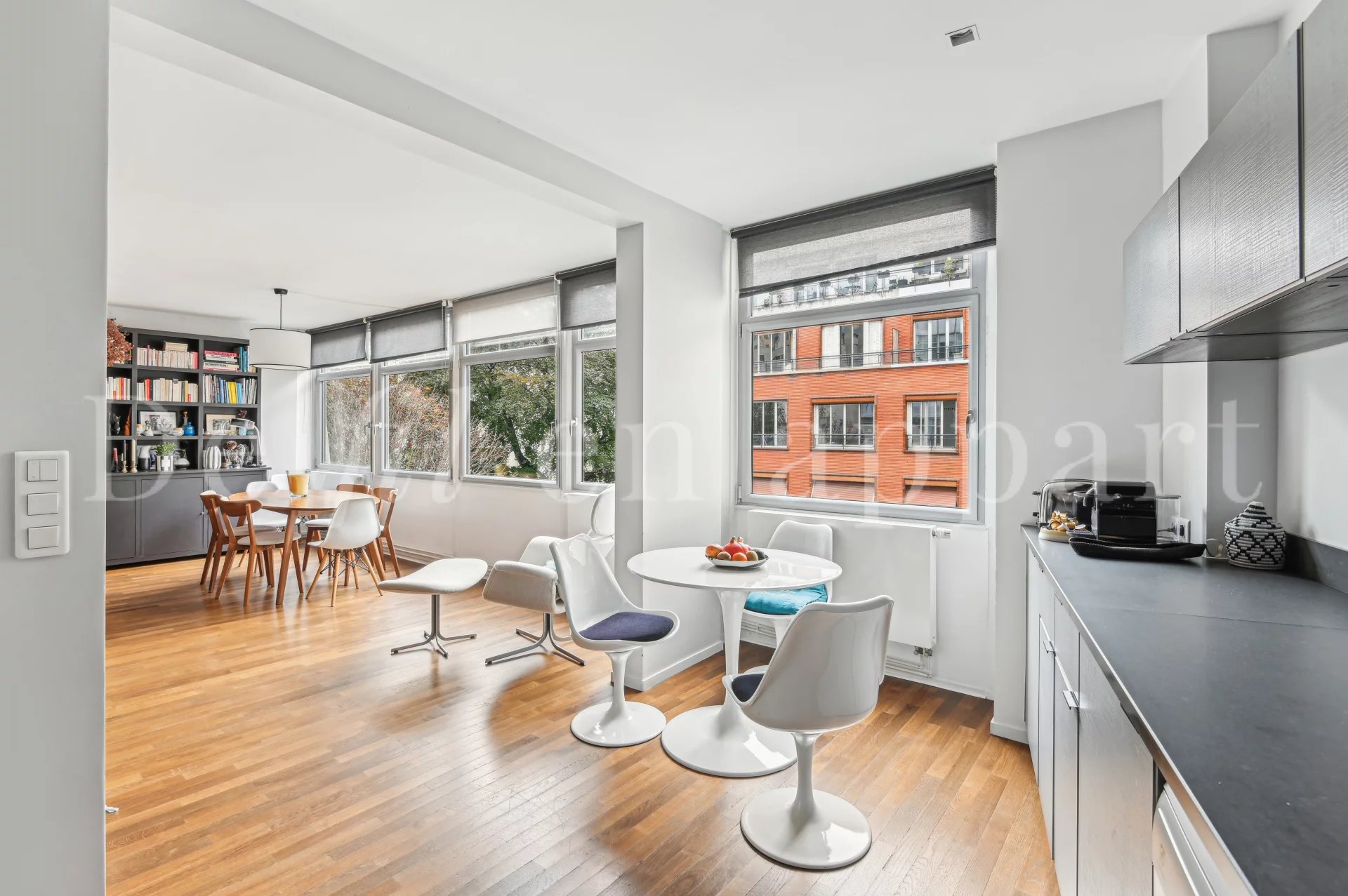 Dans une voie privée et au 3ème étage d'un immeuble d'architecte reconnu et construit en 1954, voici un appartement familial d'une superficie de 117,42 m2 Carrez comprenant : entrée, grand séjour, cuisine semi-ouverte, buanderie, 3 chambres dont un espace parental avec salle de bains et wc, salle de douche, toilettes séparées. Placards sur-mesure , beaucoup de rangement. Parquet, lumière. Appartement en bon état. Cave , local à vélos, parking de courtoisie. Immeuble sécurisé avec gardien. A proximité des écoles et commerces. Métro ligne 9 Muette / Ranelagh , RER C Boulainvilliers, bus