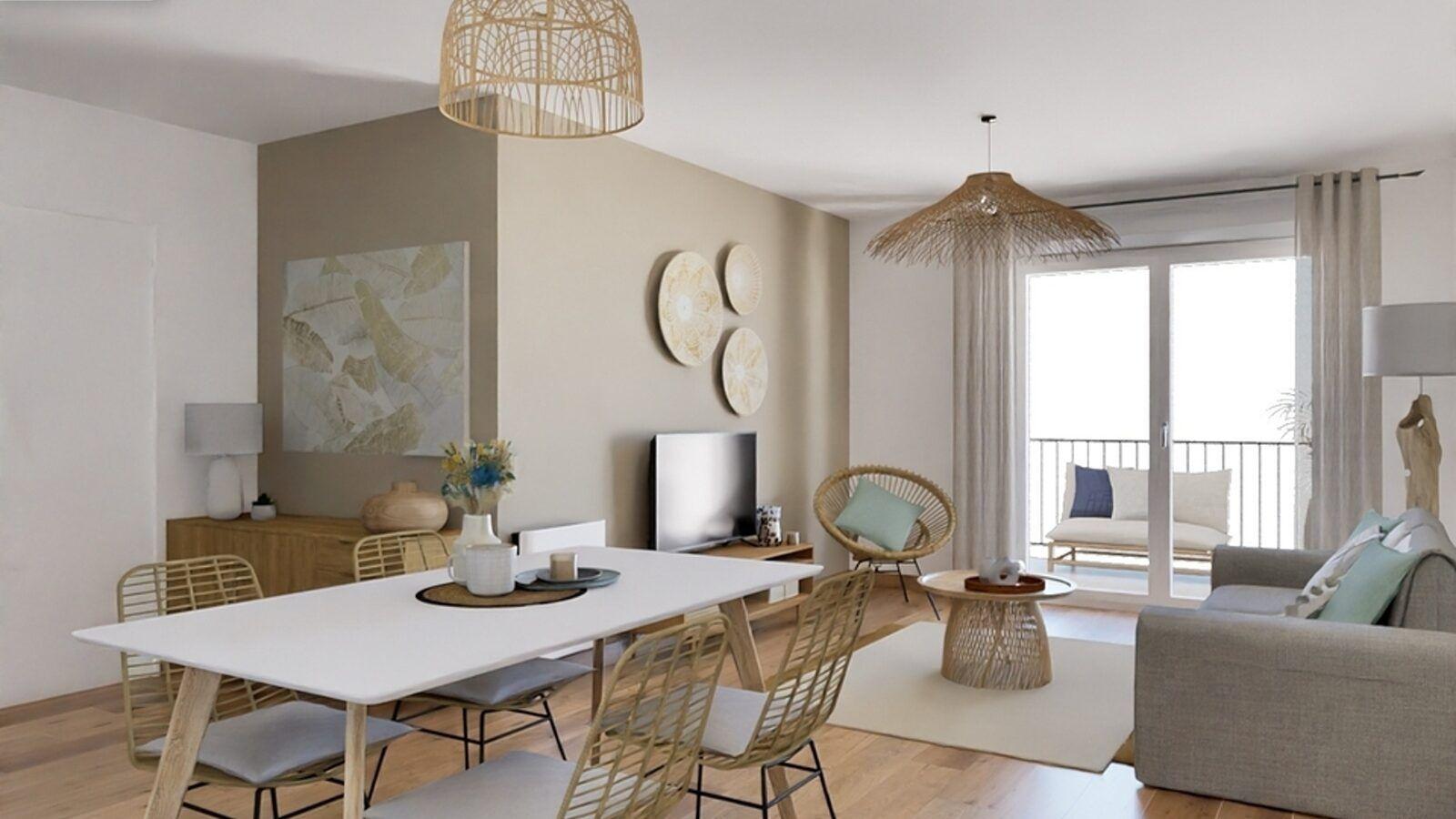 Appartement T3 de 60 m² comprenant un séjour-cuisine de 30 m² avec accès sur balcon. Deux chambres et une salle d'eau.