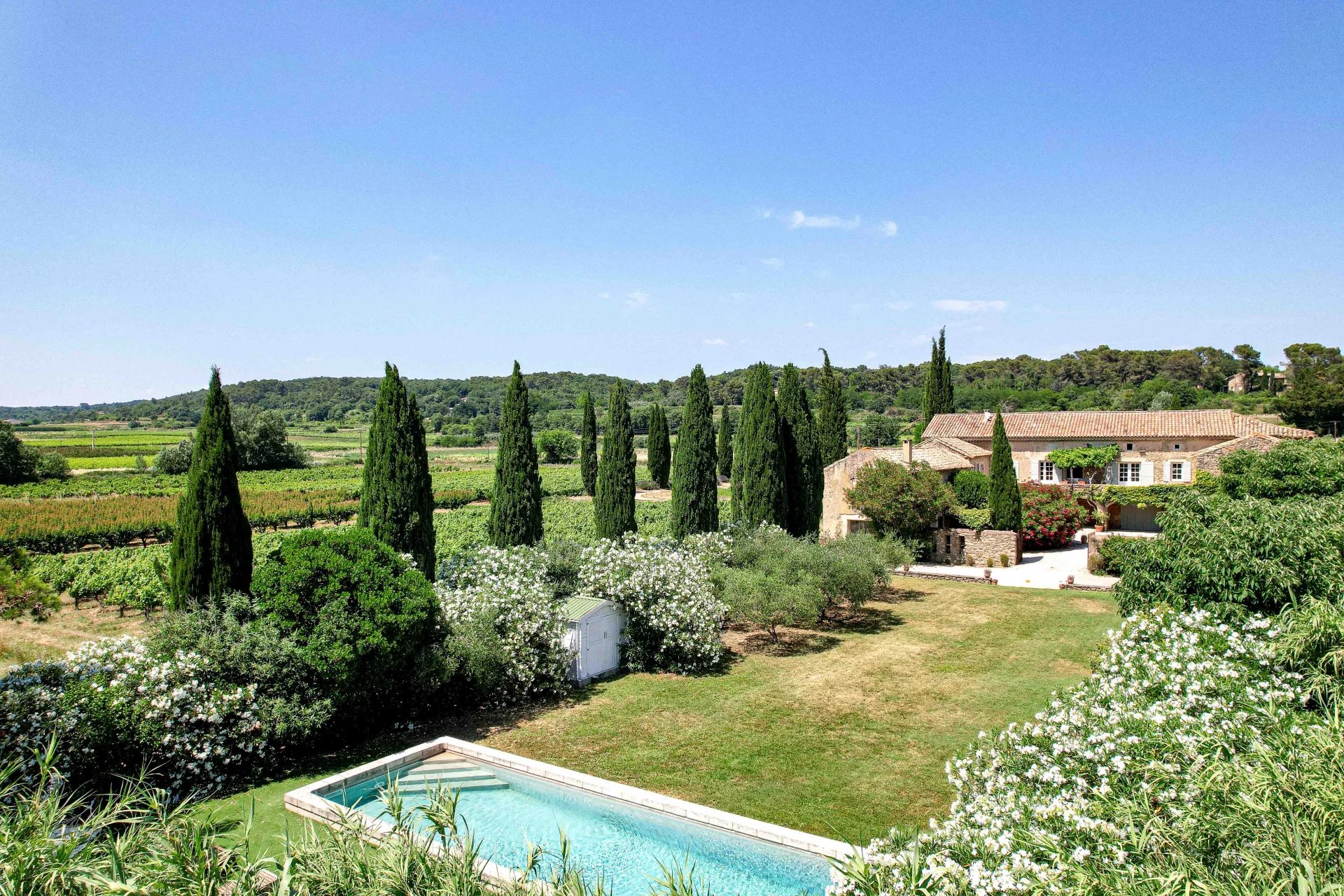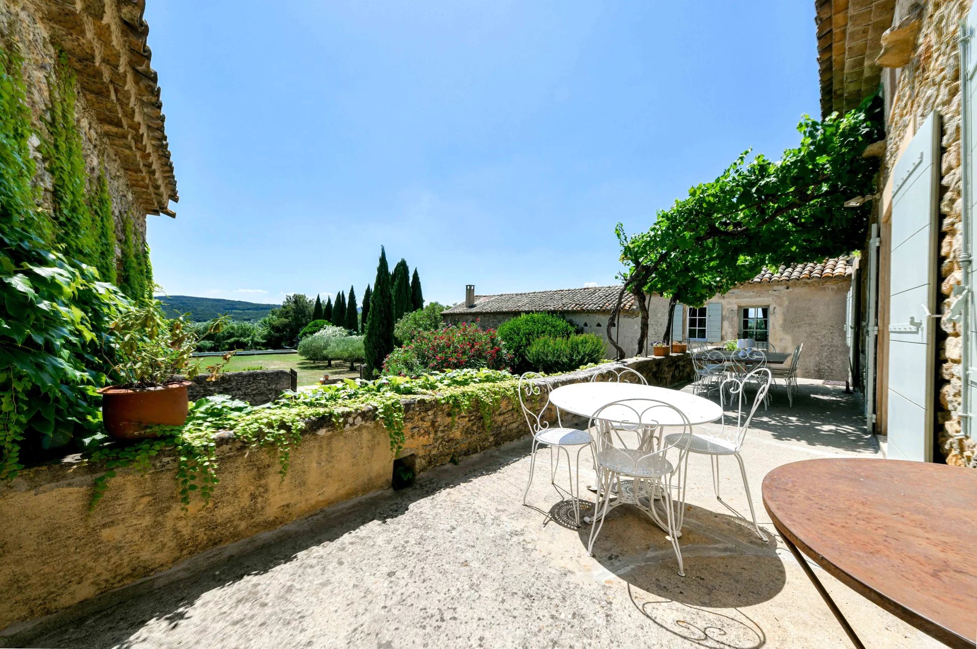 Ensemble de réception hors du commun offrant une vue panoramique 6 chambres, 5 salles de bains (dont 3 suites indépendantes) Maison d’invités, grange sur deux niveaux à rénover. Garage et caves Parc de 9.300 m² environ arboré, fleurie et paysagé. Cour centrale, terrasse et piscine