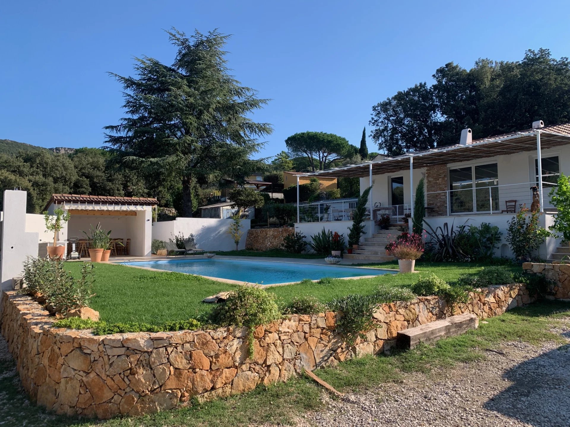 Ste Anastasie sur Issole, Villa de 115m² pas de travaux, restauration à neuf (sol, électricité, plomberie, cuisine et salles de douche). De très bon goût. Elle se compose d'un séjour de 45m² ouvert sur une cuisine de 10m². Baies à galandage. Trois chambres, deux salles d'eau, 3 wc, de nombreux placards. Terrasses en travertin de 80m². Piscine 10x5. La fosse septique sera réhabilitée par le vendeur avant la signature de l'acte authentique. Les + : -Vue dégagée -Position dominante -Etat impeccable -Surface de terrain idéale de 952m². -Superbe poêle à bois pour des soirées chaleureuses. -Fosse septique neuve Les informations sur les risques auxquels ce bien est exposé sont disponibles sur le site Géorisques : www.georisques.gouv.fr