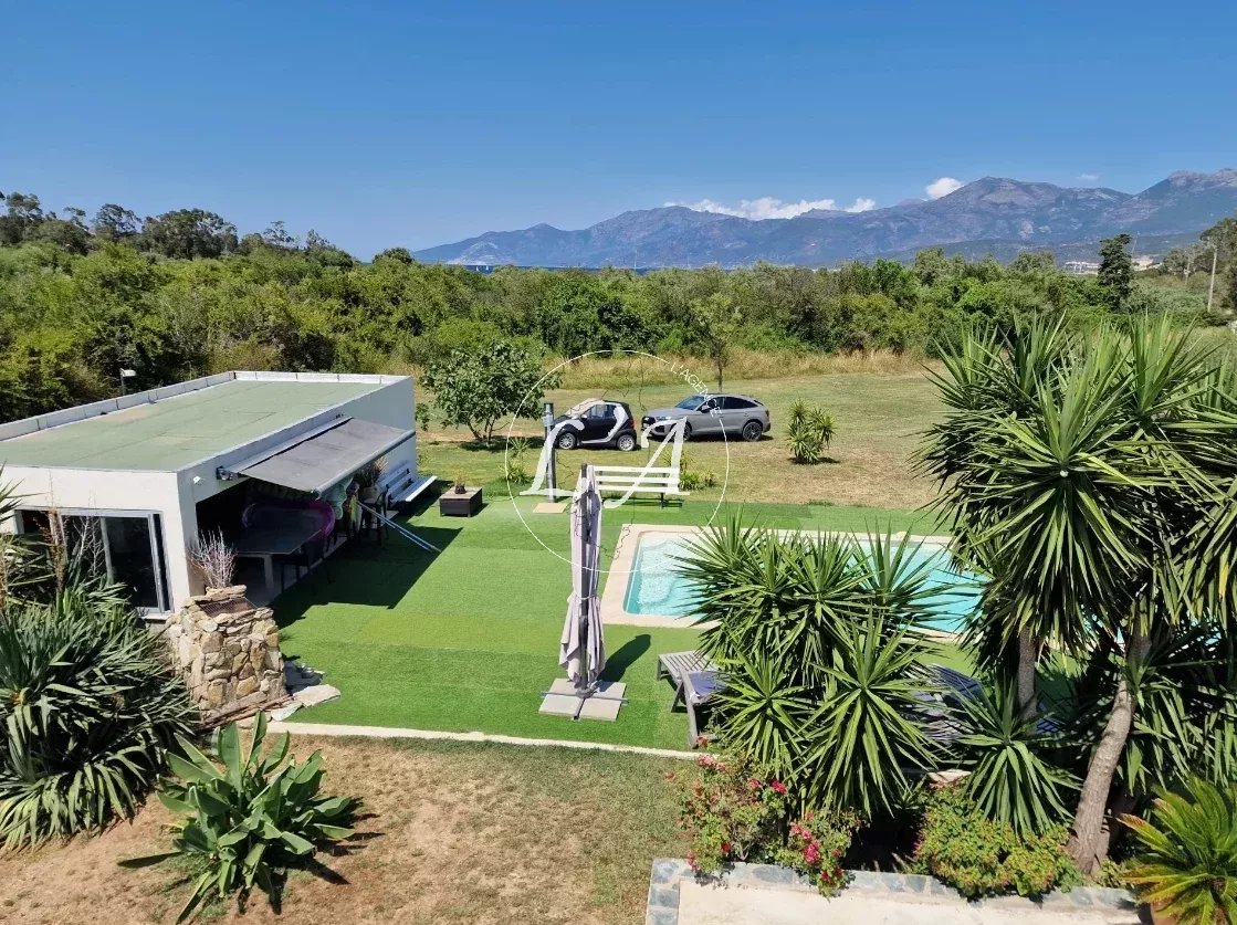 L’Agence Ajaccio-Pietrosella vous propose en exclusivité cette belle villa nichée dans un cadre naturel préservé, à seulement 5 minutes de la plage de la Roya et à proximité immédiate de Saint-Florent. Offrant une situation idéale alliant tranquillité et accès rapide aux commerces et au port, cette propriété est parfaite pour les amoureux de nature et de quiétude. Implantée sur un terrain plat de 2 300 m², cette villa d’environ 170 m² habitables séduit par son agencement fonctionnel et son atmosphère chaleureuse. Le séjour avec cheminée et la cuisine ouverte forment un espace de vie convivial, baigné de lumière. Côté nuit, la maison propose cinq chambres spacieuses, accompagnées de deux salles d’eau, une salle de bain et trois toilettes, garantissant confort et intimité pour toute la famille. L’extérieur est un véritable atout, avec un superbe pool house entièrement aménagé et une belle piscine, idéale pour se détendre en toute sérénité. Le terrain plat permet de profiter pleinement du cadre verdoyant et offre une grande capacité de stationnement avec un garage et un parking pouvant accueillir jusqu’à 10 véhicules. Située à seulement 10 minutes des commerces et du port de Saint-Florent, cette villa est une opportunité rare pour profiter d’un cadre de vie paisible tout en restant proche des commodités. L’Agence Ajaccio-Pietrosella, votre spécialiste de l’immobilier en Corse, vous accompagne dans la découverte de cette propriété. Contactez-nous dès aujourd’hui pour plus d’informations et une visite ! Les informations sur les risques auxquels ce bien est exposé sont disponibles sur le site Géorisques https://www.georisques.gouv.fr