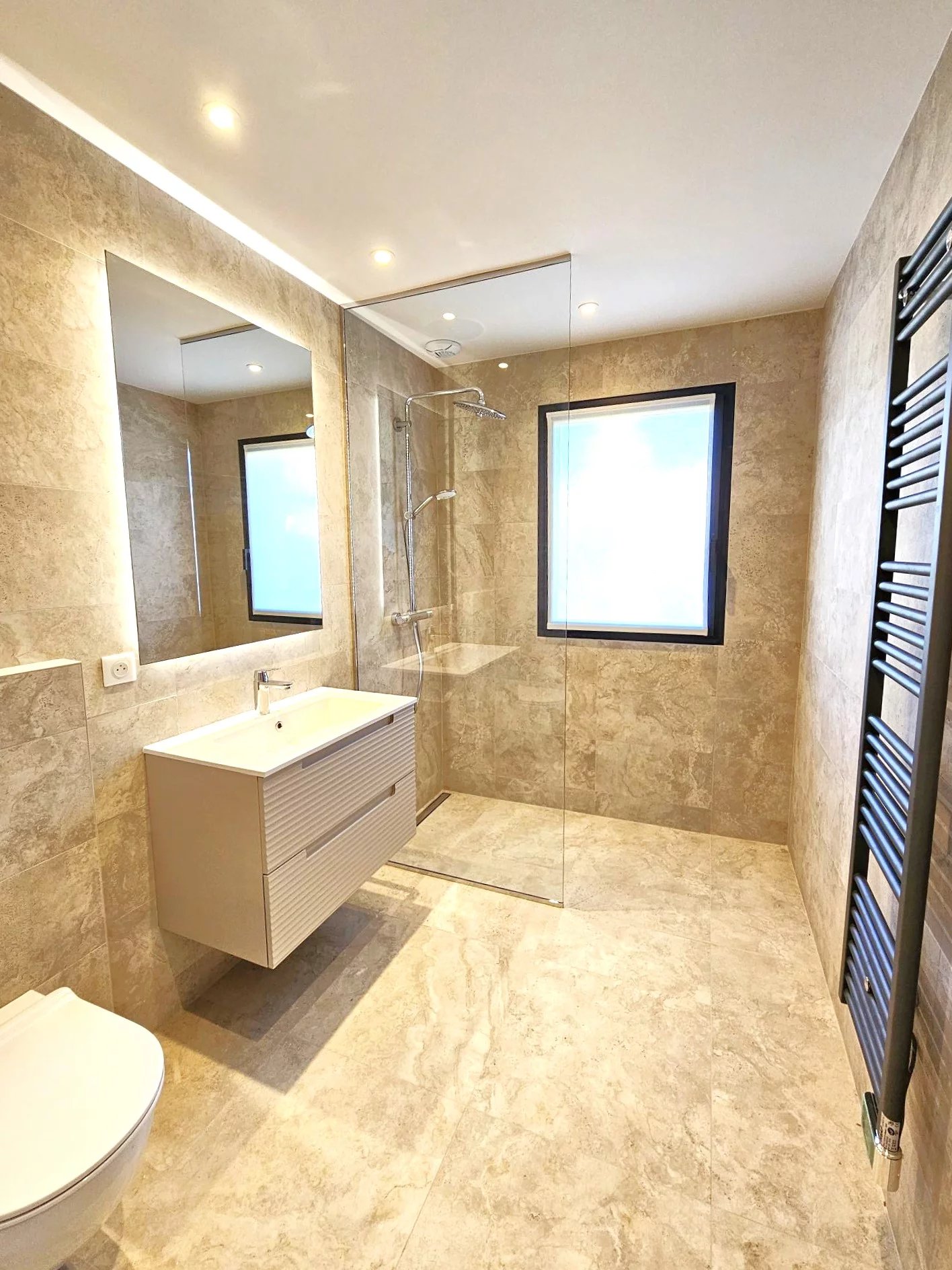 CAP d'ANTIBES - MAGNIFIQUE VILLA entièrement refaite à NEUF à vendre à 100 mètres de la mer ! Elle se compose d'un séjour avec sa cuisine US entièrement équipée de 36 m², d'une suite parentale de plain-pied & deux autres suite parentales avec un balcon à l'étage. Basé sur un beau terrain plat joliment arboré de 914 m² avec une piscine. Vaste sous-sol !