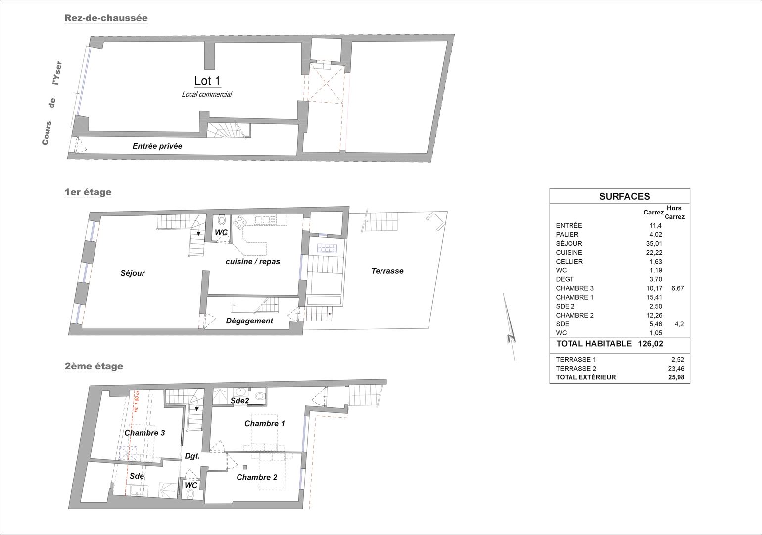 Bel appartement T4, de 126 m², remis à neuf, seul logement au dessus d'un local commercial au rez-de-chaussée. Il dispose, au niveau rue, d'une entrée privée, d'où un escalier permet d'accéder à un grand séjour lumineux, côté rue, largement ouvert sur une grande cuisine, donnant à l'arrière sur une grande terrasse de 26 m² sans vis à vis. du séjour, un escalier mène l'étage supérieur,, sous rampant, constitué de trois chambres, dont une avec salle d'eau privative et accès direct à la terrasse, d'une salle d'eau et d'un wc. Chauffage électrique, chauffe eau thermodynamique et pompe à chaleur. La cuisine sera équipée. Le secteur est bien pourvu en commerces, transports et établissements scolaires. Diagnostic du 28/03/2025 'C' Estimation des coûts annuels : entre 1 222 euros et 1 654 euros par an. Prix moyens des énergies indexées au sur les années 2021, 2022 et 2023. Taxe foncière 1900 euros. Honoraires à la charge du vendeur. Les informations sur les risques auxquels ce bien est exposé sont disponibles sur le site Géorisques : www.georisques.gouv.fr.