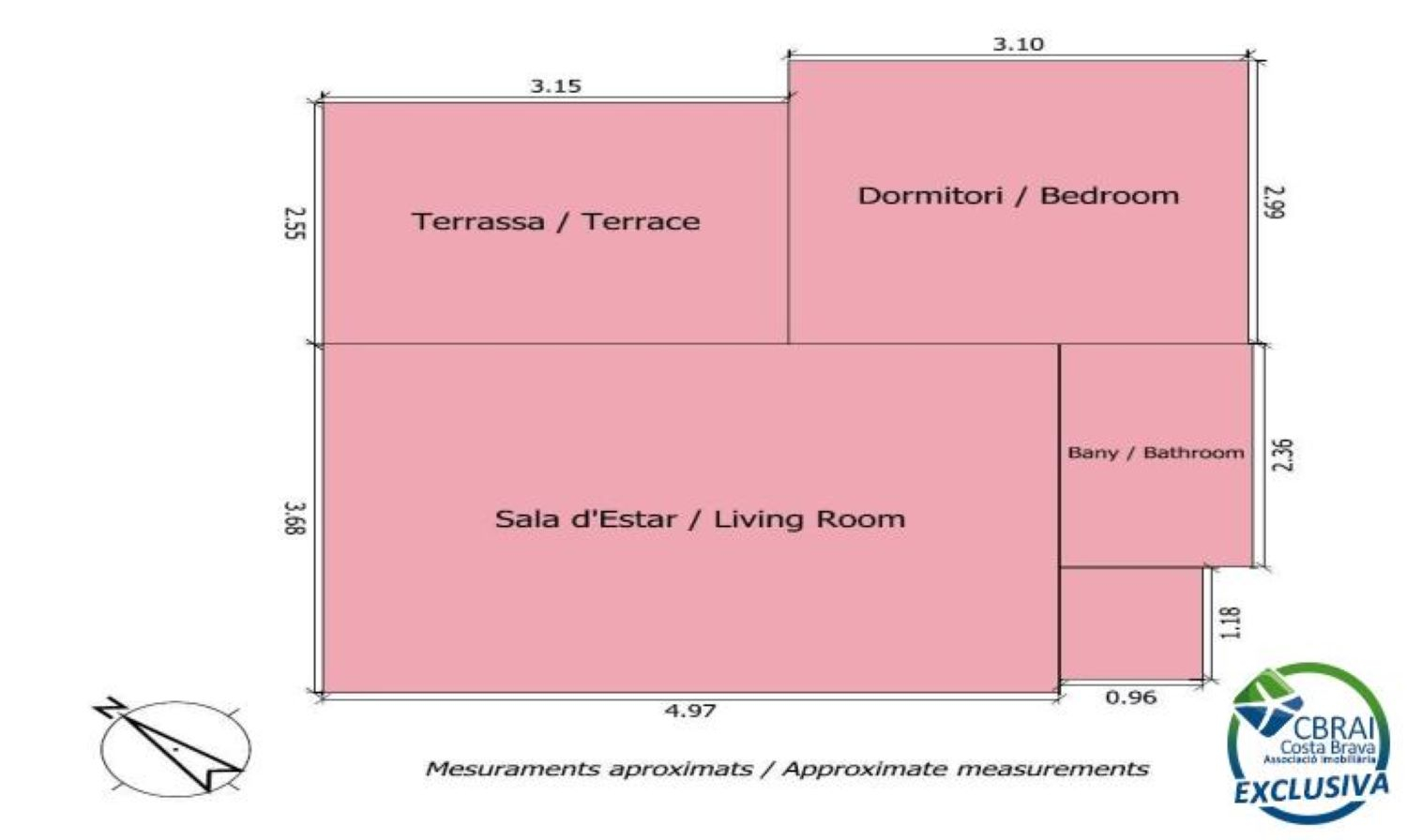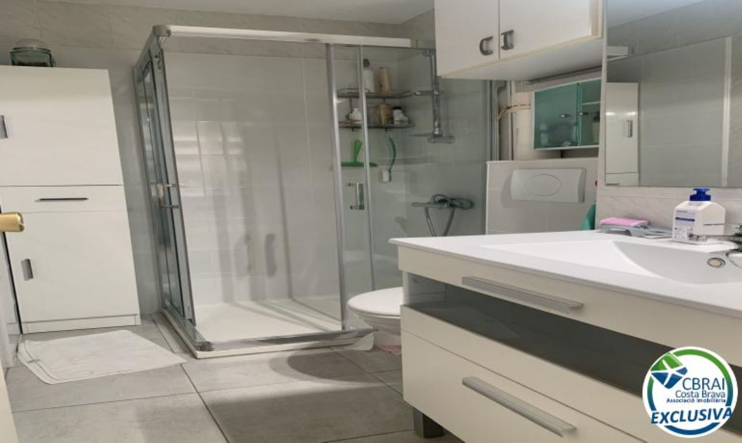 Ce bel appartement se compose d'un séjour/salle à manger avec une cuisine de type office et accès à une terrasse vitrée d'environ 10 mètres carrés avec vue dégagée, une chambre avec placards intégrés et une salle de bain avec douche. L'appartement a une superficie construite d'environ 54 mètres carrés avec une surface utile d'environ 49 mètres carrés. Son état de conservation est très bon, mais il peut être amélioré avec une réforme. Il a une porte d'entrée sécurisée. L'appartement est au deuxième étage de l'immeuble orienté nord-est, et est situé dans un quartier résidentiel calme de Santa Margarita, très proche des canaux navigables, à environ 1.700 mètres de la plage de sable et de la promenade maritime, et à environ 3.300 mètres du centre de la ville de Roses. Le bâtiment dispose d'un ascenseur et il y a des places de parking devant. L'appartement est idéal pour passer d'agréables vacances d'été, loin du bruit. Il existe la possibilité d'acheter un garage privé avec une surface utile de 24 m2 dans le même immeuble pour 48 000 euros.
