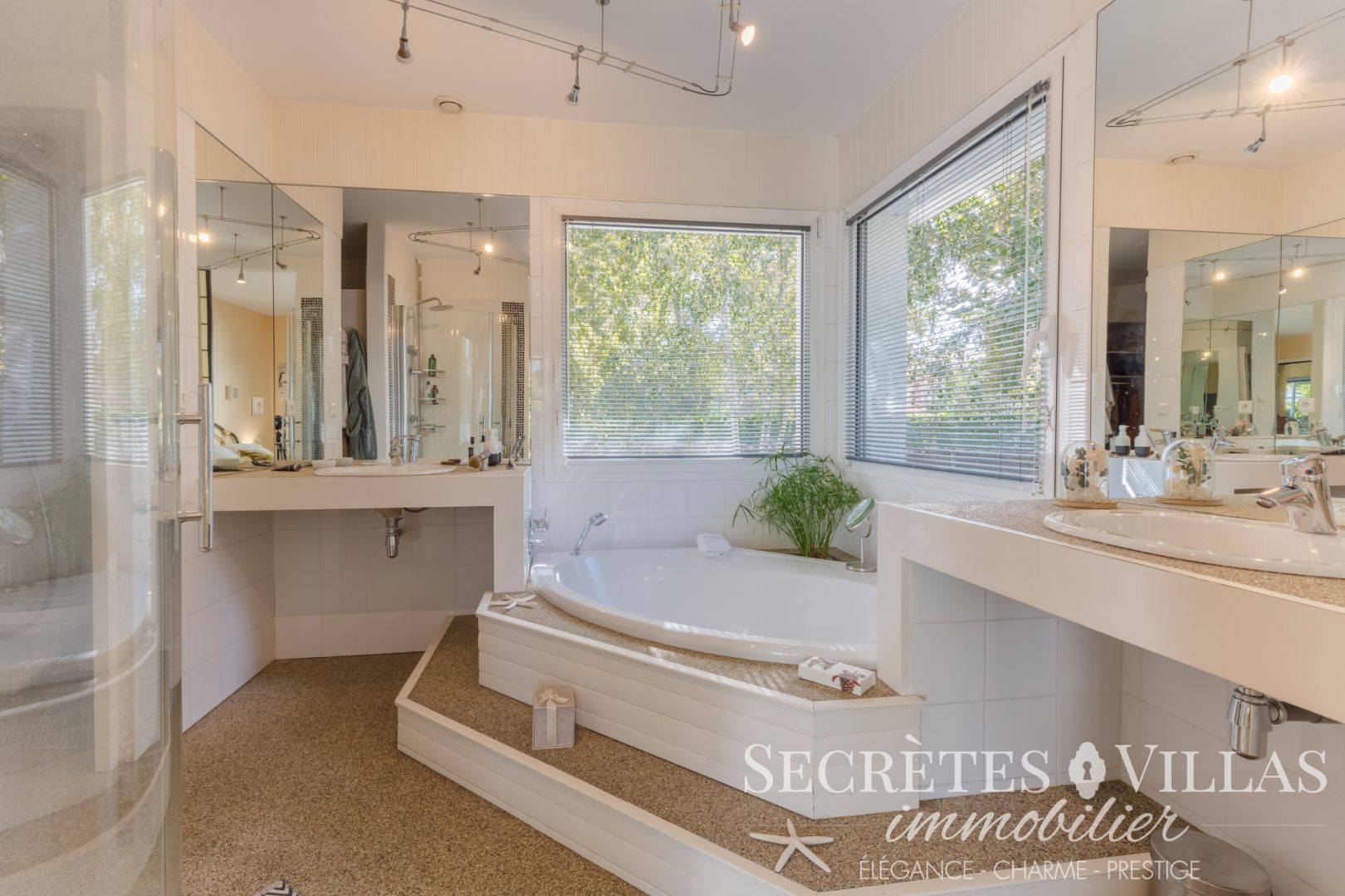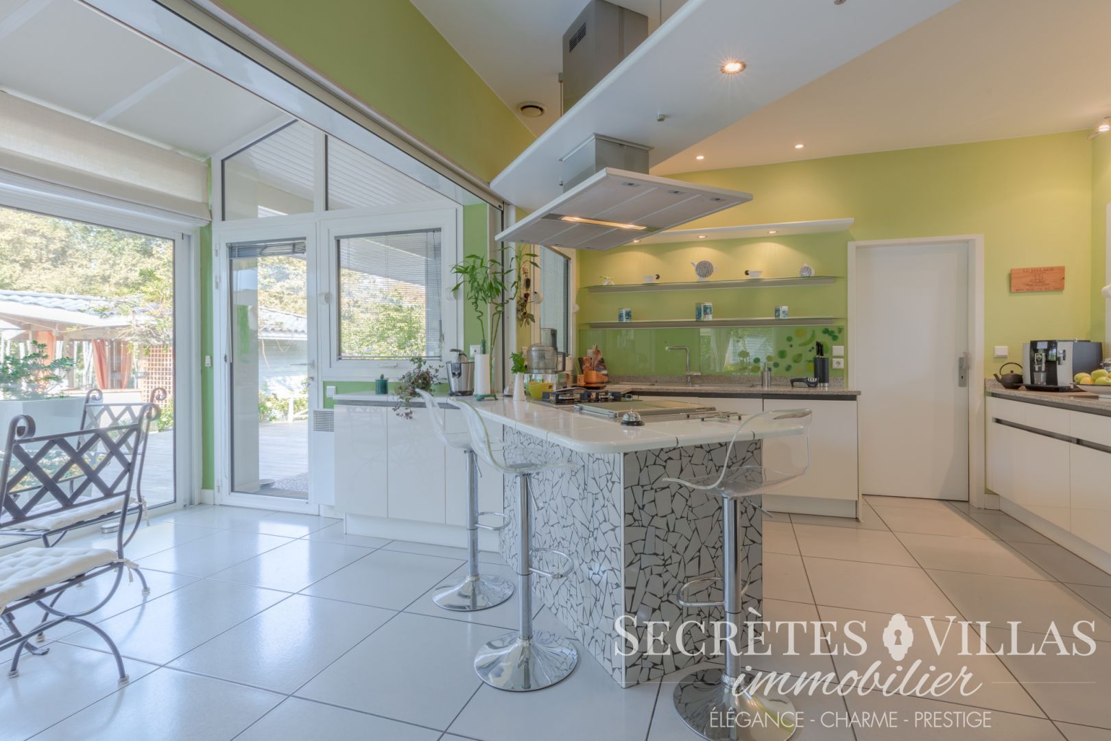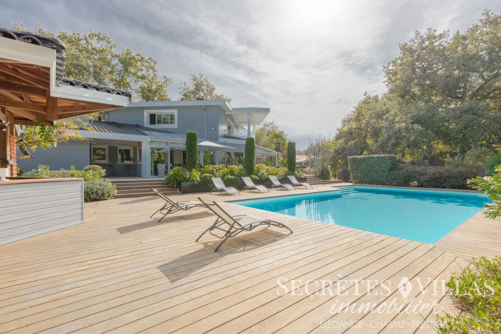 NOUVEAUTE! GRADIGNAN CANTELOUP, secteur très prisé, RAVISSANTE VILLA 251M2 ESPRIT VACANCES, BAIGNEE DE LUMIERE, NOYEE DANS LA VERDURE vous offrant au RDC: entrée placard et WC, MAGNIFIQUE PIECE DE VIE 85M2 grande hauteur plafond, double exposition et CHEMINEE CENTRALE. Cuisine équipée bel espace repas accès TERRASSE COUVERTE ET BARBECUE, cellier buanderie grands placards. Dégagement. Suite parentale: chambre, SDB/douche et WC indépendant, dressing équipé. 2 chambres, SDE. 4ème chambre et SDE attenante. Al'étage: SUPERBE ESPACE MEZZANINE 50M2, SDE et WC (possibilité 5ème chambre) accès 2 agréables terrasses abritées 90m2 vue jardin et piscine. CAVE 12M2. GARAGE DOUBLE carrelé et isolé. CARPORT. Parking nombreux véhicules. Le tout sur un superbe terrain clos et arboré 3409M2 avec terrasse en bois exotique 200M2 de 2022 sous garantie decennale, SPLENDIDE PISCINE 12X6, douche extérieure chauffée, charmante CUISINE D'ETE AMENAGEE, local technique. ENSEMBLE INTERIEUR ET EXTERIEUR SOIGNE ET ENTRETENU. PRESTATIONS DE QUALITE: construction parpaing bardage bois, huisseries Alu double vitrage, volets centralisés, chauffage au sol chaudière gaz, ballon thermodynamique 2024, parquets chêne massif, aspiration centralisée, fibre, alarme, arrosage automatique massifs, puit, portail et porte garage automatisé..ENVIRONNEMENT VERDOYANT. Proximité toutes commodités: Commerces, écoles maternelle et primaire à 3mn, collège et Lycée Gradignan à 5mn, .bus, TRAM gare Pessac à 10mn. 20MN gare Saint Jean et Bordeaux Centre. SA SITUATION, SON CADRE, SES VOLUMES, SA LUMINOSITE, SES PRESTATIONS FONT DE CETTE VILLA UN BIEN FORT RECHERCHE SUR LE SECTEUR!! Les informations sur les risques auxquels ce bien est exposé sont disponibles sur le site Géorisques. (5.00 % honoraires TTC à la charge de l'acquéreur.)