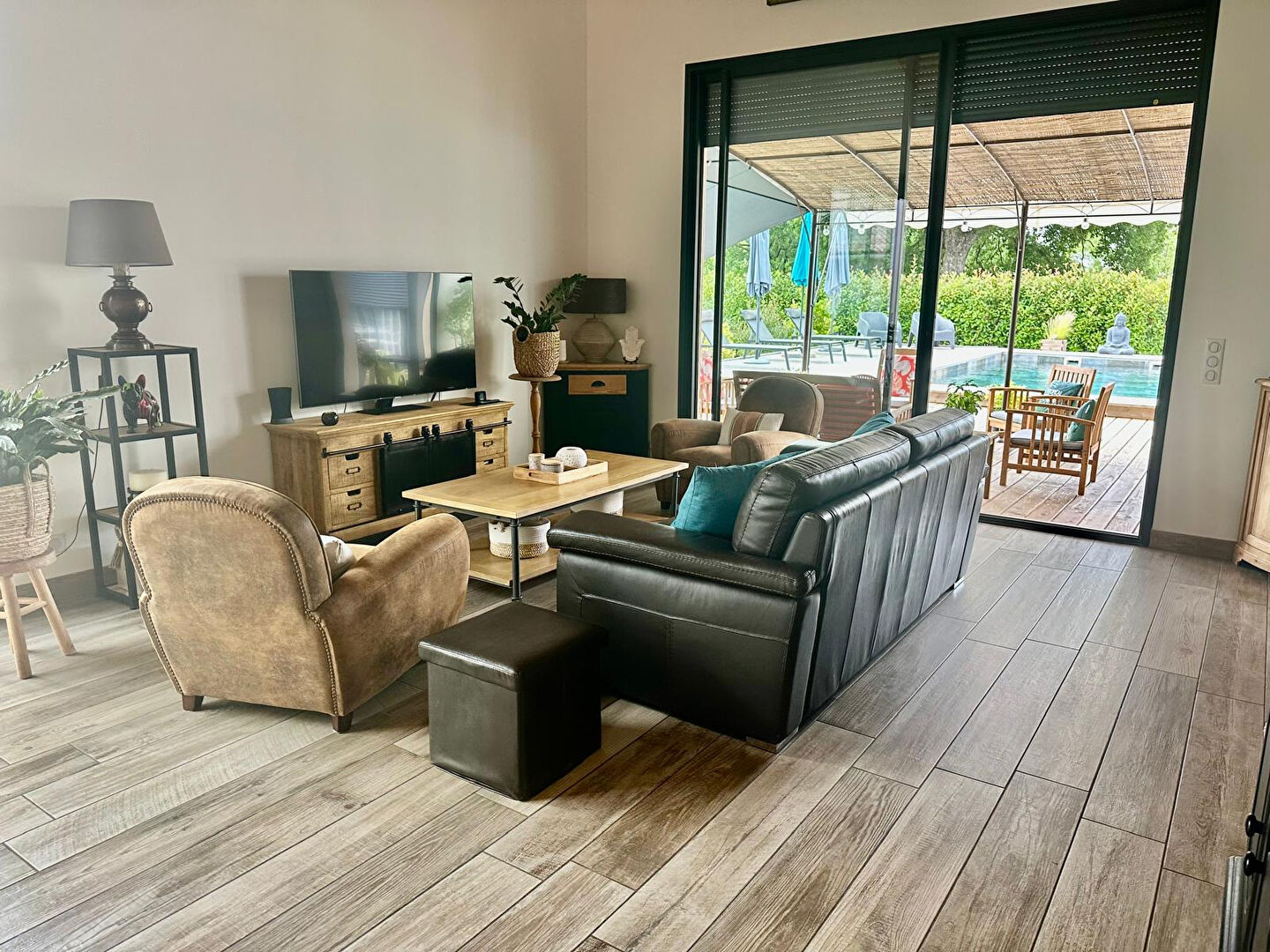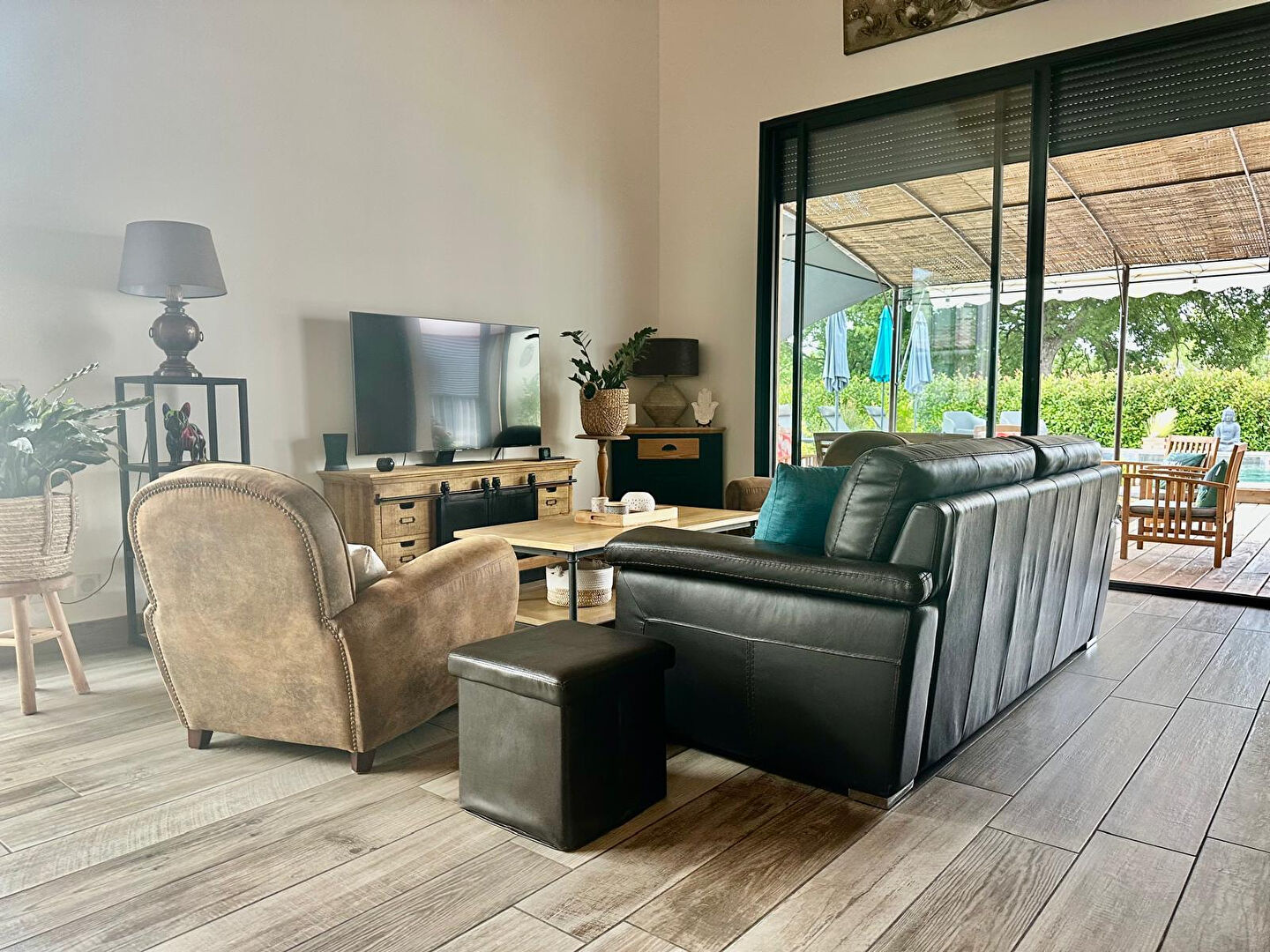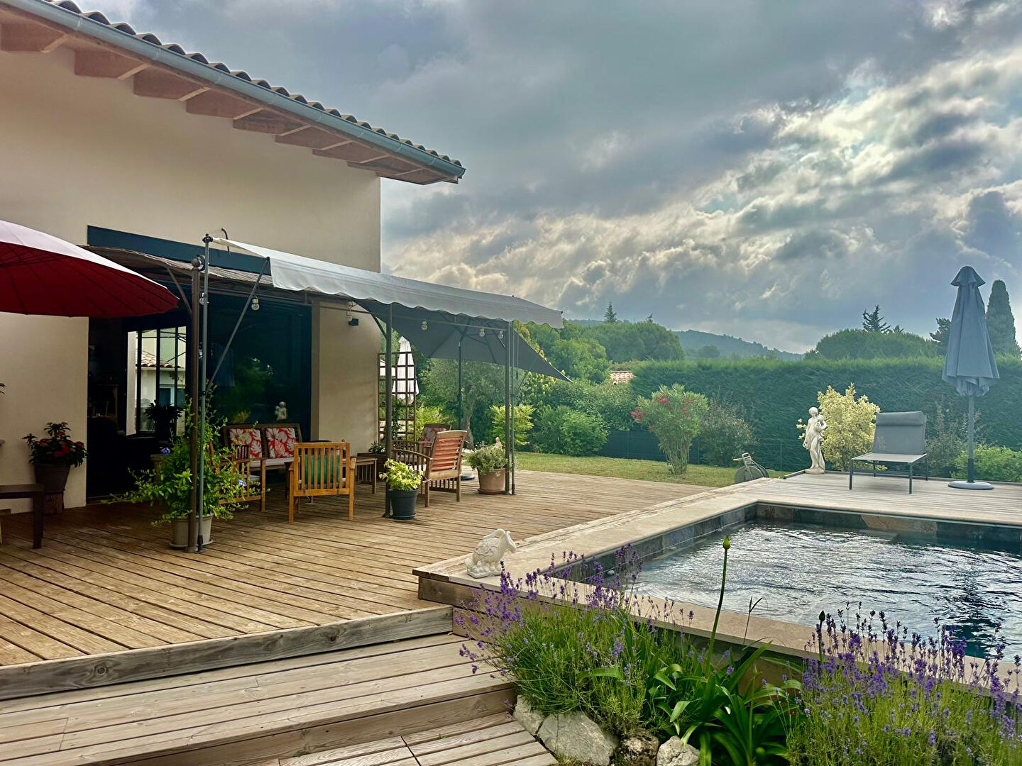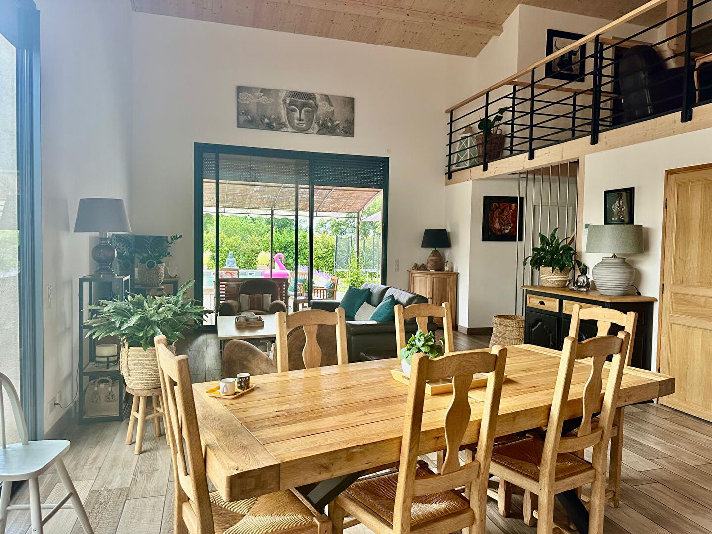 Votre agence FELIZ IMMO 4 % vous propose à la vente cette superbe maison de 151 m² avec studio indépendant et piscine à Saint-Cézaire-sur-Siagne Située dans un cadre paisible et verdoyant, cette magnifique maison de 151 m² allie confort, élégance et fonctionnalité. Parfaitement pensée pour une vie de famille, elle offre de beaux volumes, une luminosité exceptionnelle et des prestations de qualité. Des espaces optimisés pour un confort absolu : ? Rez-de-chaussée : ?Un séjour lumineux avec une belle hauteur sous plafond, ?Une cuisine ouverte, idéale pour partager des moments conviviaux, ?Une buanderie pratique et fonctionnelle, ?Un espace parental dédié, comprenant une chambre spacieuse, un dressing et une salle d'eau privative. ? A l'étage : ?Deux grandes chambres, ?Une salle d'eau, ?Une vaste mezzanine, parfaite pour un bureau, un espace détente ou une salle de jeux. Un extérieur soigné et des possibilités d'aménagement : ? Jardin clos et arboré, offrant un cadre de vie privilégié, ? Belle piscine, pour profiter pleinement des beaux jours, ? Studio attenant totalement indépendant, idéal pour un logement d'appoint ou du locatif, ? Garage spacieux, avec potentiel d'aménagement en appartement selon vos besoins. Un bien rare sur le secteur, alliant charme et fonctionnalité. Située à proximité des commodités et des écoles, cette maison est une opportunité à ne pas manquer !