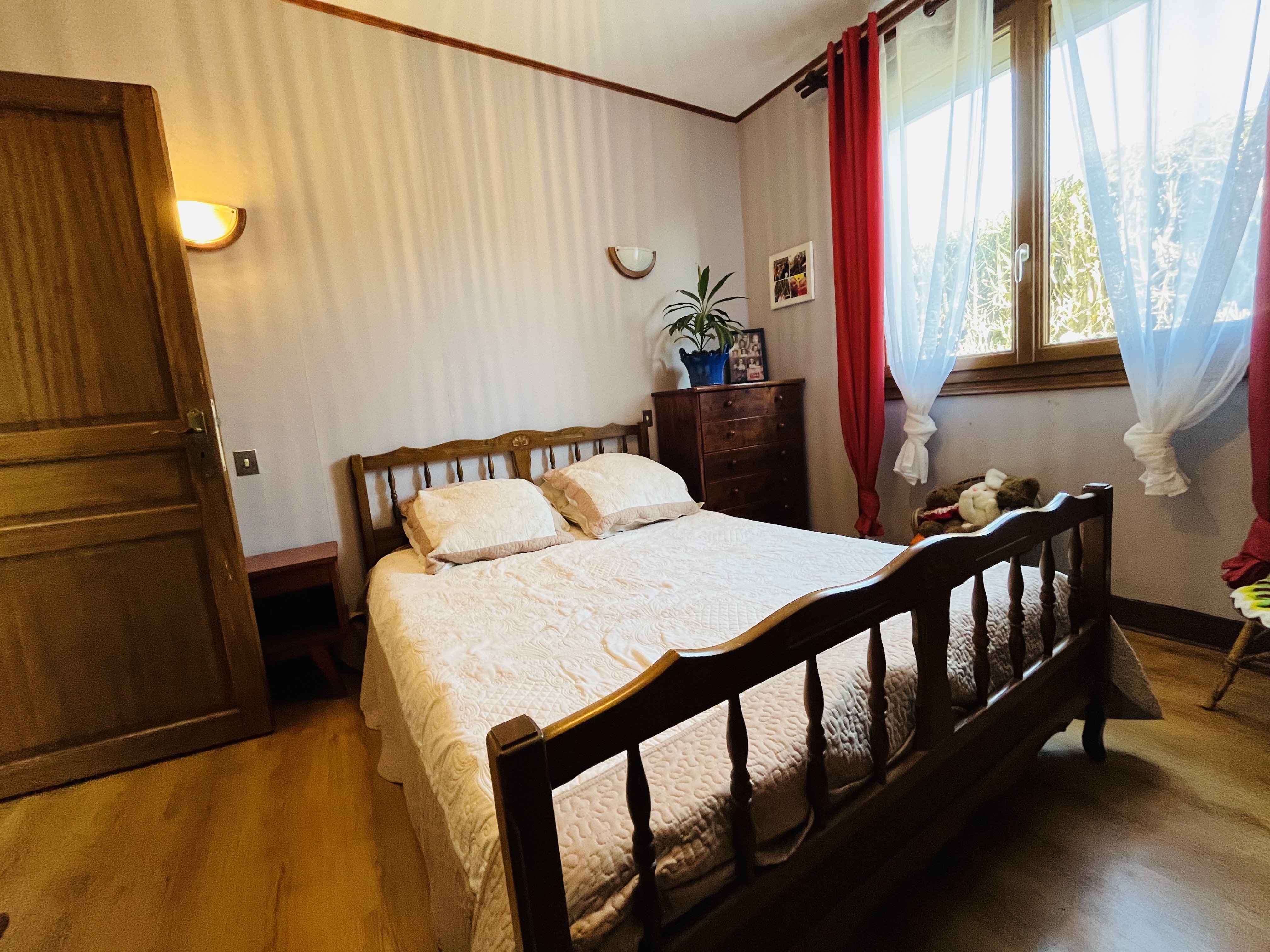 entrée, séjour-salon (33 m²) avec cheminée insert bois, 3 chambres (9-11 m²), cuisine aménagée équipée (9 m²), salle de bain, wc, buanderie. Grand grenier isolé.