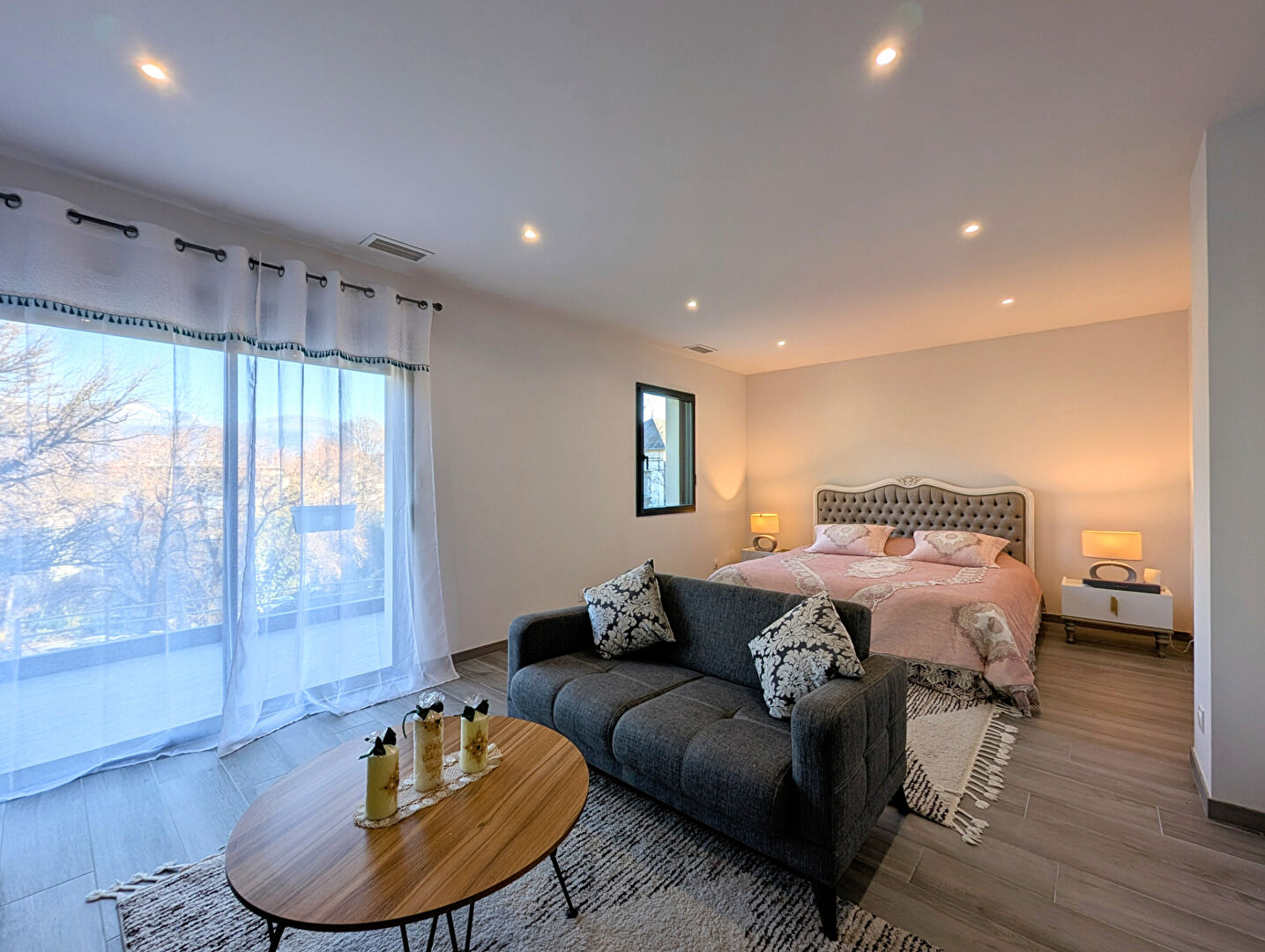 Villa d'exception à deux pas du centre-ville de Chambéry Située sur la colline de Montjay, cette somptueuse villa de 360m² habitables (plus de 450 m² au sol) est nichée sur un terrain de 3200 m². Son emplacement privilégié et ses prestations haut de gamme en font un bien rare à la vente. Espaces de vie lumineux et spacieux La pièce de vie principale, d'une superficie généreuse de plus de 80 m², est baignée de lumière grâce à ses larges baies vitrées. Elle s'ouvre sur une cuisine parfaitement équipée et donne accès directement à une terrasse avec piscine, idéale pour des moments de détente en toute quiétude. L'espace nuit se compose de cinq chambres, dont trois suites parentales avec salles d'eau privatives, ainsi que quatre WC et des dressings spacieux. Prestations complémentaires Le sous-sol abrite un espace bien-être avec hammam, ainsi qu'une pièce secondaire comprenant une cuisine et un salon, parfait pour recevoir ou créer un espace indépendant. Cadre exceptionnel Située dans un environnement calme et résidentiel, cette villa offre des prestations de standing pour un confort de vie optimal. Proche du centre-ville et bénéficiant d'un beau panorama, elle constitue une opportunité rare à deux pas du centre ville. François Picollier (EI) Agent Commercial - Numéro RSAC : 841 755 416 - Chambery.