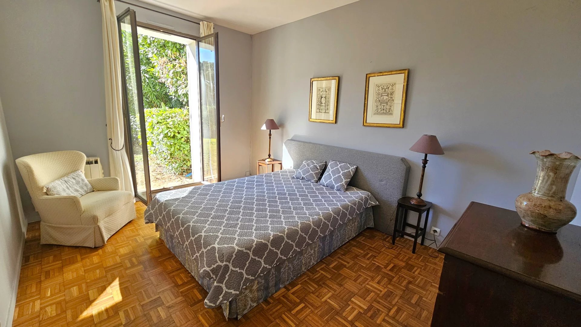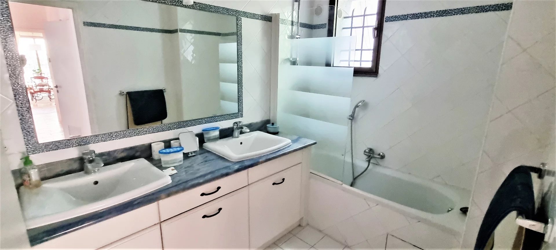 Exclusivité. Retour à la vente. Au sein du prestigieux domaine privé des Hauts de Vaugrenier, idéalement situé entre Cannes et Nice (accès autoroutes en moins de 5 minutes), à proximité des plages et de toutes commodités. Au calme, sans vis-à-vis, cette spacieuse villa de 157 m² habitables sur deux niveaux, dispose de 4 chambres (possibilité 5ème) et d'un beau jardin (parcelle 640 m²) avec piscine. Elle bénéficie d'une vue dégagée et d'une double exposition (Sud et Ouest), la rendant agréable à vivre à tous les moments de la journée. Entrée, séjour d'angle/salle à manger lumineuse ouvrant sur une grande terrasse couverte avec barbecue. Cuisine semi-ouverte avec buanderie attenante. Un couloir distribue deux chambres de plain pied bénéficiant d'une salle de douche attenante et d'un WC indépendant. Dressing et placards offrent de nombreuses possibilités de rangement. A l'étage : deux grandes chambres de 18 m² (possibilité création d'une 5ème chambre) disposant d'une salle de bains et d'un WC indépendant. Nombreux rangements. Dressing aménagé. Climatisation réversible. Stores électriques. Ce bien s'accompagne d'un garage et d'une cave. Le domaine privé et sécurisé des Hauts de Vaugrenier, idéalement situé entre Cannes et Nice (accès autoroutes en moins de 5 minutes), à proximité des plages et de toutes commodités s'étend sur 130 hectares de parcs arborés (3 lacs artificiels, sentiers pédestres, parcours de santé) sur lesquels se répartissent 11 hameaux. Vous y trouverez un restaurant Club House, des courts de tennis, deux terrains de paddle, une zone de détente, une piscine Olympique, une place de commerces et une école maternelle. Résidence sécurisée par des gardiens 7/7, 24/24. Bien soumis au statut de la copropriété. Charges générales annuelles courantes : 4.475 €. Nombre de lots du hameau : 58. Aucune procédure. Honoraires de 5% à la charge de l'acquéreur inclus dans le prix. Les informations sur les risques auxquels ce bien est exposé sont disponibles sur le site Géorisques : georiques.gouv.fr