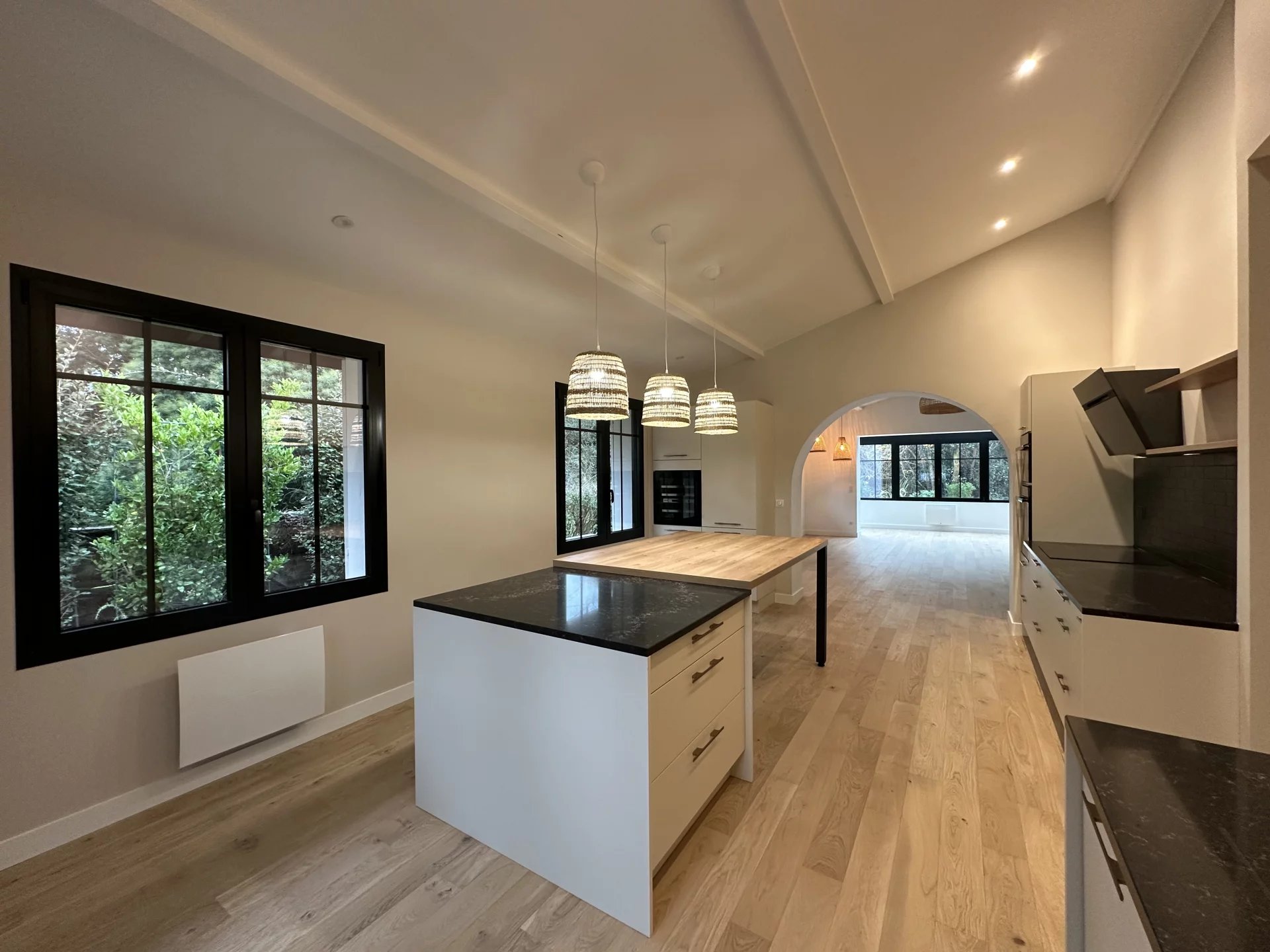Nichée au cœur d'un quartier paisible de La Teste, à deux pas du golf d'Arcachon et du marché local, cette magnifique maison basque de 134 m² offre un cadre de vie exceptionnel. Entièrement rénovée avec des matériaux haut de gamme, elle allie confort et raffinement. La vaste pièce de vie de 69 m², baignée de lumière, s'ouvre sur une véranda et un jardin paysagé avec piscine. Trois suites parentales et un bureau occupent également le même niveau de plain-pied. Ce bien d'exception profite d'un emplacement très recherché près des commerces et des plages du Pyla. Les informations sur les risques auxquels ce bien est exposé sont disponibles sur le site https://errial.georisques.gouv.fr/#/