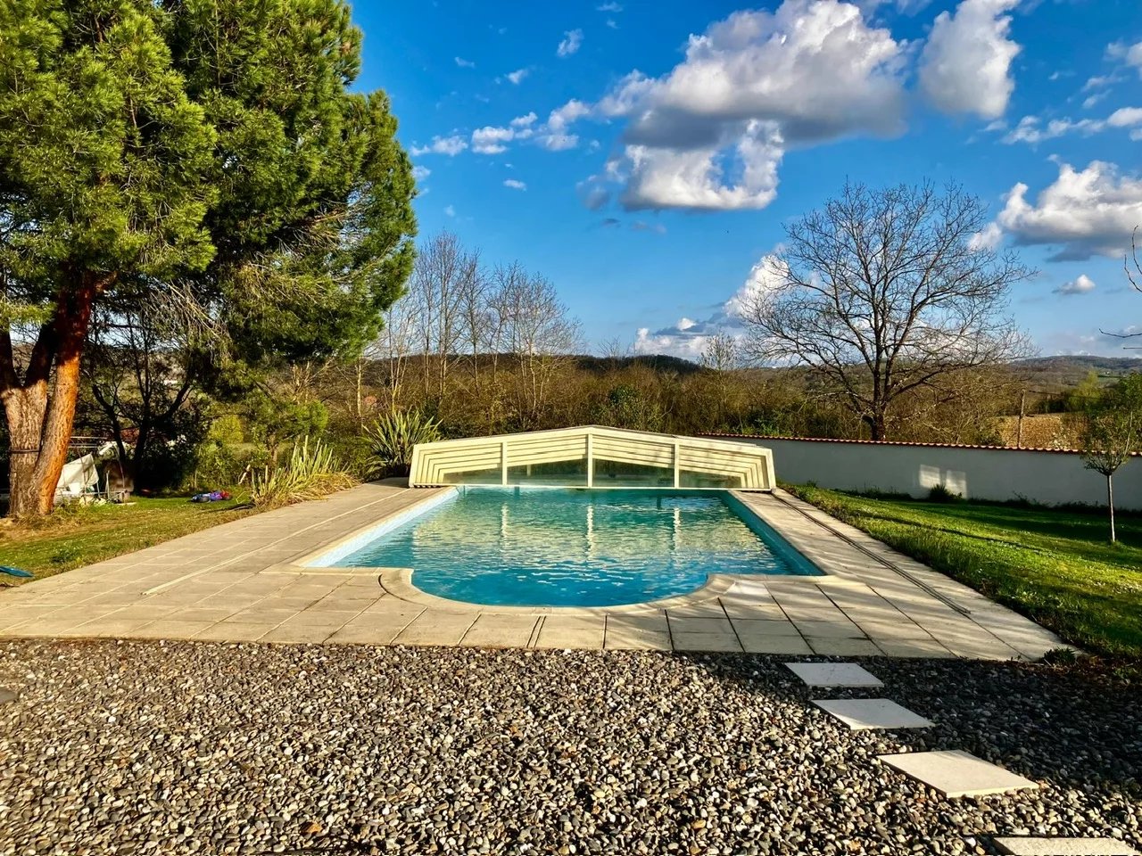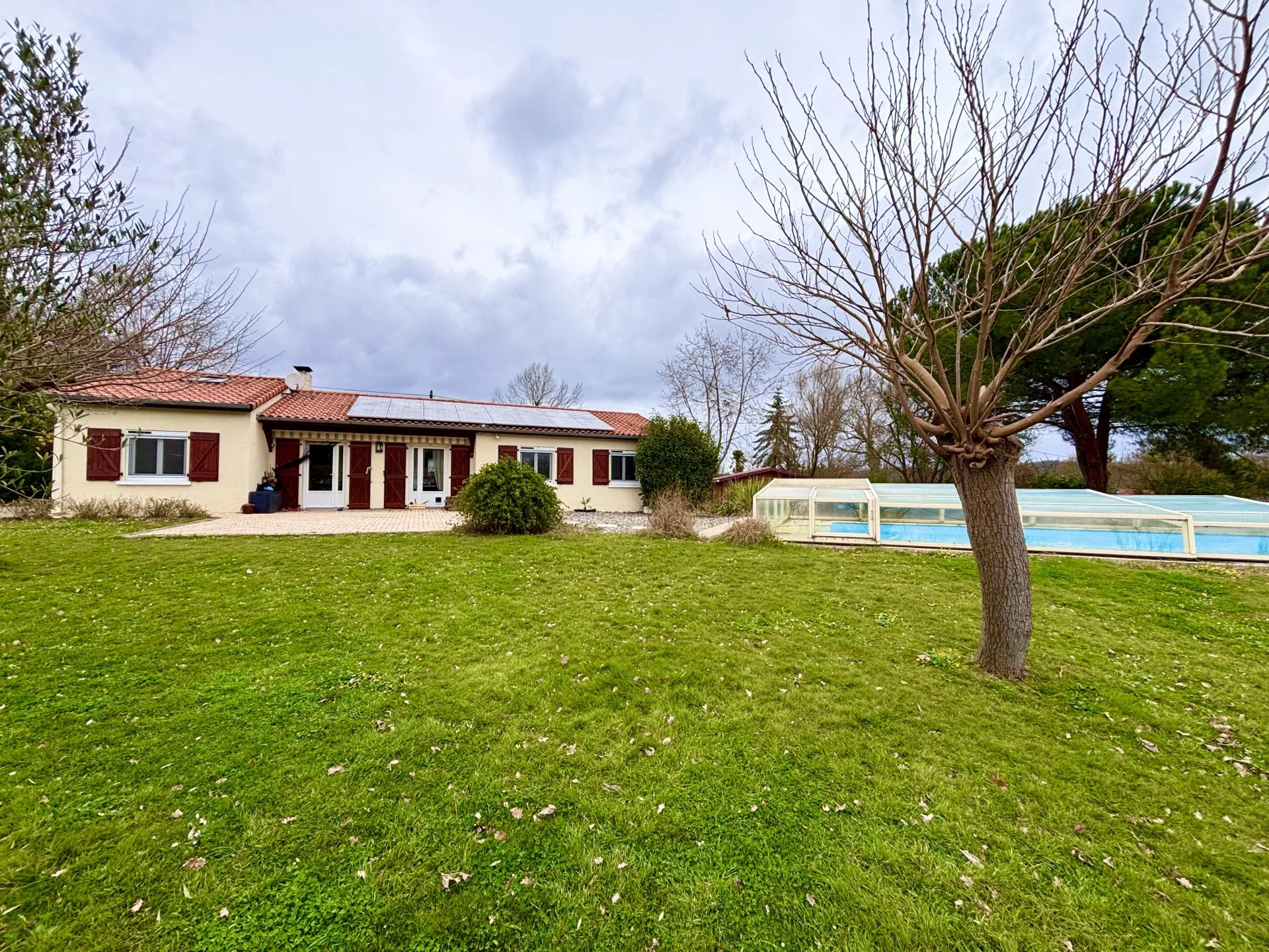 Exclusivité à Artigat, maison de plain pied d'environ 125m² habitable entièrement rénovée avec goût, entourée d'un terrain joliment arboré de plus de 2400m² avec vue dégagée sur les Pyrénées. Cette villa dispose de 3 chambres, d'un dressing doublé d'un bureau qui peut être transformé en chambre, d'une salle de bain, d'une quatrième chambre avec sa salle d'eau, d'une pompe à chaleur, d'un poêle à bois et d'une centrale photovoltaique pour une auto consommation. Vous serez charmé par l'extérieur qui dispose d'une belle terrasse, d'une piscine, d'un grand garage de plus de 70 m², d'une dépendance, d'un poulailler, d'un potager, d'arbres fruitiers et d'une vue magnifique sur les Pyrénées. N'attendez plus pour venir découvrir cette belle opportunité! Honoraires à la charge du vendeur - Montant moyen de la quote-part de charges courantes 1,200 €/an - RCS 81931340400017