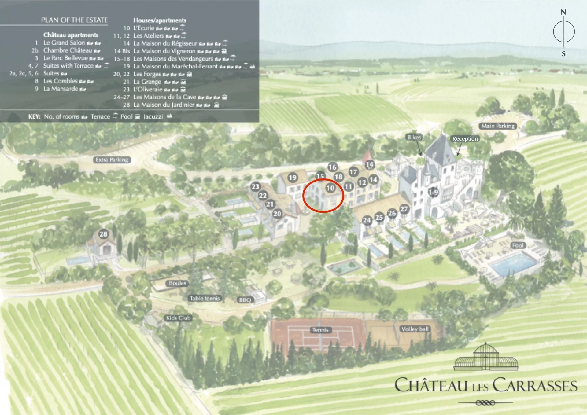 Une maison de vacances qui a du sens. Utilisez-le pour vos vacances, puis lorsque vous ne l'utilisez pas, nous le louerons pour vous et partagerons les revenus de location avec vous. Facile et sans souci. Le Château Les Carrasses est un domaine viticole du Languedoc du 19ème siècle, restauré et converti en résidence de villégiature luxueuse, avec des résidences indépendantes, un restaurant à la cuisine méditerranéenne et des prestations d’hôtel de luxe. Retrouvez le charme et l’authenticité d’un domaine du 19ème, entouré de vignes et offrant des vues spectaculaires ainsi que l’ambiance et le service d’un club privé de qualité dans une ambiance décontractée et chaleureuse. Le Restaurant du Château Les Carrasses est prêt à vous accueillir et vous faire profiter de sa cuisine inventive dans le respect des produis de saison. Nous proposons une cuisine méditerranéenne réinventée exclusivement basée sur des produits frais locaux ; entre l’iode et la terre, le chef aime se jouer des textures. Notre menu change fréquemment en fonction des meilleures opportunités du marché. Dîner chez vous : Pour ceux d’entre vous qui préfèrent se restaurer dans le confort de leur maison, il y a beaucoup d’autres options : Cette maison comprend une cuisine moderne entièrement équipée de tout le nécessaire pour cuisiner, y compris un barbecue Weber. Notre restaurant peut également vous livrer des repas frais jusqu’à chez vous. Un large choix vous sera proposé par notre Chef et sa brigade : nos légendaires packs bbq, pizzas, plats familiaux traditionnel, mais également une sélection de plats du menu Terrasse et de notre carte. Le domaine bénéficie d’une magnifique piscine à débordement (20m x 8m) un grand court de tennis en terre battue, boulodrome, espace barbecue. Bicyclettes pour vos promenades dans la campagne environnante. Joliment bordé de cyprès, notre court de tennis en terre battue taille-championnat peut être illuminé le soir. Dans la cour principale se trouve un magnifique jardin d’hiver, La Serre, qui selon la rumeur aurait été conçue par Gustave Eiffel. Aménagée de fauteuils confortables et d’une bibliothèque, c’est un lieu de détente idéal. La région Occitanie regorge de multiples activités et visites. Notre service de conciergerie est à votre disposition pour vous organiser vos itinéraires sur-mesure quels que soient vos centres d’intérêt : antiquités, balade à cheval, pilâtes, chasse à la truffe, Histoire, cuisine, marchés, production d’huile d’olive, conchyliculture, etc.