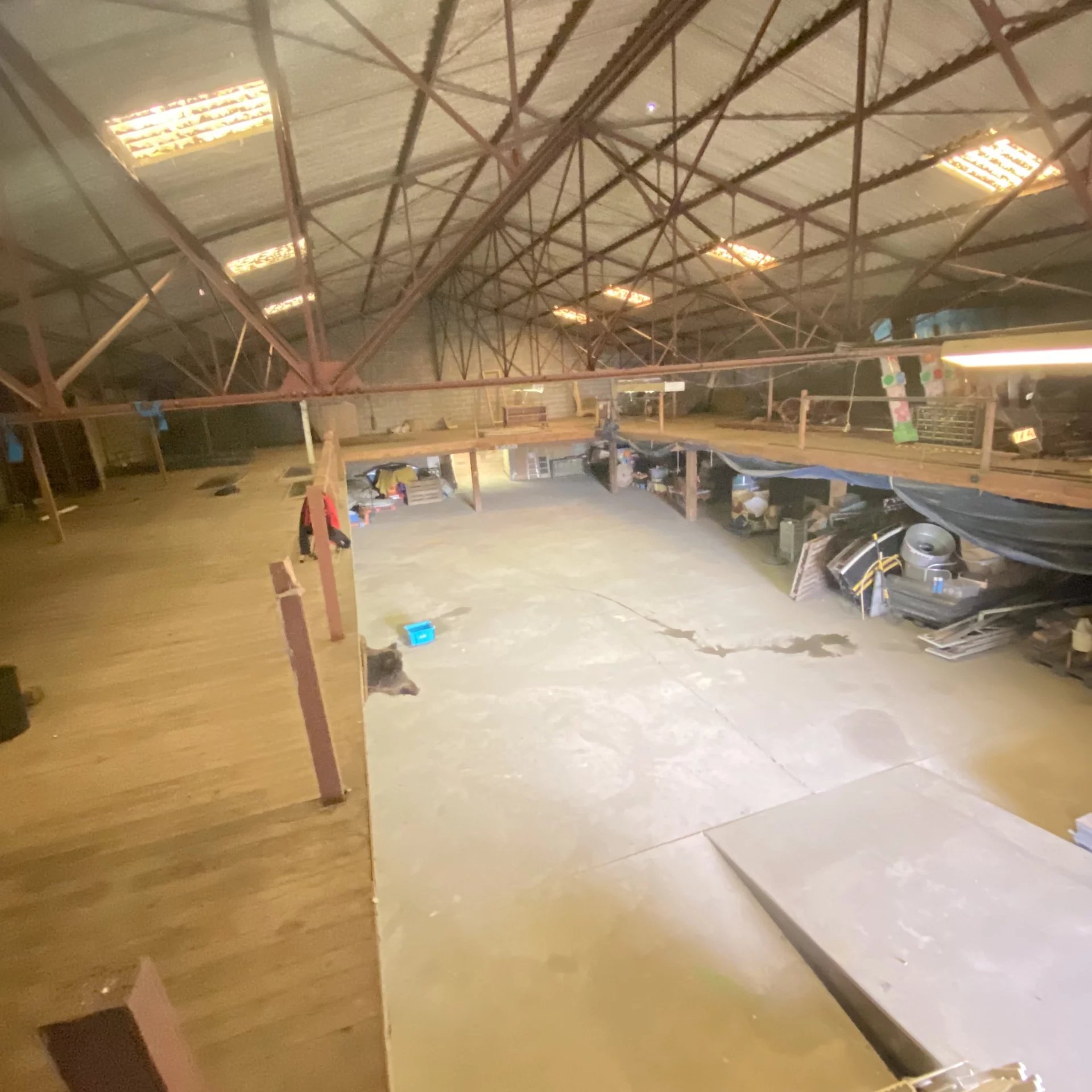 Sur un terrain de plus de 4 000 m² une superficie couverte d'environ 1 000 m² au sol. Facile d'accès. Il est possible de créer différentes parties indépendantes pour activités Voie d'accès de plus de 9 mètres de large