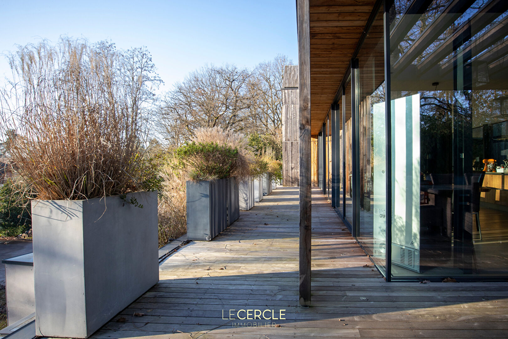Maison d'exception dans un environnement calme et verdoyant , elle dispose d'une pièce de vie ouverte avec cuisine équipée, bureau, 3 suites avec dressing, salle de douche et mezzanine. A l'étage suite parentale avec dressing, salle de bains donnant sur toit terrasse végétalisé, en sous sol garage de 80m² salle de jeux , salle de cinéma, espace bien être avec sauna, jacuzzi et salle de sport. terrasses autour de la maison, extrêmement lumineuse, prestations haut de gamme, maison écologique et économique terrain de 1600m² avec piscine. 20 min de CDG, accès rapide à l'A1 et à la gare.