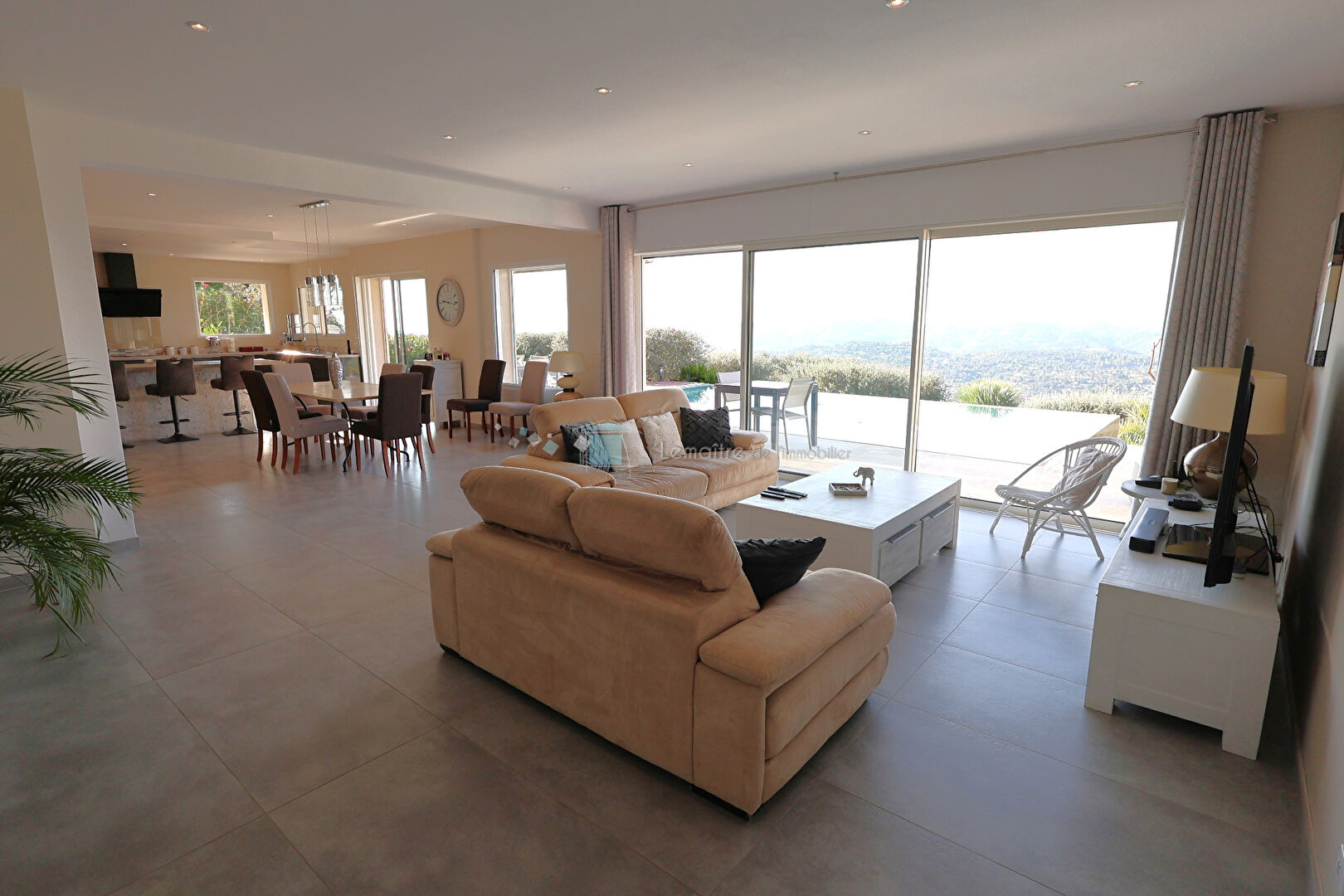 * CABRIS * Belle villa contemporaine de 200 m², construite en 2018 sur un jardin magnifiquement arboré de 2200 m² au calme. Un bien d'exception, bénéficiant d'une vue imprenable sur la mer et le lac de st Cassien, elle se distingue par ses espaces lumineux avec de grandes baies vitrées pour le salon de 83 m² avec sa cuisine ouverte, elle dispose de quatre chambres dont une belle suite parentale de plain-pied, une autre suite à l'étage. A l'extérieur, un bel espace piscine à débordement sublime l'ensemble en offrant un panorama unique. Un vaste sous sol pour véhicule et rangements ainsi qu'un abri voitures extérieur, raccordé au tout à l'égout. Ce bien rare est à visiter sans tarder. (4.00 % honoraires TTC à la charge de l'acquéreur.)