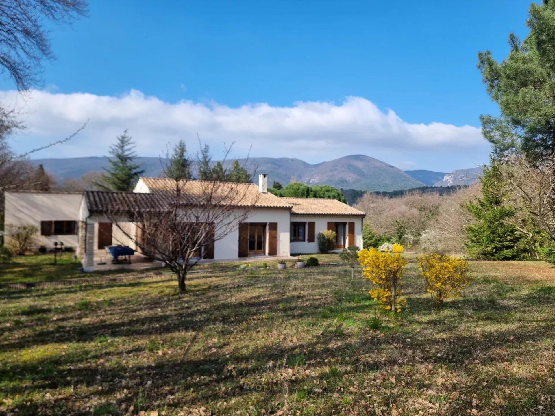 DIEULEFIT – Villa confortable, parfaitement entretenue, avec vue agréable, à 2 minutes du centre village Sur un magnifique terrain plat et clôturé de 7 400 m², profitez d’un cadre paisible et d’une vue dégagée pour découvrir cette villa de 1995 d’environ 130 m² habitables, parfaitement entretenue et idéalement située à seulement 2 minutes du centre du village. Elle se compose d’une cuisine équipée de 28 m², d’un séjour lumineux de 32,3 m² ouvrant sur une grande terrasse, de 3 chambres spacieuses (14,5 m², 14 m² et 11 m²), de 2 salles d’eau, d’un cellier pratique et d’un garage de 42 m². Confort moderne garanti avec des volets roulants solaires sur toute la maison, un chauffage au sol performant et un forage. À visiter rapidement pour saisir ce bel équilibre entre nature, confort et proximité du village ! Classe Energie D - Réf. 10613 Prix 430 500 € HAI. Tel Etienne Planel : 06 60 88 52 35