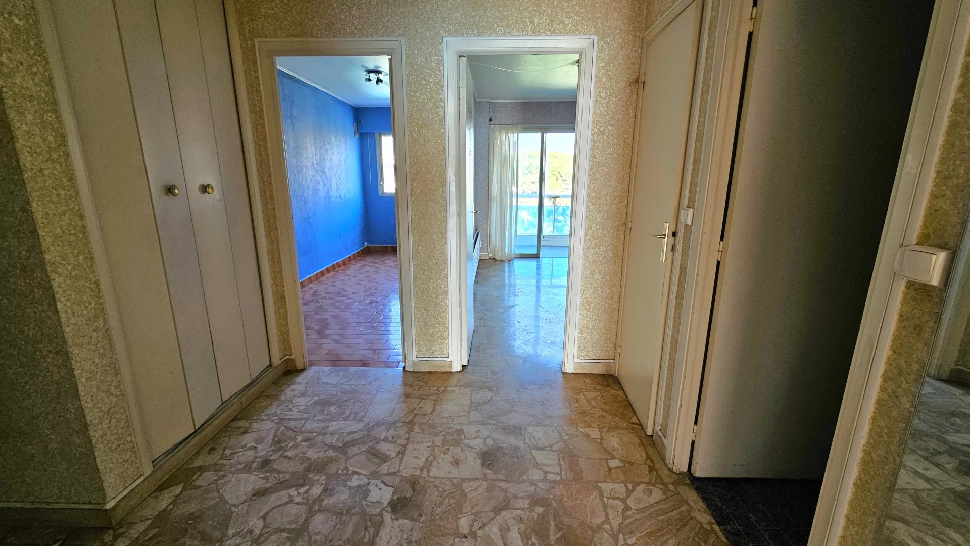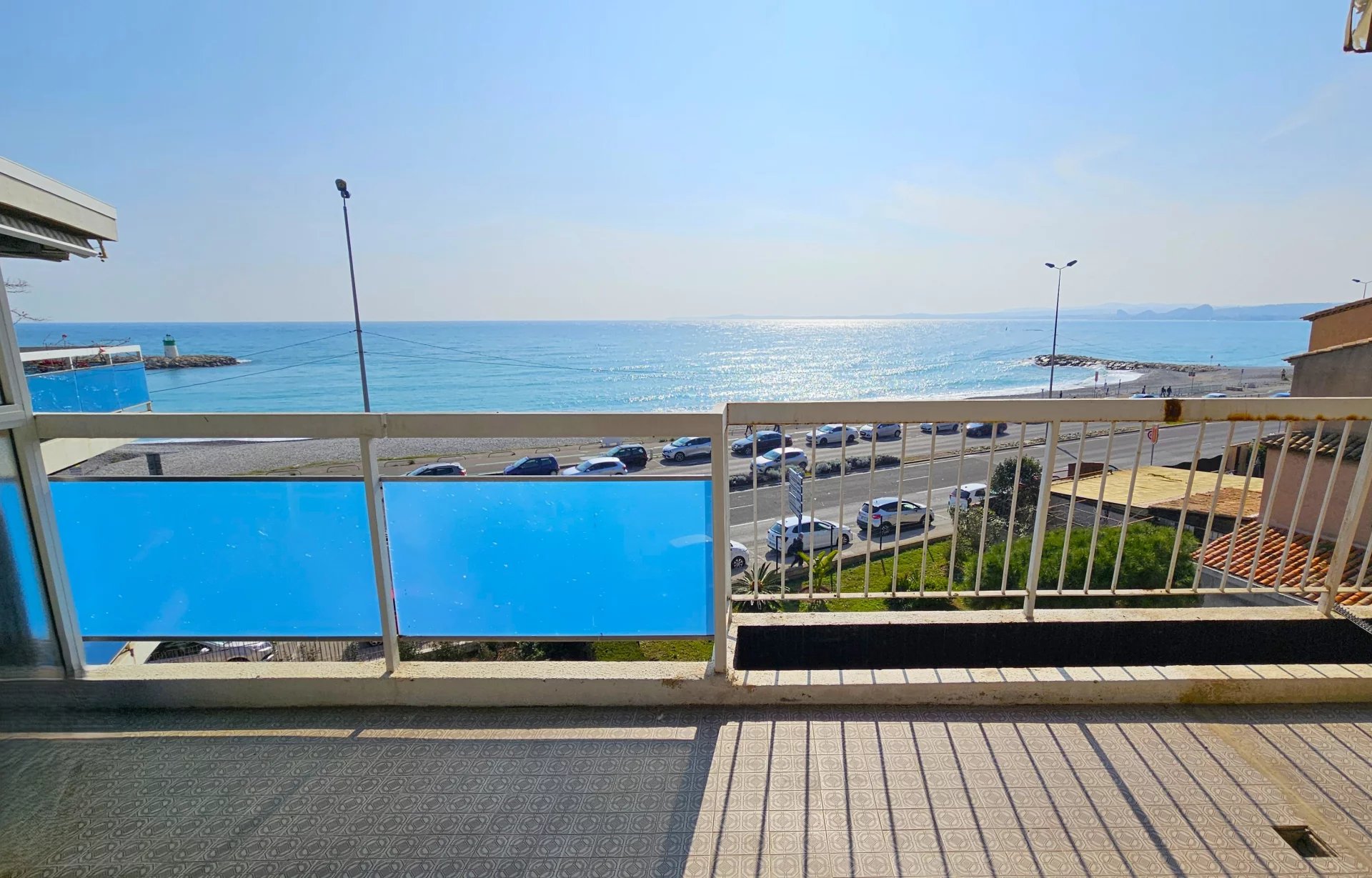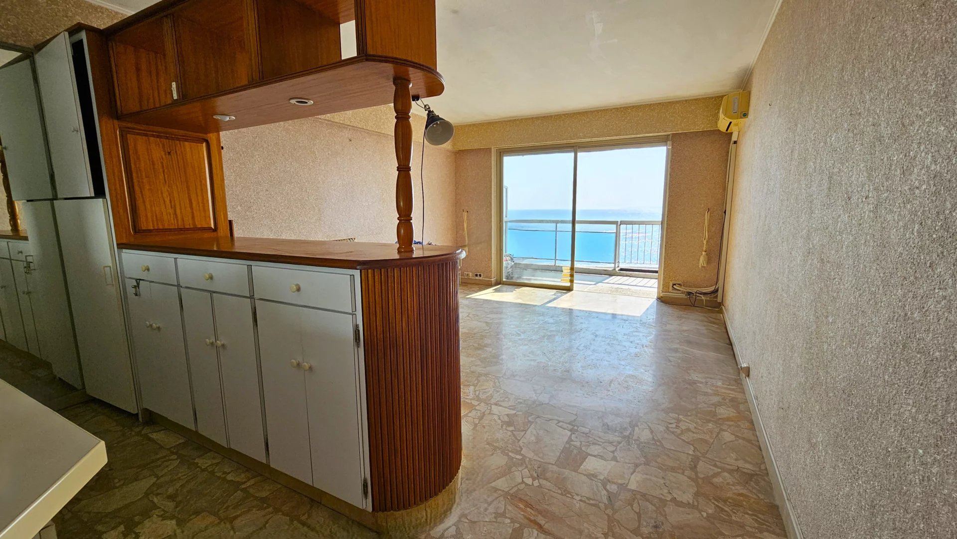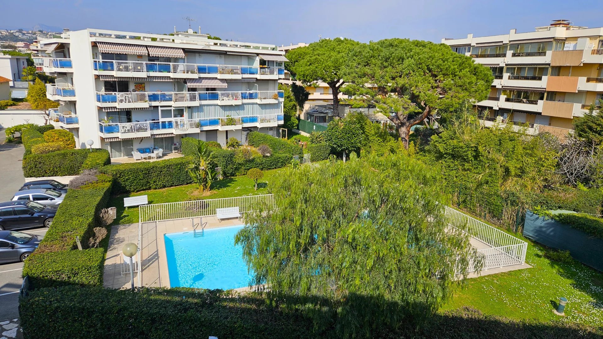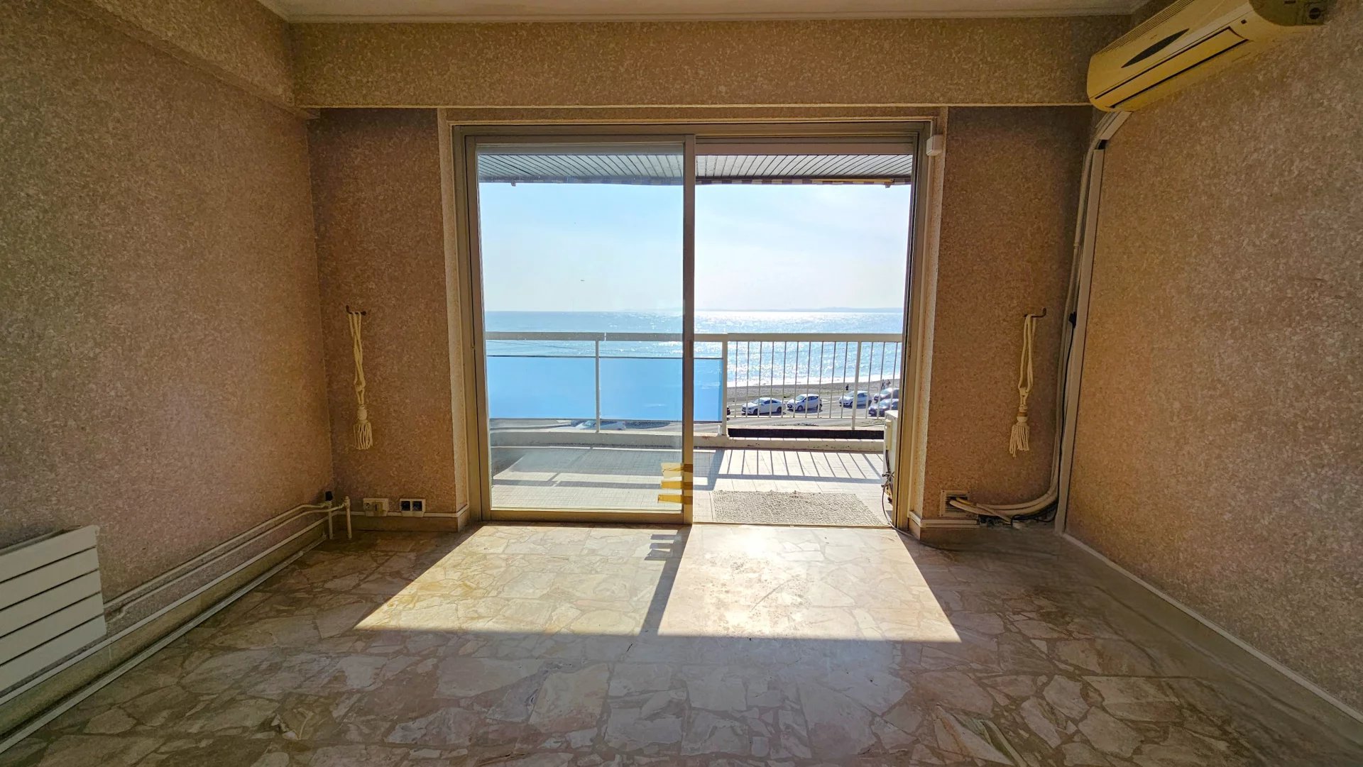 VENDU PAR L'AGENCE Front de mer - Vespins - Rare sur le marché - Vue mer panoramique. Dans une résidence sécurisée avec piscine, appartement 3 pièces traversant de 55,78 m² disposant de deux terrasses, 3ème étage et dernier étage avec ascenseur, expo Sud. Entrée avec placards, grand séjour avec cuisine ouverte, communiquant sur une belle terrasse de 8 m² avec vue panoramique sur le Cap d'Antibes. Deux chambres dont une communiquant sur terrasse avec véranda. Salle de bains. WC indépendants. Rafraichissement à prévoir. Ce bien s'accompagne d'un parking couvert privatif et d'une cave attenante. Possibilité d'acquérir un parking extérieur privatif en sus. Toute offre sérieuse sera étudiée. Bien soumis au statut de la copropriété. Charges générales annuelles courantes: 3.480 €. Nombre de lots : 50. Aucune procédure en cours. Honoraires de 5% inclus à la charge de l'acquéreur. Les informations sur les risques auxquels ce bien est exposé sont disponibles sur le site Géorisques : georiques.gouv.fr