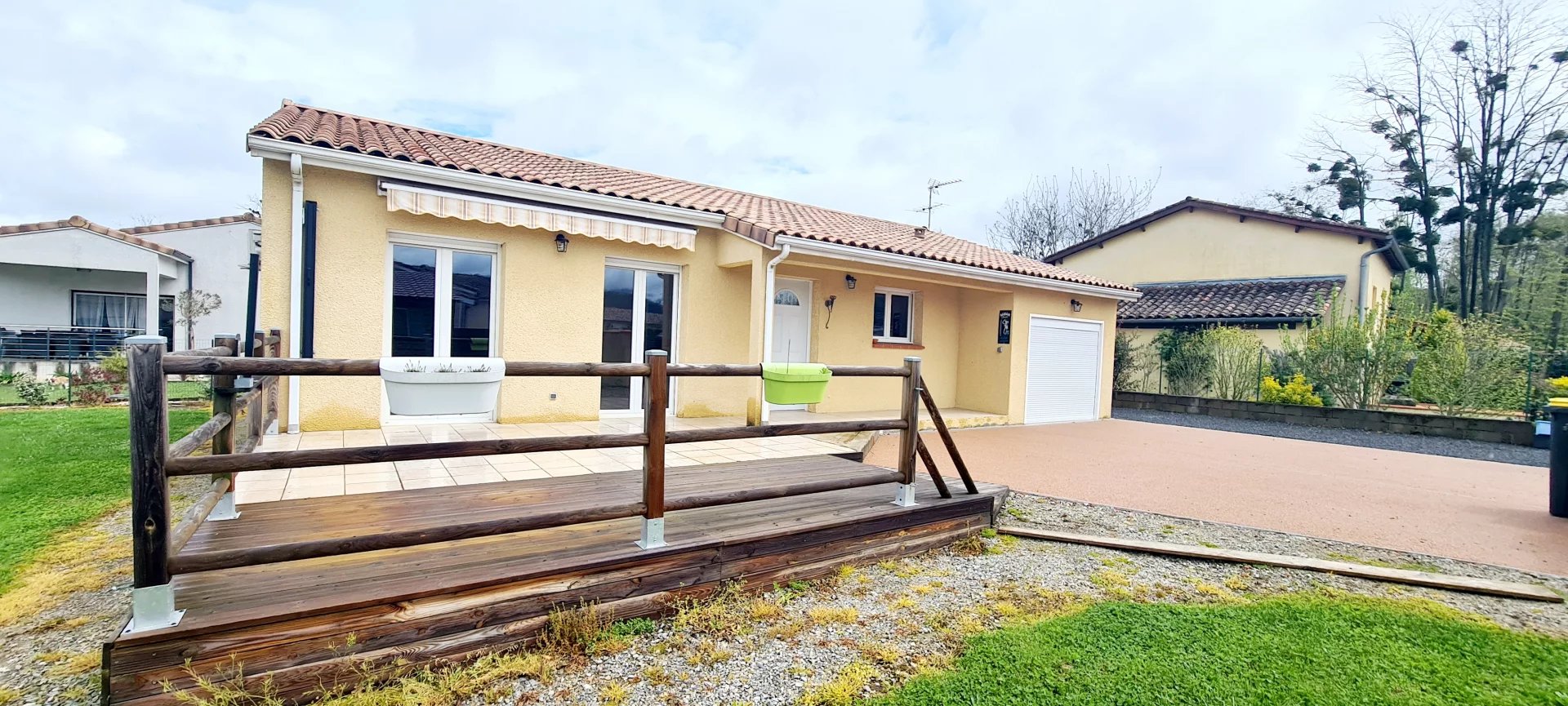 Maison de plain-pied en excellent état, située dans un quartier calme avec une belle exposition plein sud et une vue dégagée. La maison comprend une grande pièce de vie de 57 m² avec cuisine américaine équipée donnant sur la terrasse, deux chambres avec placards, une salle d’eau avec douche à l’italienne, toilettes séparées avec lave-mains, et un garage avec cuisine d’été. Le jardin, piscinable, entoure la maison et dispose d’un grand abri pratique pour le rangement ou les loisirs. La maison est équipée: -De double vitrage avec volets roulants électriques, -D'une climatisation réversible accompagnée de radiateurs électriques avec thermostat -D’un portail, portillon et porte de garage motorisé Le tout est raccordé au tout-à-l’égout. Bien située, elle offre un accès rapide à l’autoroute, aux transports, aux commerces, aux écoles, à la gare, à l’hôpital et à de nombreux services (cinéma, salle de sport, supermarché, etc.) Aucun travaux à prévoir Ne tardez pas à me contacter pour venir la découvrir! Votre conseiller immobilier: David Madrolle Honoraires à la charge du vendeur - Montant estimé des dépenses annuelles d'énergie pour un usage standard, établi à partir des prix de l'énergie de l'année 2021 : 1495€ ~ 2024€ - RCS 81931340400017