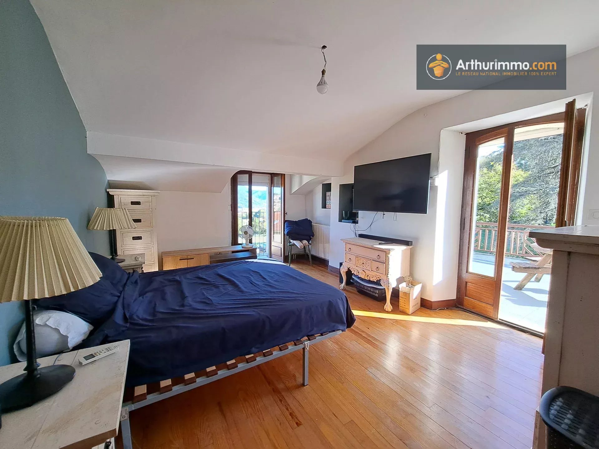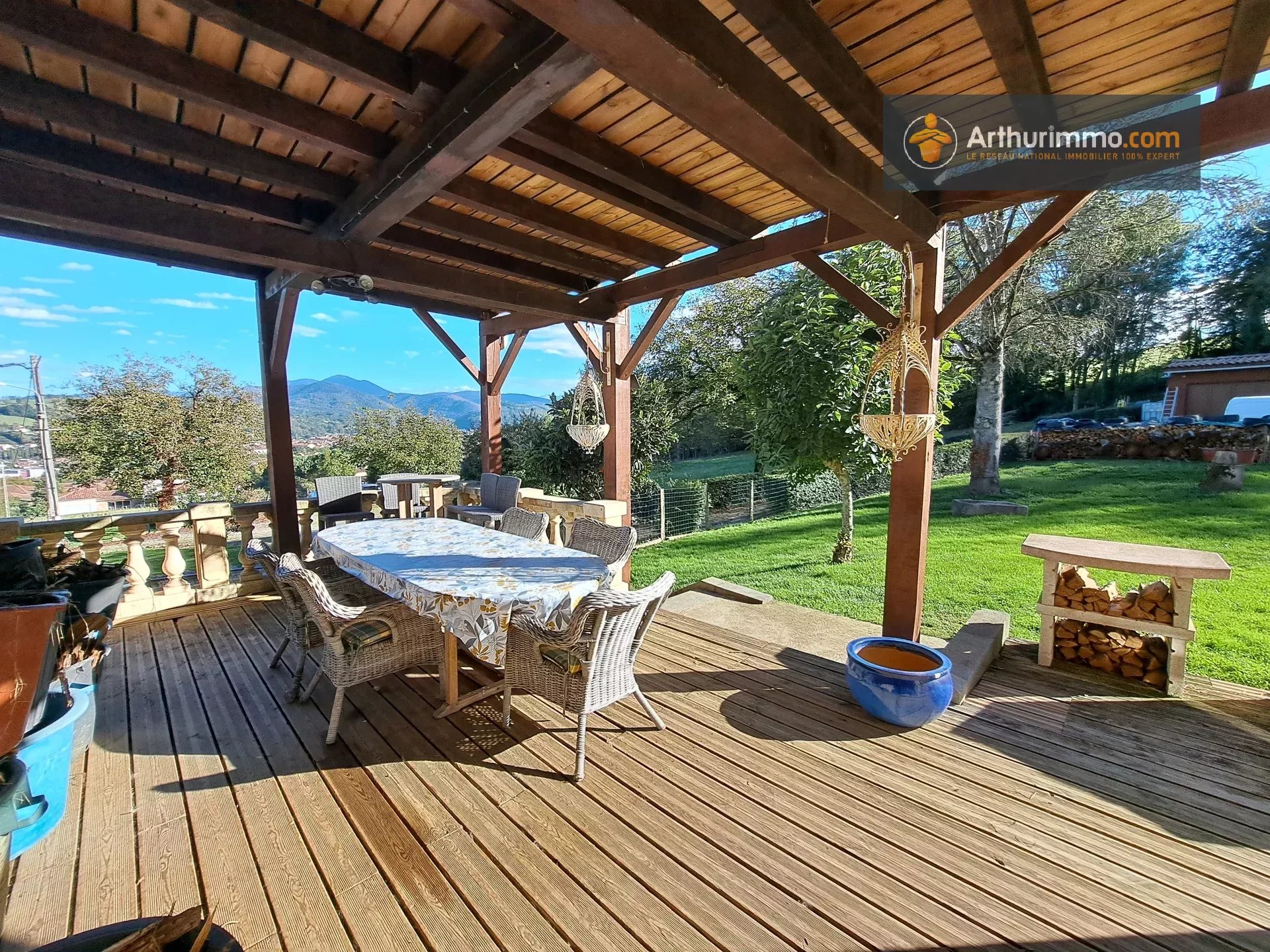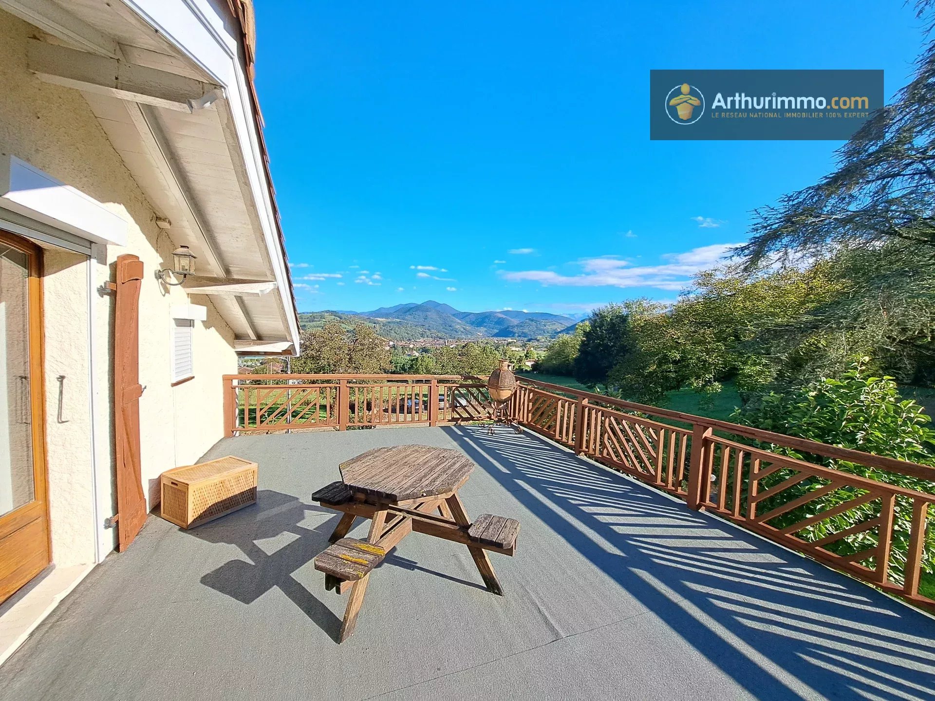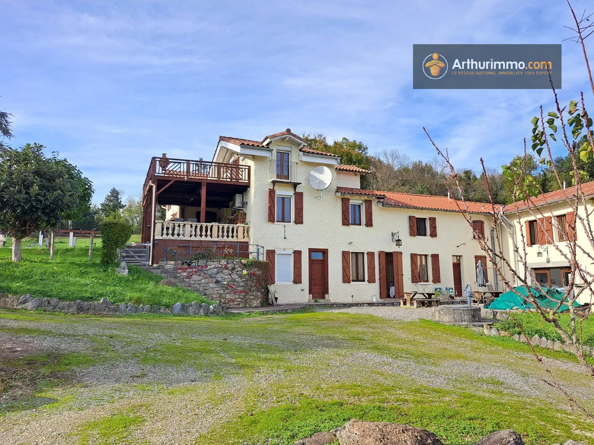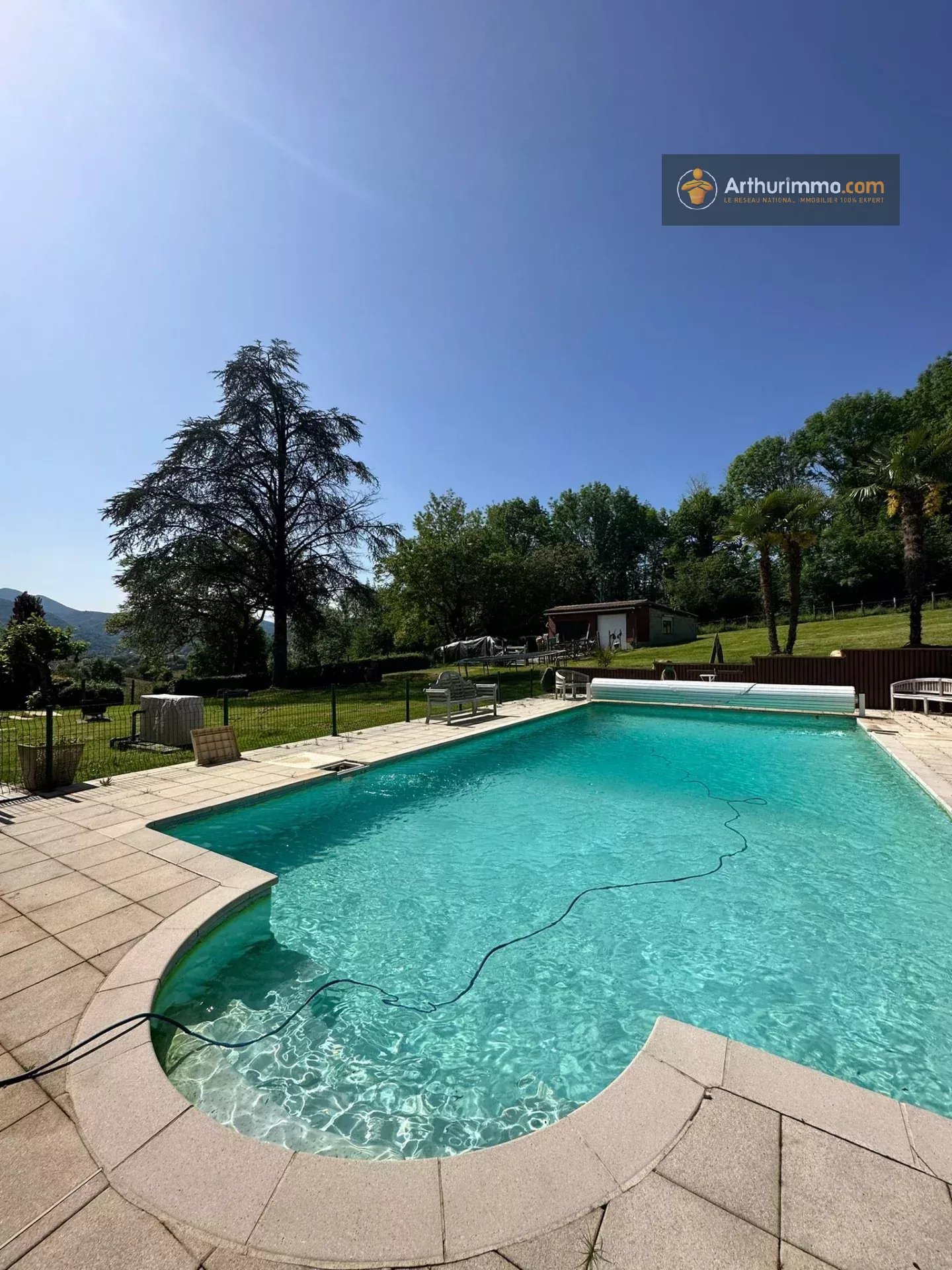 En Ariège, sur les hauteurs de Saint-Lizier, venez découvrir cette propriété de 1,7 hectares avec vue montagnes, composée de 3 maisons indépendantes, piscine, garage et diverses dépendances. Les 3 maisons sont rénovées avec goût et offrent tout le confort moderne : double vitrage, climatisation, Portail électrique, chauffe-eaux solaire pour la maison principale et la piscine, Chaudières à condensation pour les 2 autres maisons, assainissements aux normes... Pas de gros travaux à prévoir ! La maison principale fait 190 m2. Elle compte 4 chambres, 3 salles de bain, un grand bureau, une cuisine/salle à manger, un grand salon de 32 m2 et 2 terrasses avec vue montagnes. La 2ème maison fait 110 m2. Elle se compose de 3 chambres, 1 salle de bain et une grande pièce de vie de 50 m2 avec cuisine ouverte. La 3ème maison fait 170 m2. Elle compte 3 grandes chambres, 2 salles de bain, 1 cuisine ouverte et un immense salon de 65 m2 avec poutres apparentes. L'espace piscine est clôturé : piscine 12m x 6m, pool house, jacuzzi, barbecue, cabanon et terrasse. Idéale pour une grande maison familiale, un habitat partagé, profession libérale, auberge / gîtes, revenus locatifs à l'année... Propriété au calme, entourée de verdure avec vue sur les montagnes : coup de coeur garantie, à visiter sans tarder ! Possibilité d'acquérir des terrains supplémentaires. Honoraires charge vendeur. Les informations sur les risques auxquels ce bien est exposé sont disponibles sur le site Géorisques : www.georisques.gouv.fr Pour toutes informations concernant ce bien, contacter l'agence Immobilière Arthurimmo, 2 avenue Alsace Lorraine 09300 LAVELANET, 05.34.14.64.66 ou 06 63 28 75 36, du lundi au vendredi, de 9h à 12h et de 14h à 18h, le samedi, de 9h à 12h et sur rdv. Bien suivi par Guillaume Pineau, EI, agent commercial enregistré au RSAC de Toulouse, sous le n°851 127 704 00019.