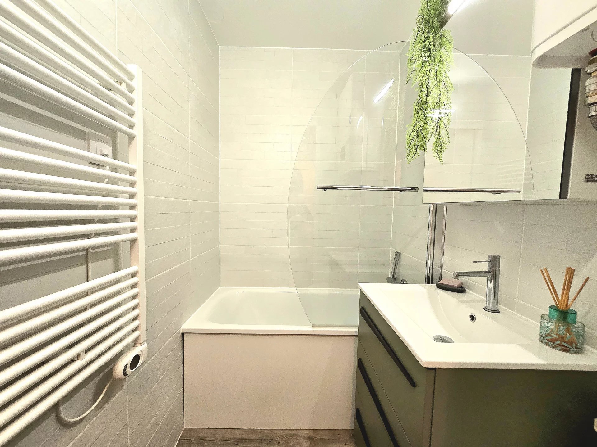 Situé à Bormes-les-Mimosas, à 700m de la plage de La Favière, au calme, ce coquet studio a été entièrement rénové avec goût il y a 3 ans. Climatisé, double vitrage, volets roulants électriques et stores, sa jolie terrasse avec double exposition sud et ouest qui s'ouvre en partie sur le parc arboré. Il est vendu entièrement équipé et meublé. Le parfait pied à terre au bord de mer. Vous n'avez qu'à poser vos valises. Possibilité d'un garage sécurisé en supplément.