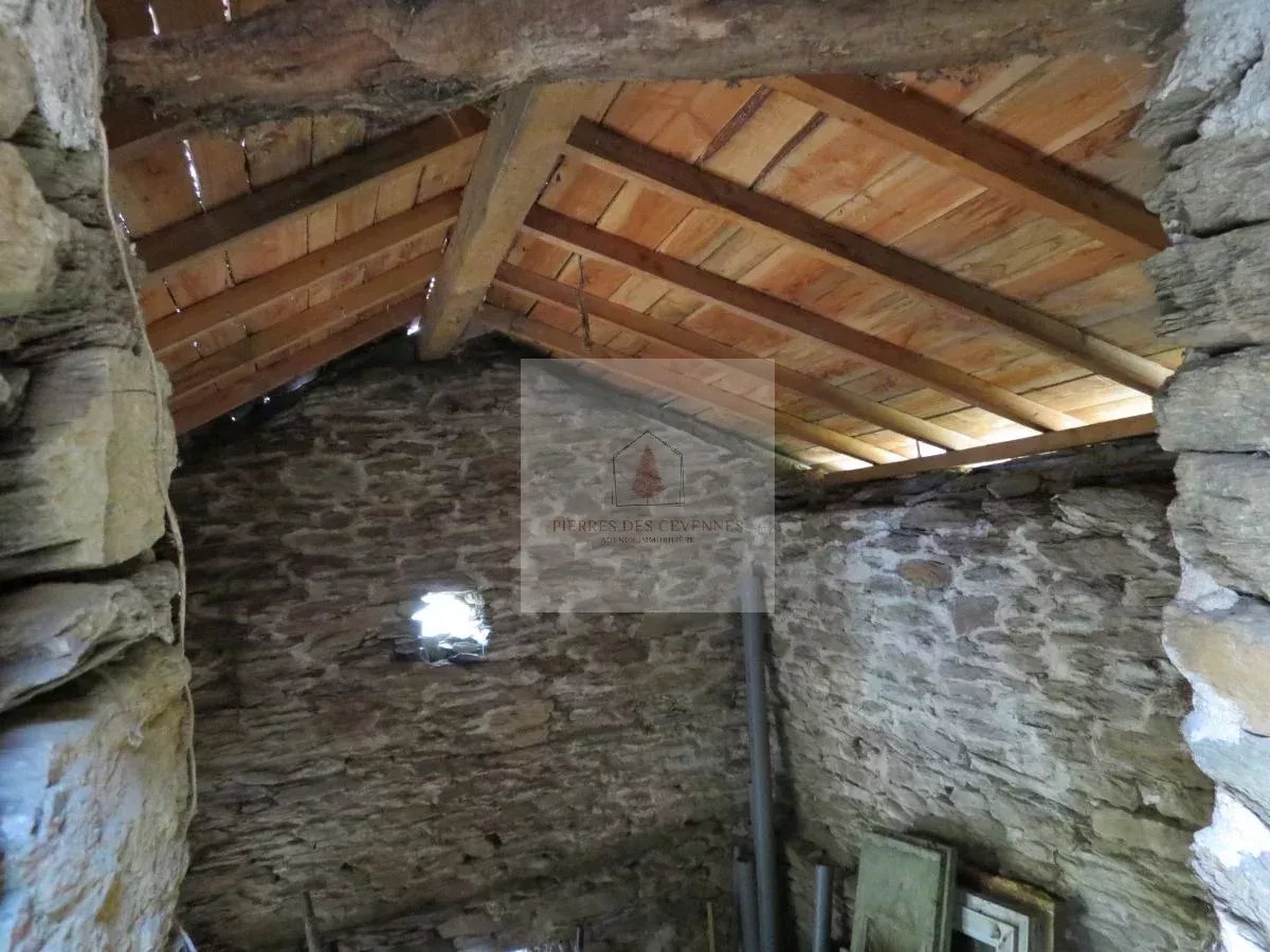 Propriété située à 12 minutes du village, zone périphérique du parc national des Cévennes méridionales. Accès piéton de 40 mètres jusqu'au bien depuis la route principale. Maison d'habitation en pierre, d'architecture Cévenole à finir de rénover sur un bâti de 50 m2 sur 2 niveaux plus cave. Clède (ancien séchoir à châtaignes) de 12 m2 à restaurer avec possibilité de 2 niveaux. Un passage donnant accès sur la terrasse et le jardin sépare les deux constructions. Une parcelle non attenante de 579 m2 avec possibilité de faire un potager.