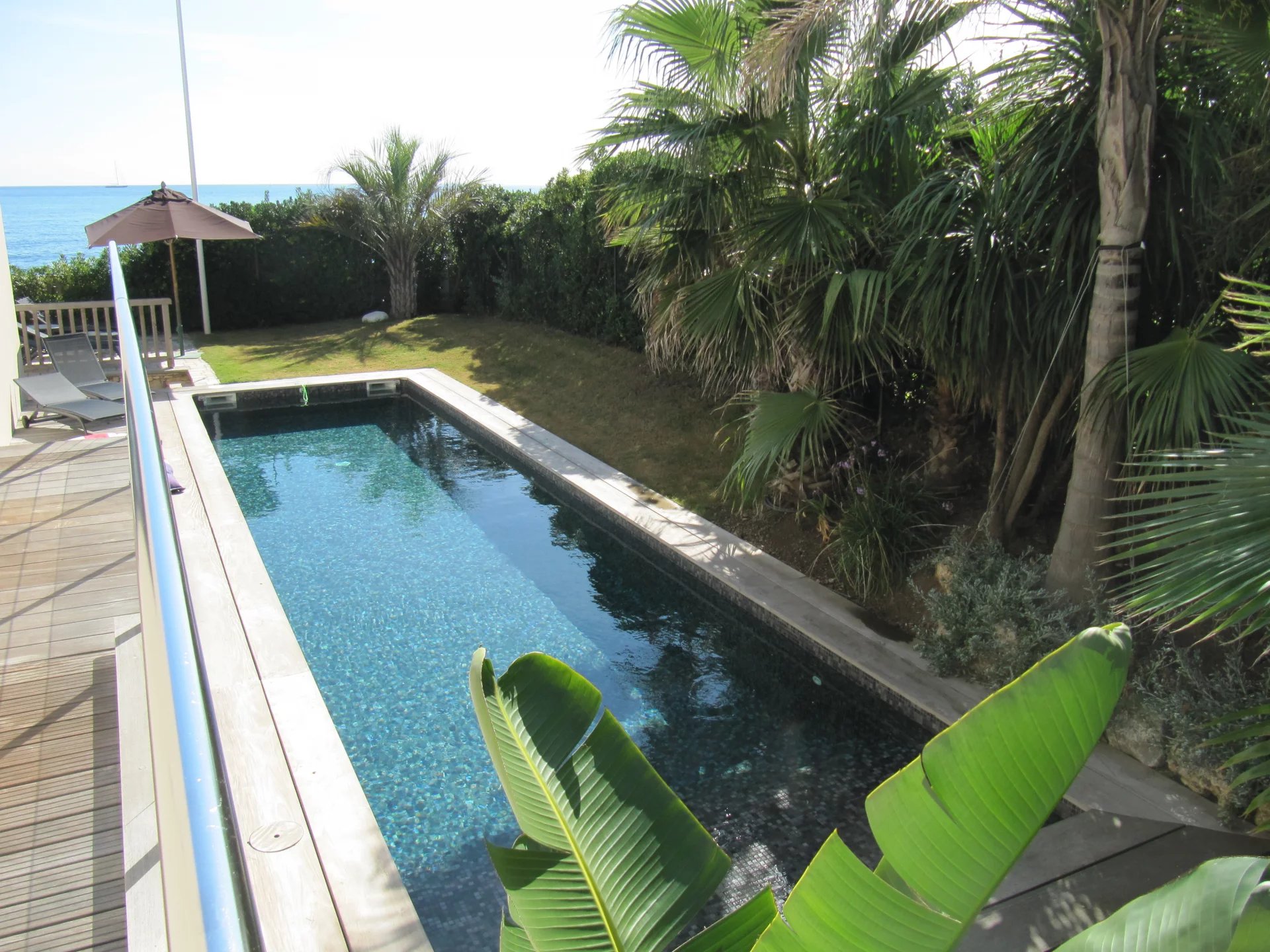 Belle propriété moderne et de style Californien entre Cannes et Saint-Tropez, un paradis pour le repos et le calme. Maison passive, pratiquement autonome pour ses besoins en chauffage par ses apports solaires et une bonne isolation. D’une surface totale de 240m2 habitables, la villa est composée de cinq Chambres dont une suite parentale avec une exceptionnelle vue mer, salle de bains ouverte avec baignoire, toilette séparé. Chaque chambre au rez de chaussée a sa propre salle d’eau en suite avec une douche. Au du rez de jardin se partagent une salle d'eau pour les deux autres chambres. Par ailleurs, le séjour et la cuisine ouverte s’étirent sur 100m2 environ, conférant un très agréable espace qui dessert le côté piscine d’une part et les accès aux différentes terrasses extérieures. La terrasse sur le toit offrant une vue mer panoramique imprenable est équipée d’une cuisine d’été, d’un salon de jardin ainsi que d’un Jacuzzi surplombant la mer. La piscine mesure onze mètres de long par trois de large et d'une profondeur d’un mètre quarante. L'accès direct à la plage vous fait bénéficier d'une crique tranquille et calme. Bien sécurisée et équipée d’un système de vidéosurveillance extérieur ainsi que d’une alarme avec télétransmission . Cette propriété vous permet de savourer son confort intérieur et extérieur.