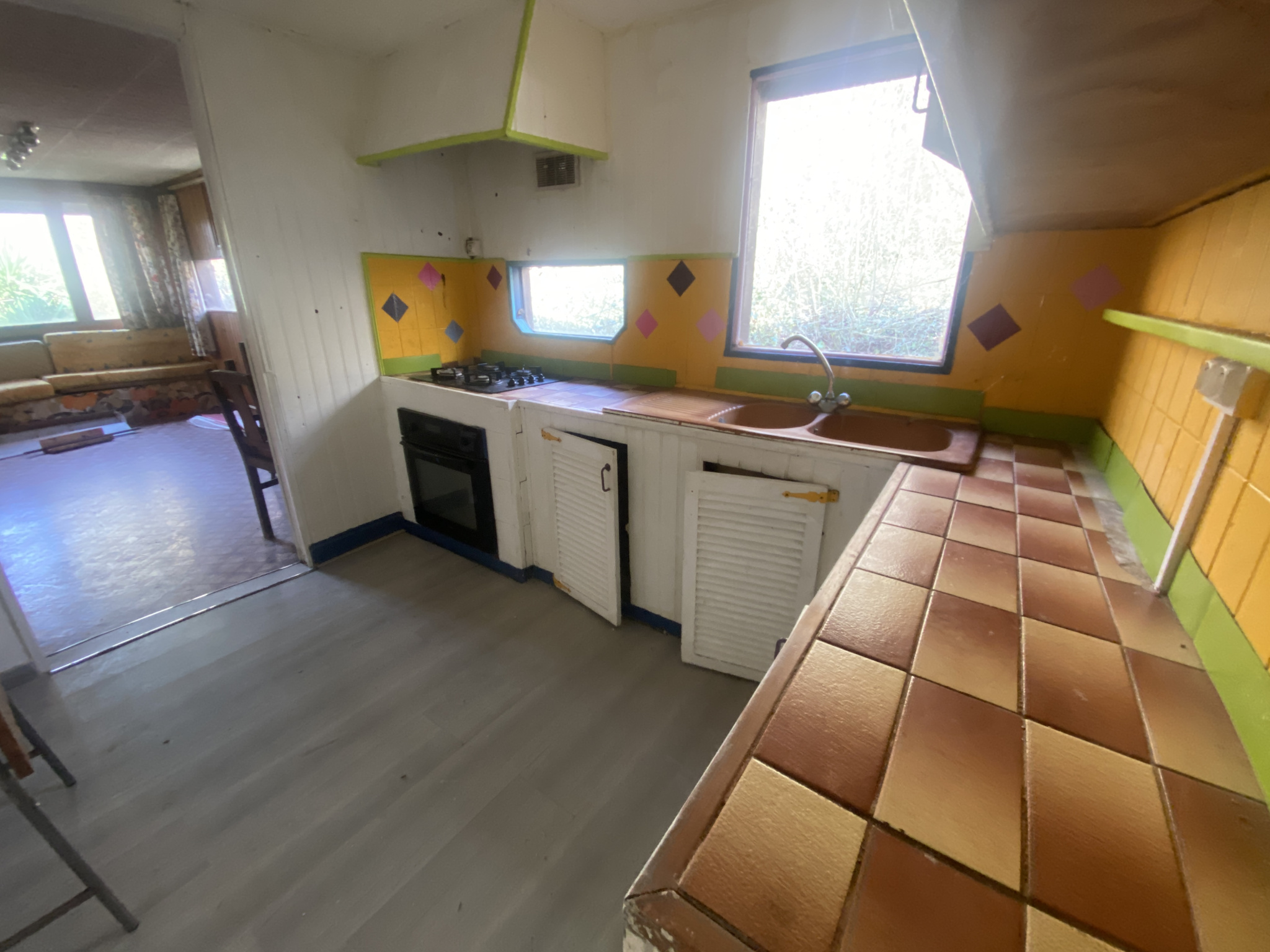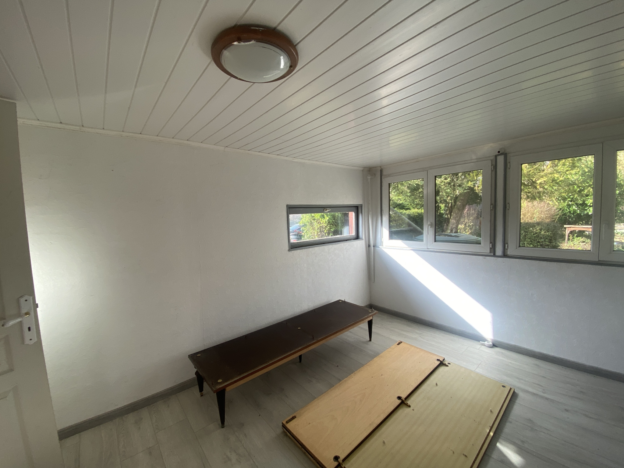 Cuisine, séjour, véranda, 2 chambres, buanderie, plusieurs pièces de différentes surfaces, salle de douches avec wc sanibroyeur.