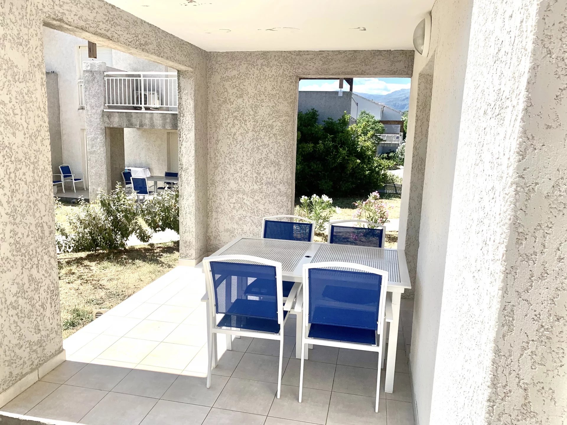 OLETTA, A 2km de Saint-Florent et des plages et au sein d’une résidence de tourisme 3 étoiles, T3 de 45m² en rez-de-jardin, il est composé d’un séjour climatisé avec cuisine américaine équipée donnant sur une terrasse de 12m², deux chambres avec placards , une salle d’eau, un w-c indépendant. L’appartement est au calme, avec de nombreux rangements et il est vendu entièrement meublé et équipé. 1 place de parking privative. Vous serez séduit par la proximité à la fois des plages paradisiaques bordant le désert des Agriates, de la station balnéaire réputée de l’ancienne cité de Saint-Florent et de la région de Patrimonio réputé pour la qualité de ses vignobles, le tout en étant à 30 minutes de l’aéroport ou du port de Bastia. Le bien est vendu libre. Plus d’informations et visites possibles sur demande.